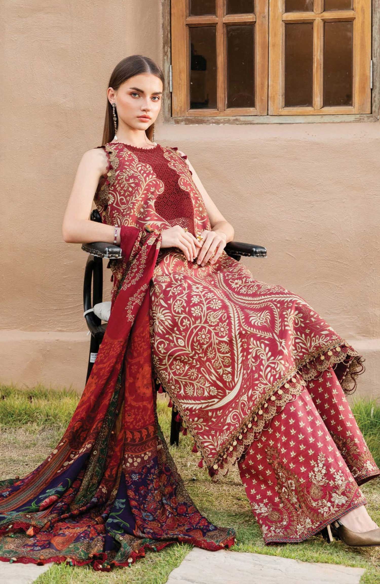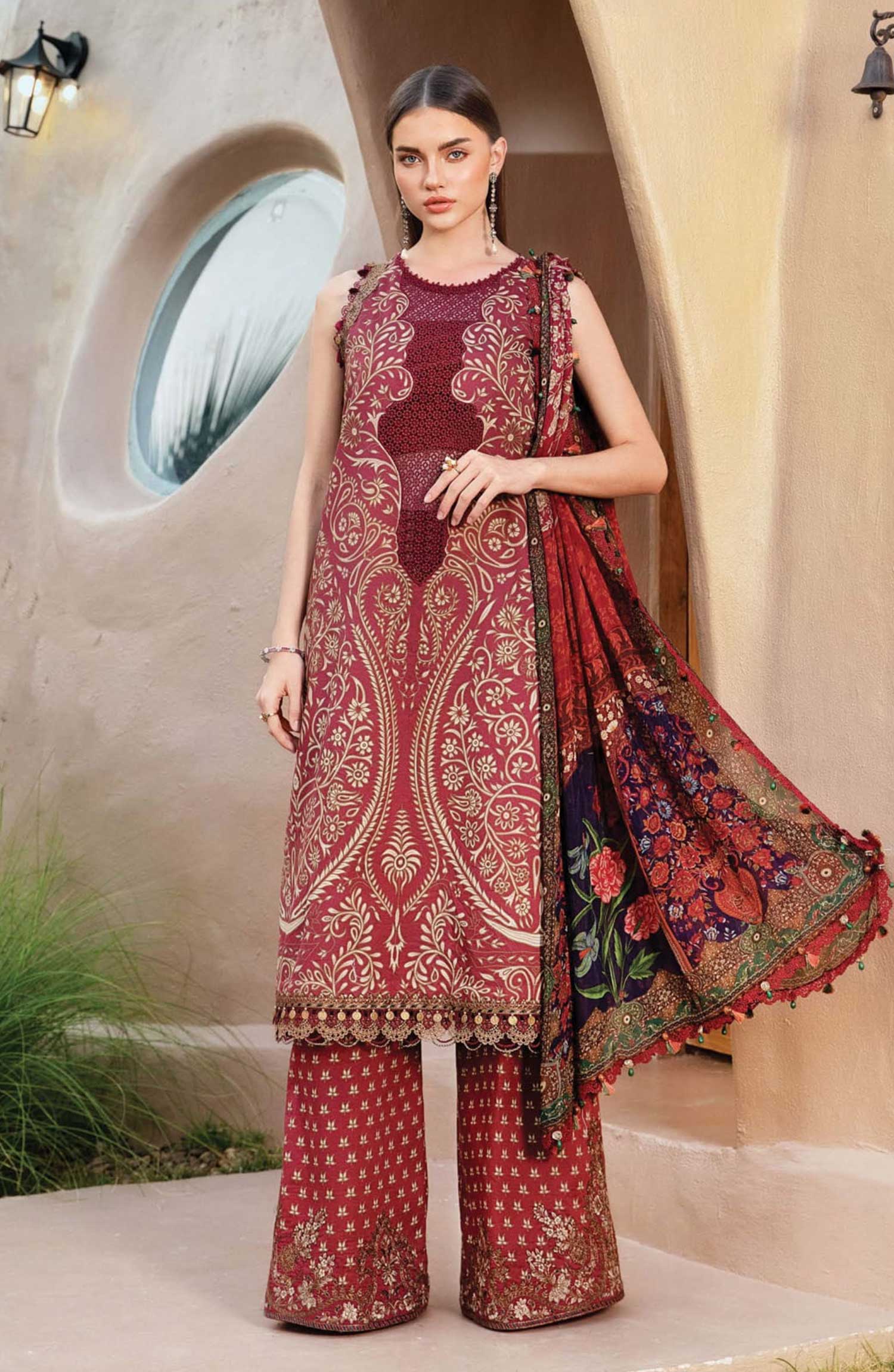 Mprints by Maria B Printed Unstitched 3 Piece Suit - D-12 A - MAB25PSS - Maroon - Summer Collection