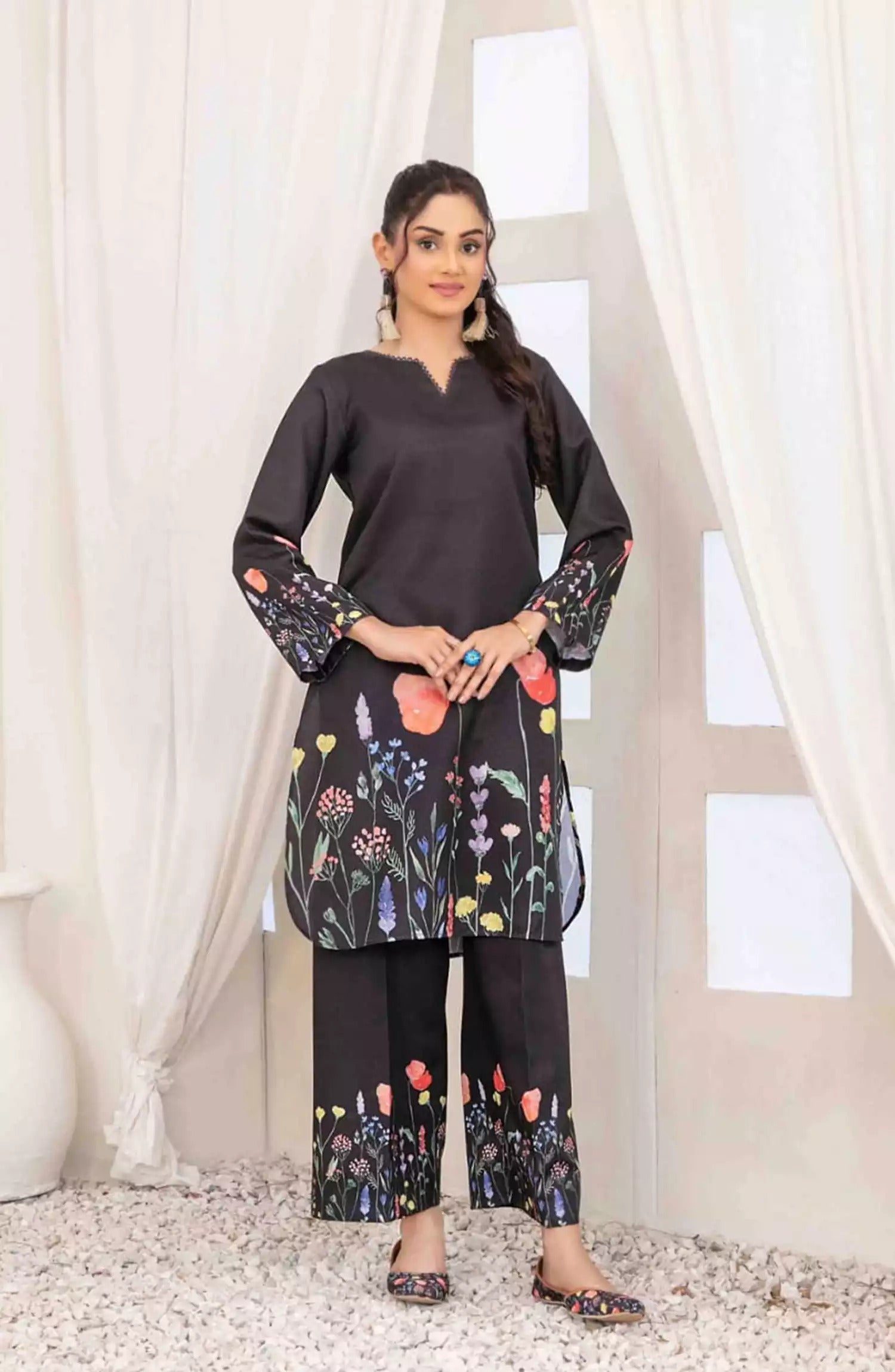 Rua by Casual Lite Embroidered Premium Linen Stitched 3 Piece Suit - D-03 Shadow Bloom - CL25RU - Black - Winter Collection