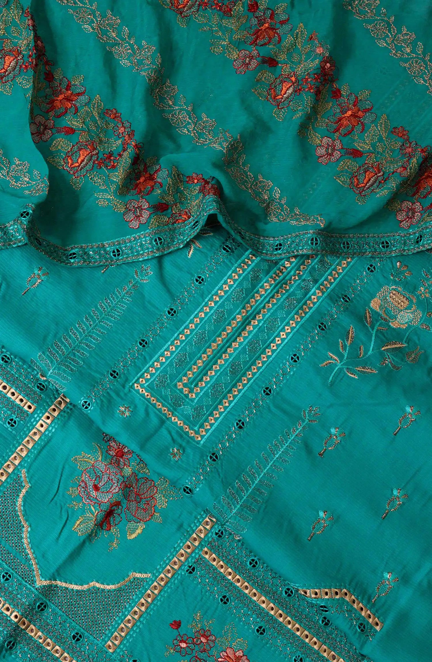 Mun Kay Moti Embroidered Italian Viscose Collection has been styled in the image for photography and illustrative purposes.