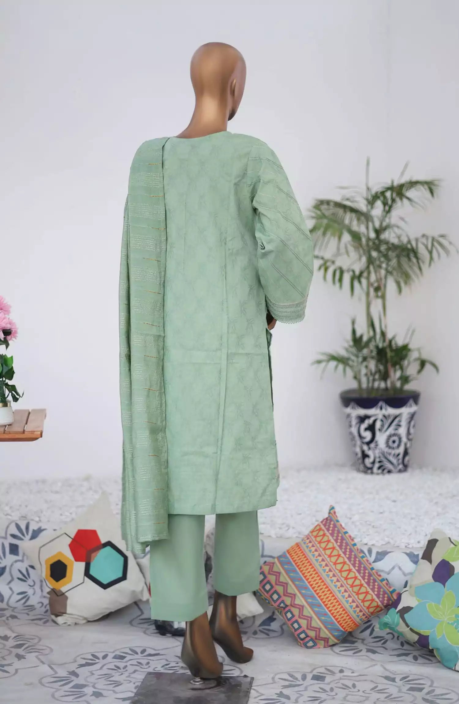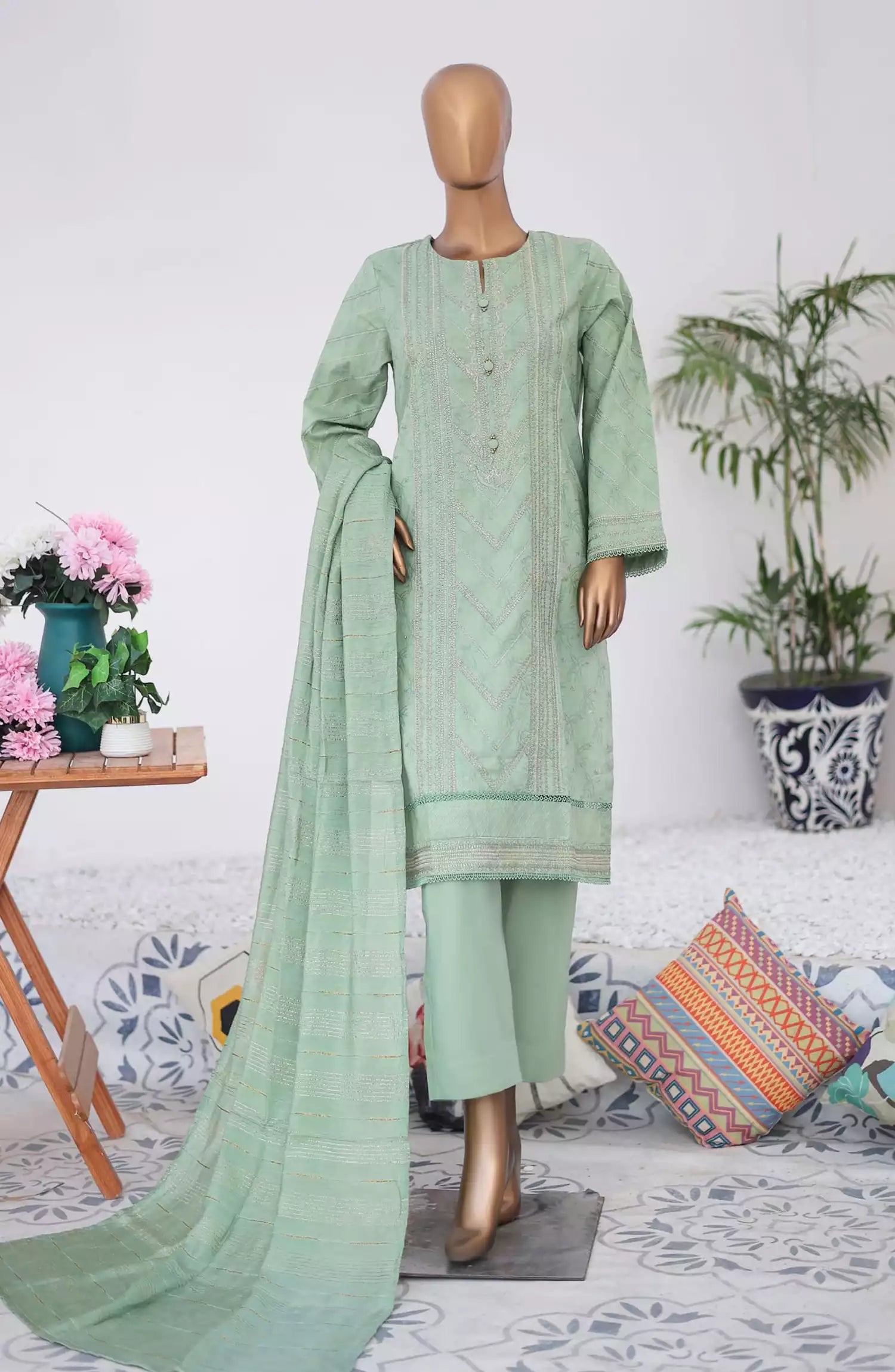 Munfarid Jacquard Cotton Embroidered Vol-1 has been styled in the image for photography and illustrative purposes.