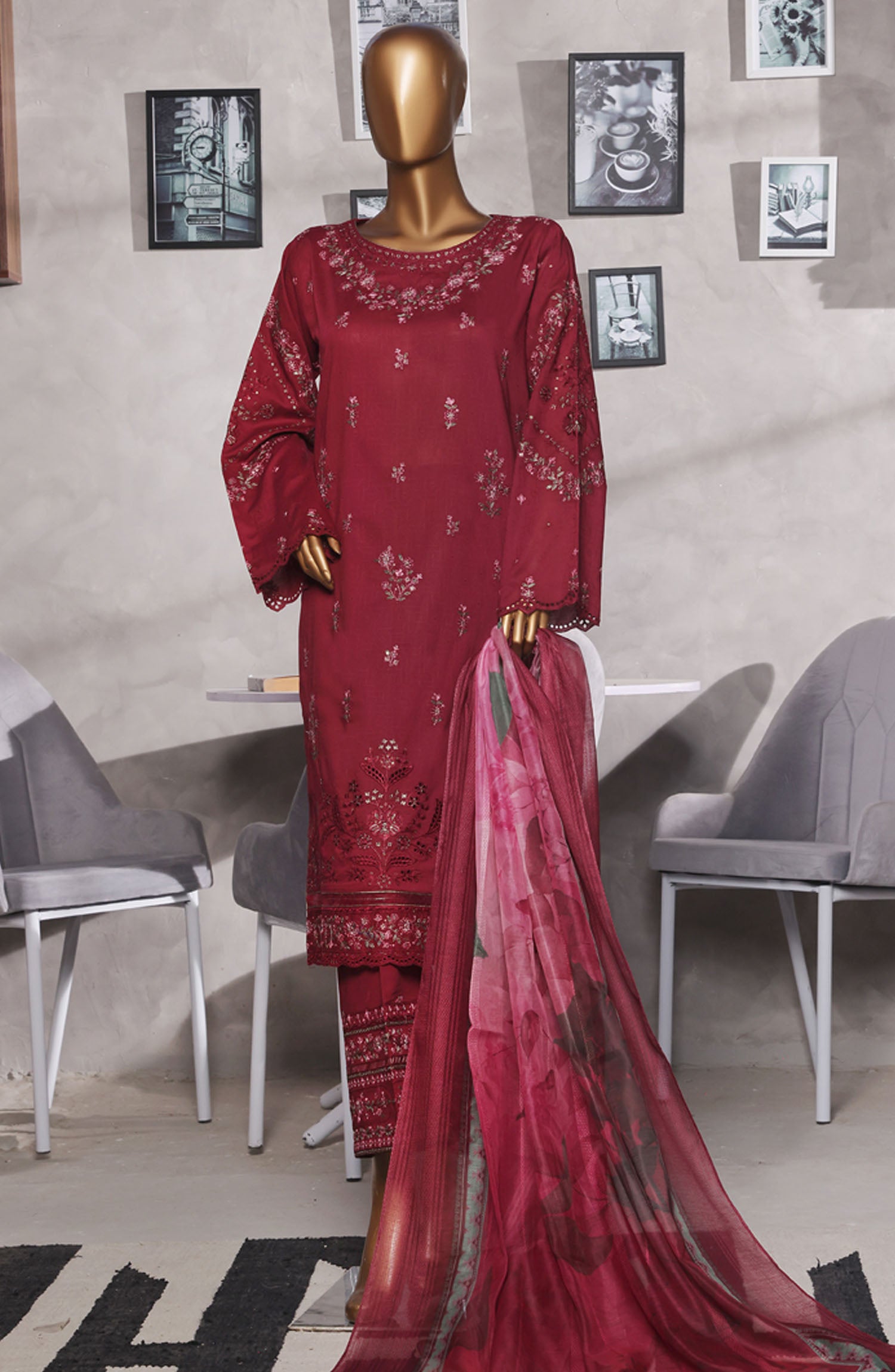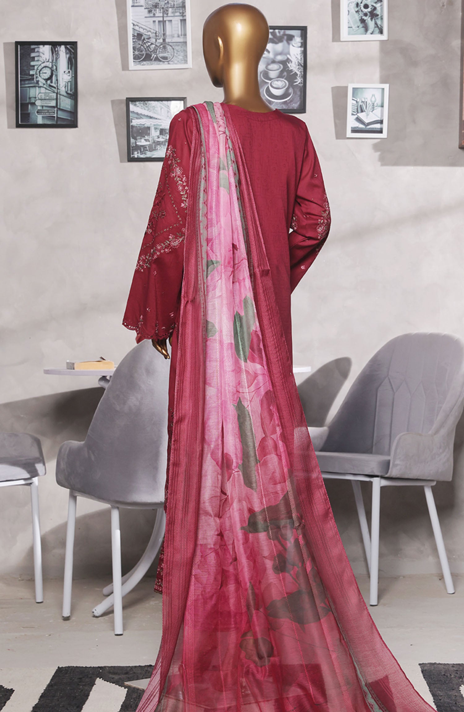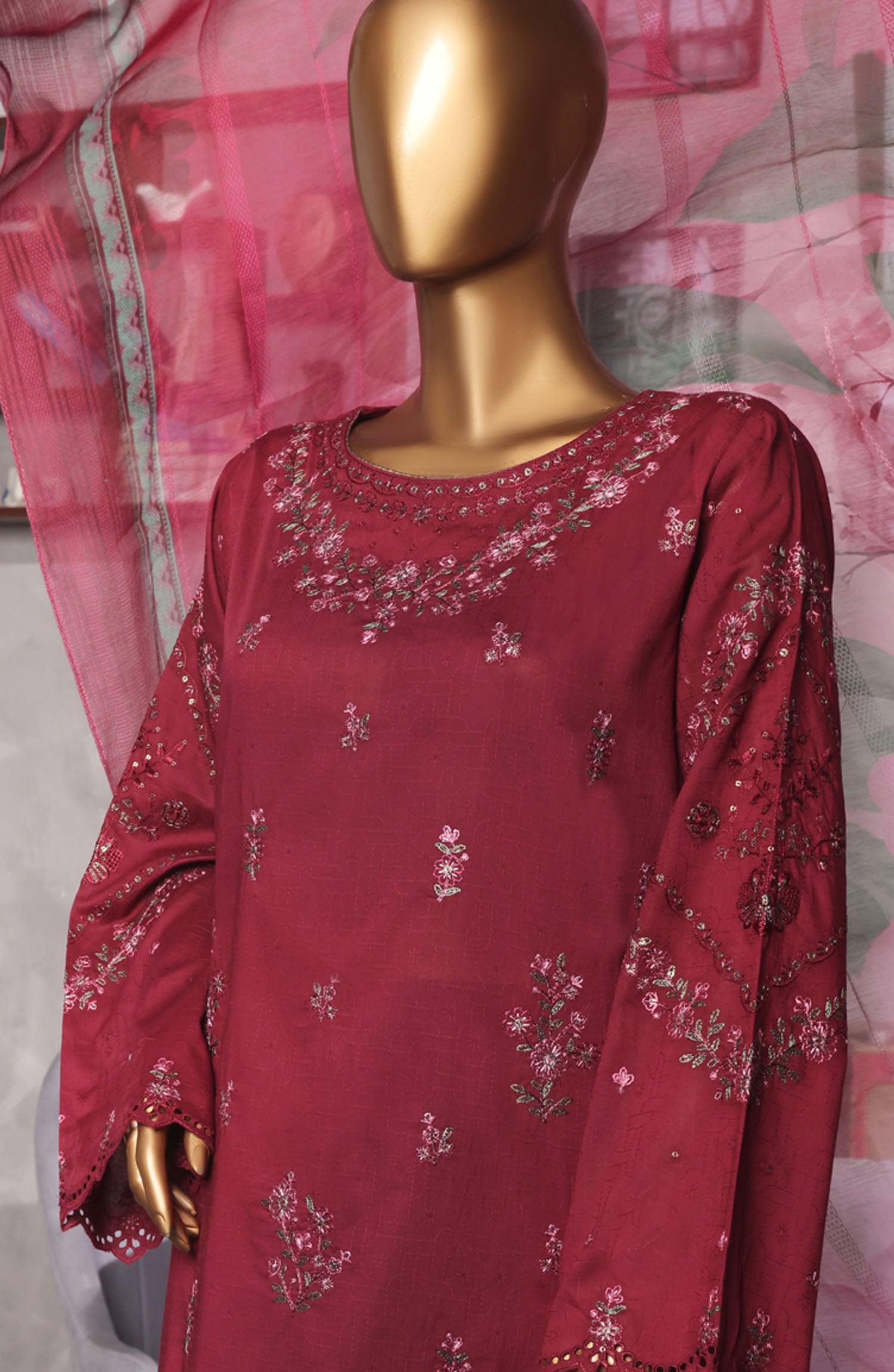 Cotton Self jacquard Embroidered Shirt with Highlights of Stitching Detail
