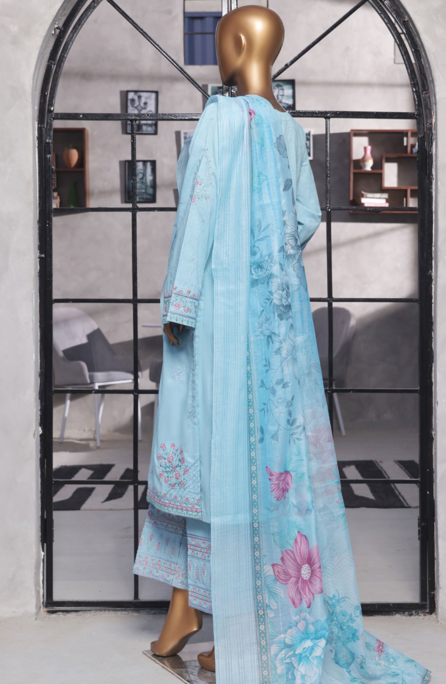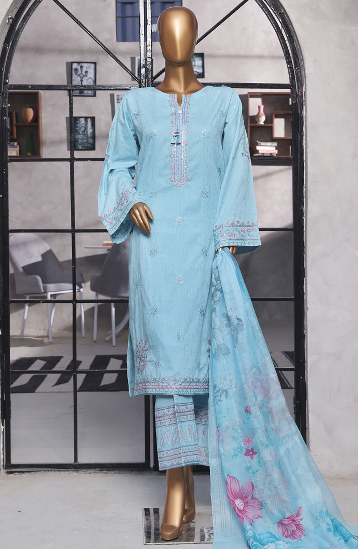 Home Muse by HZ Textile Embroidered Cotton Stitched 3 Piece Suit - SSJ-2502 Blue - HZ25MCSSJV2 - Summer Collection