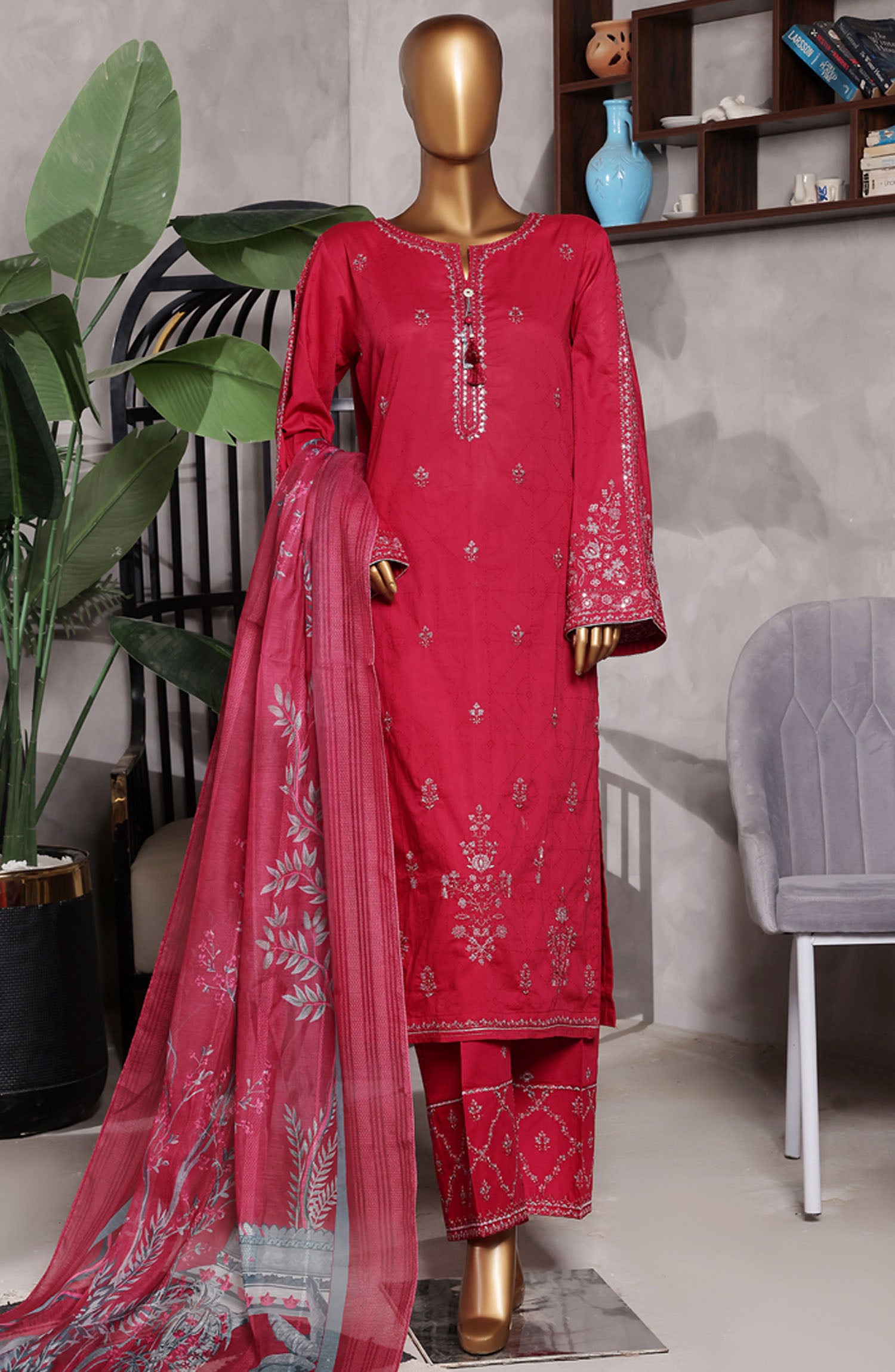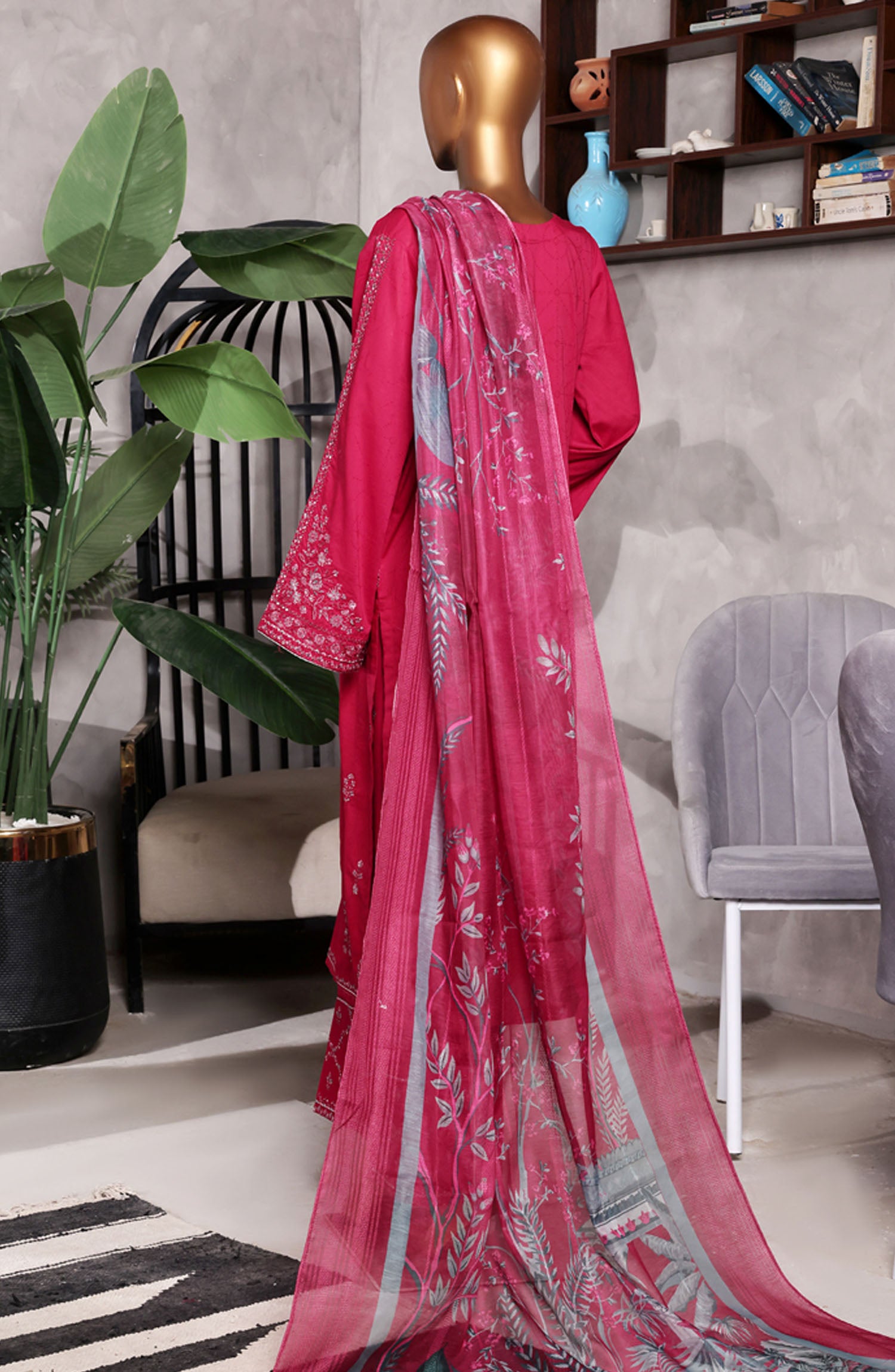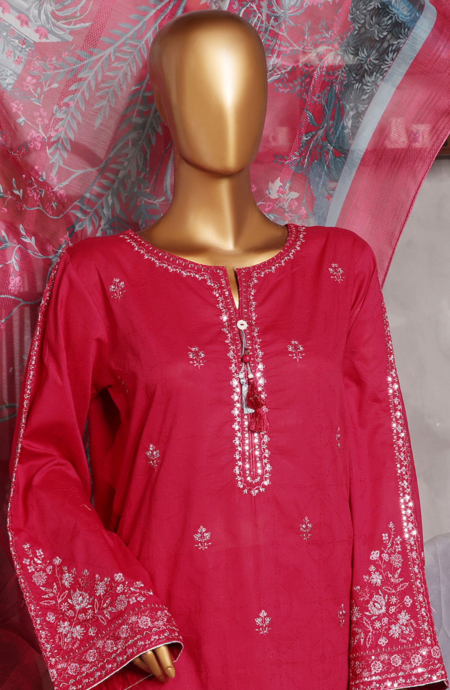 Home Muse by HZ Textile Embroidered Cotton Stitched 3 Piece Suit - SSJ-2503 Shocking Pink - HZ25MCSSJV2 - Summer Collection