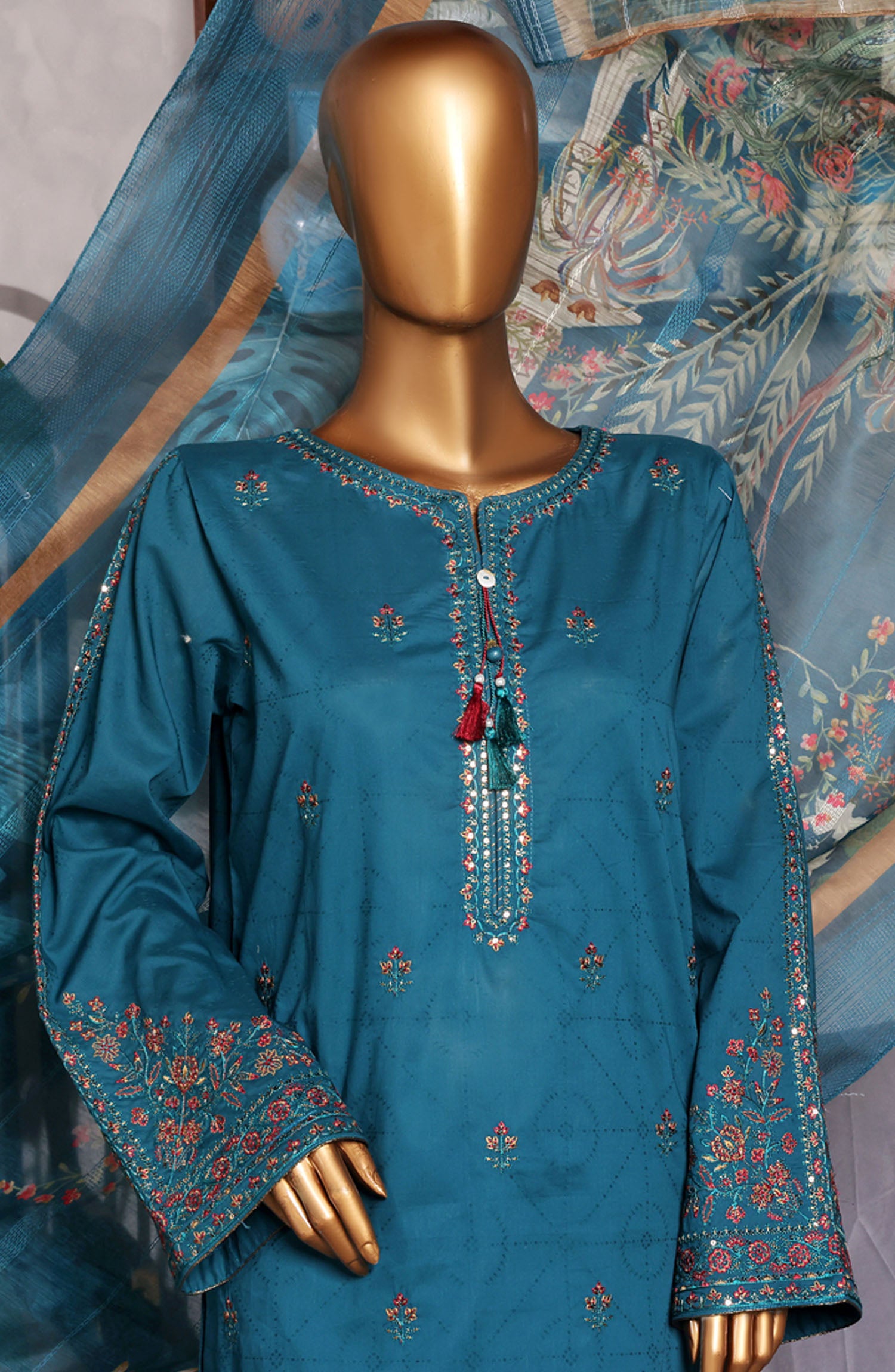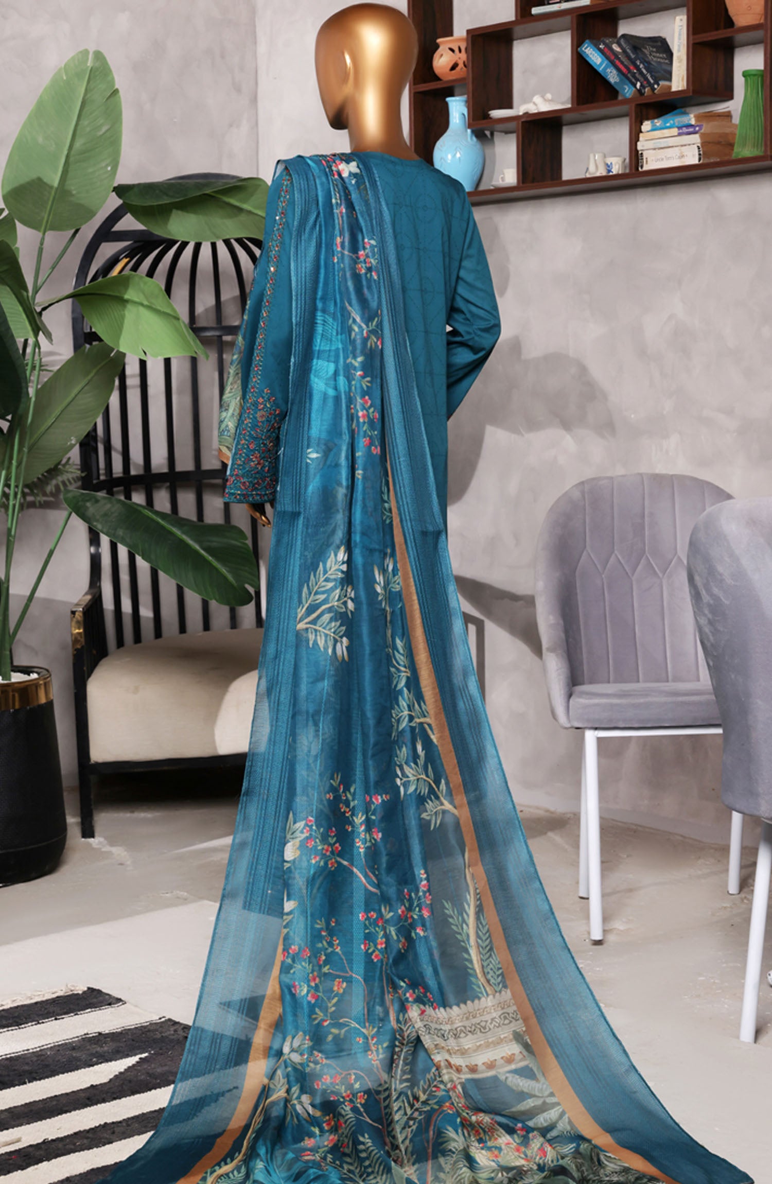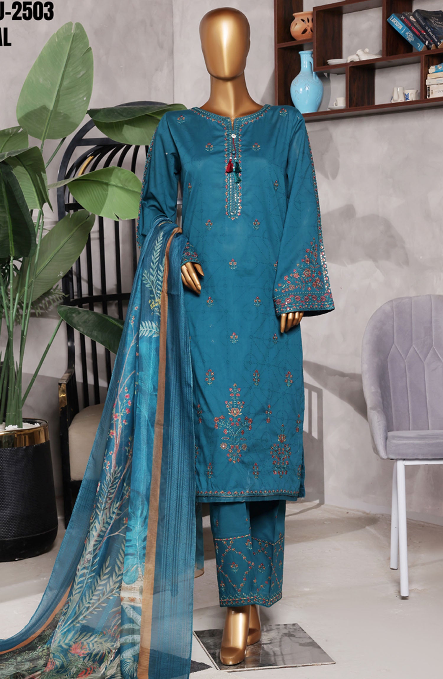 Home Muse by HZ Textile Embroidered Cotton Stitched 3 Piece Suit - SSJ-2503 Teal - HZ25MCSSJV2 - Summer Collection