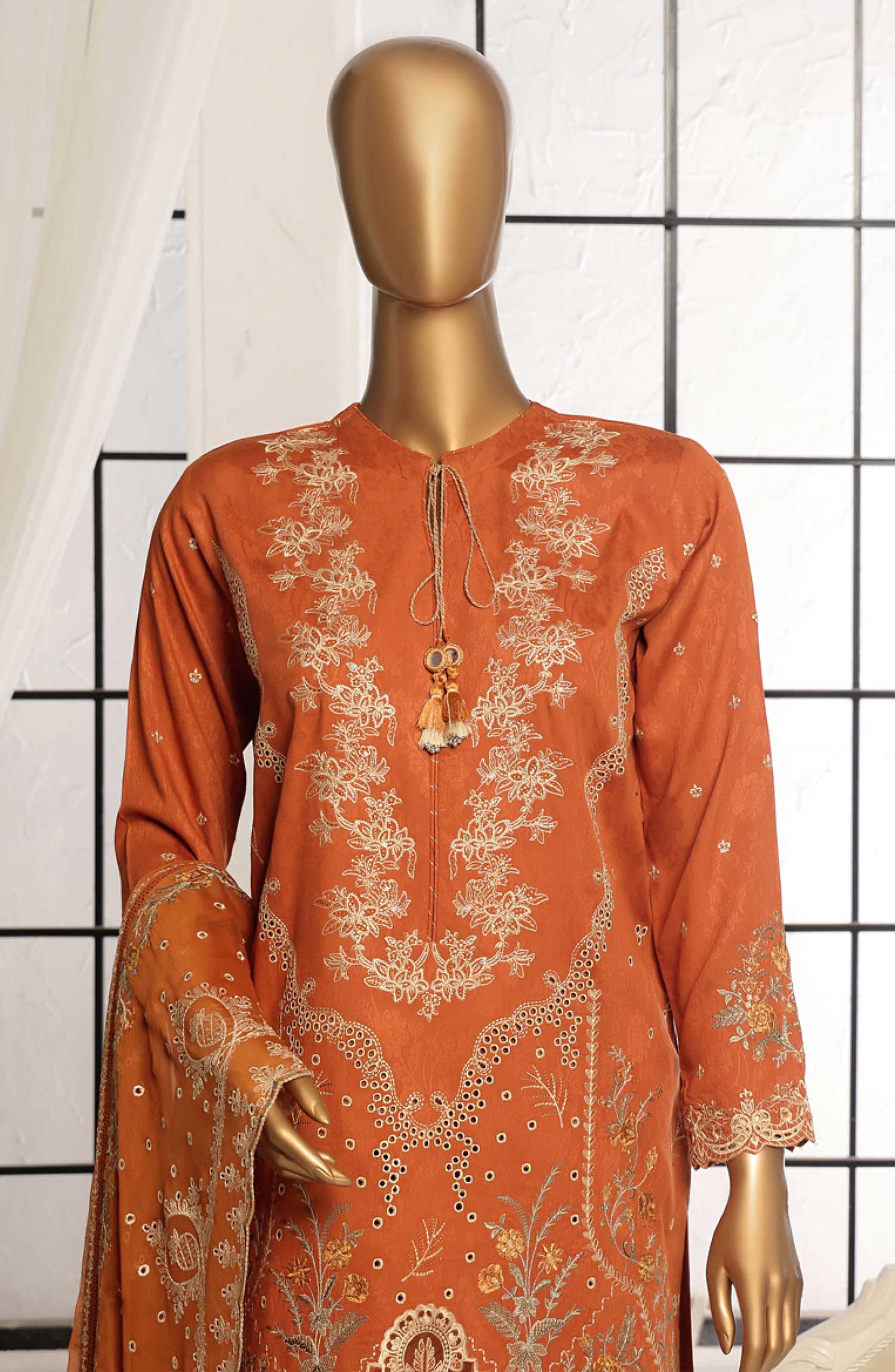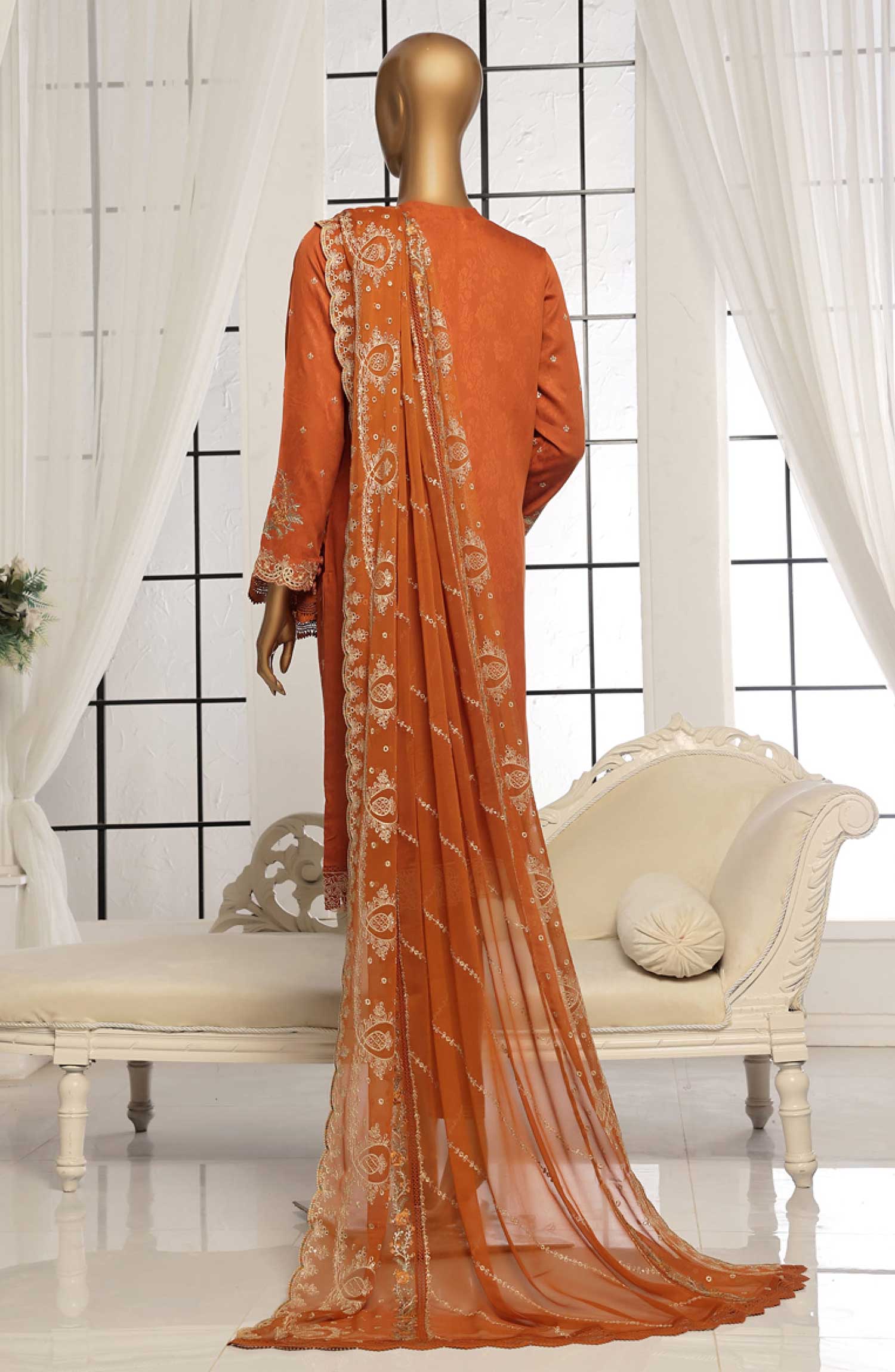 Home Muse by HZ Textile Embroidered Jacquard Stitched 3 Piece Suit - VEJ 101 Rust - HZ25MS - Rust - Festive Collection