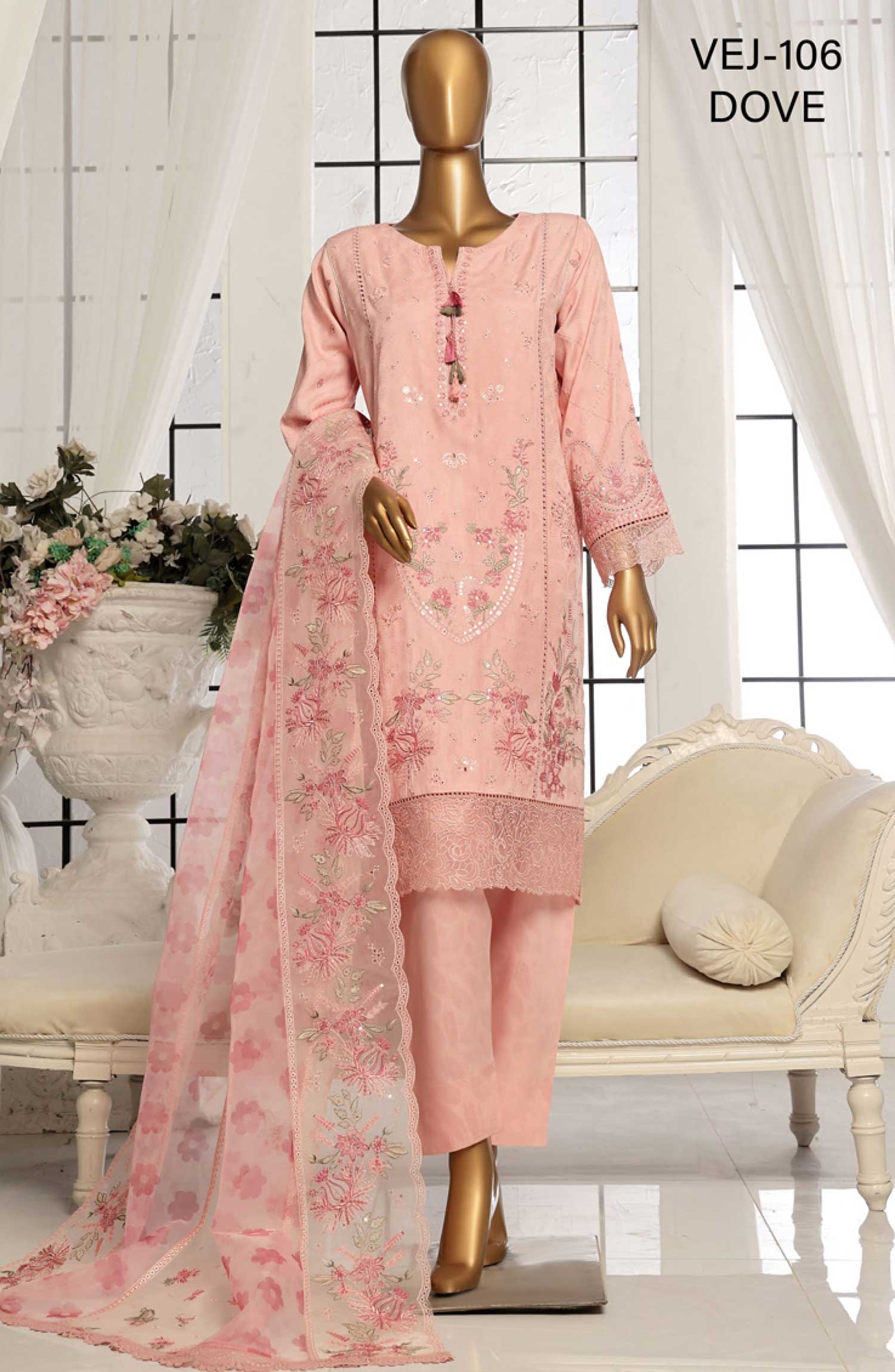 Home Muse by HZ Textile Embroidered Jacquard Stitched 3 Piece Suit - VEJ 106 Dove - HZ25MS - Dove - Festive Collection