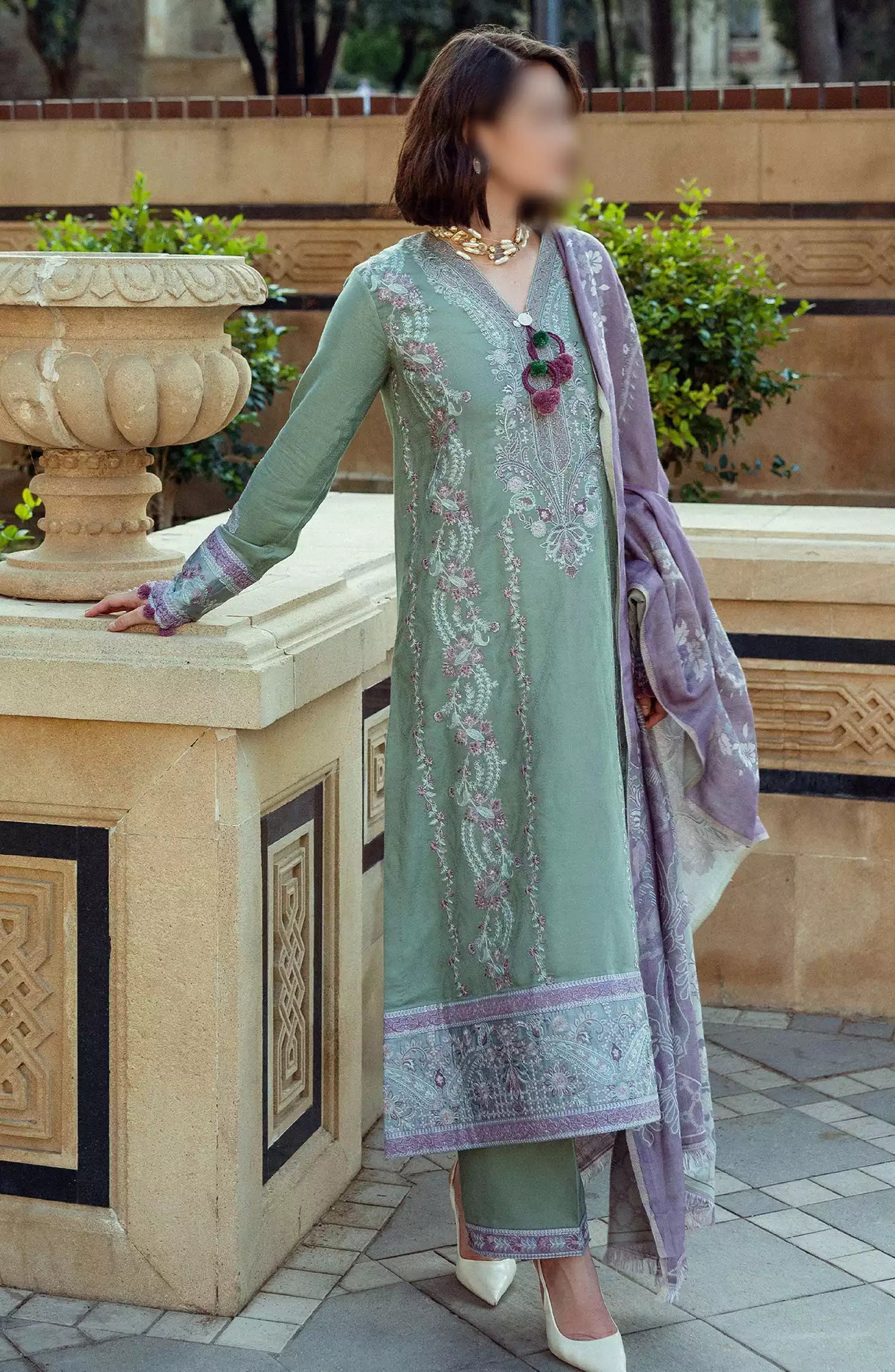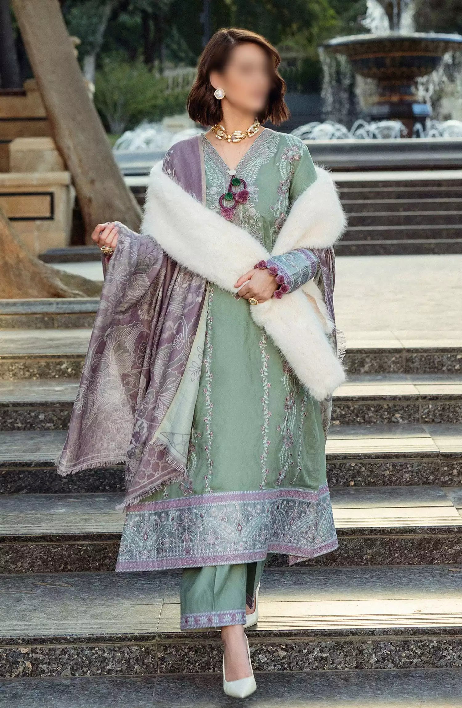 Mushq Broadway A Walk To Remember Luxury Winter Shawl Collection has been styled in the image for photography and illustrative purposes.
