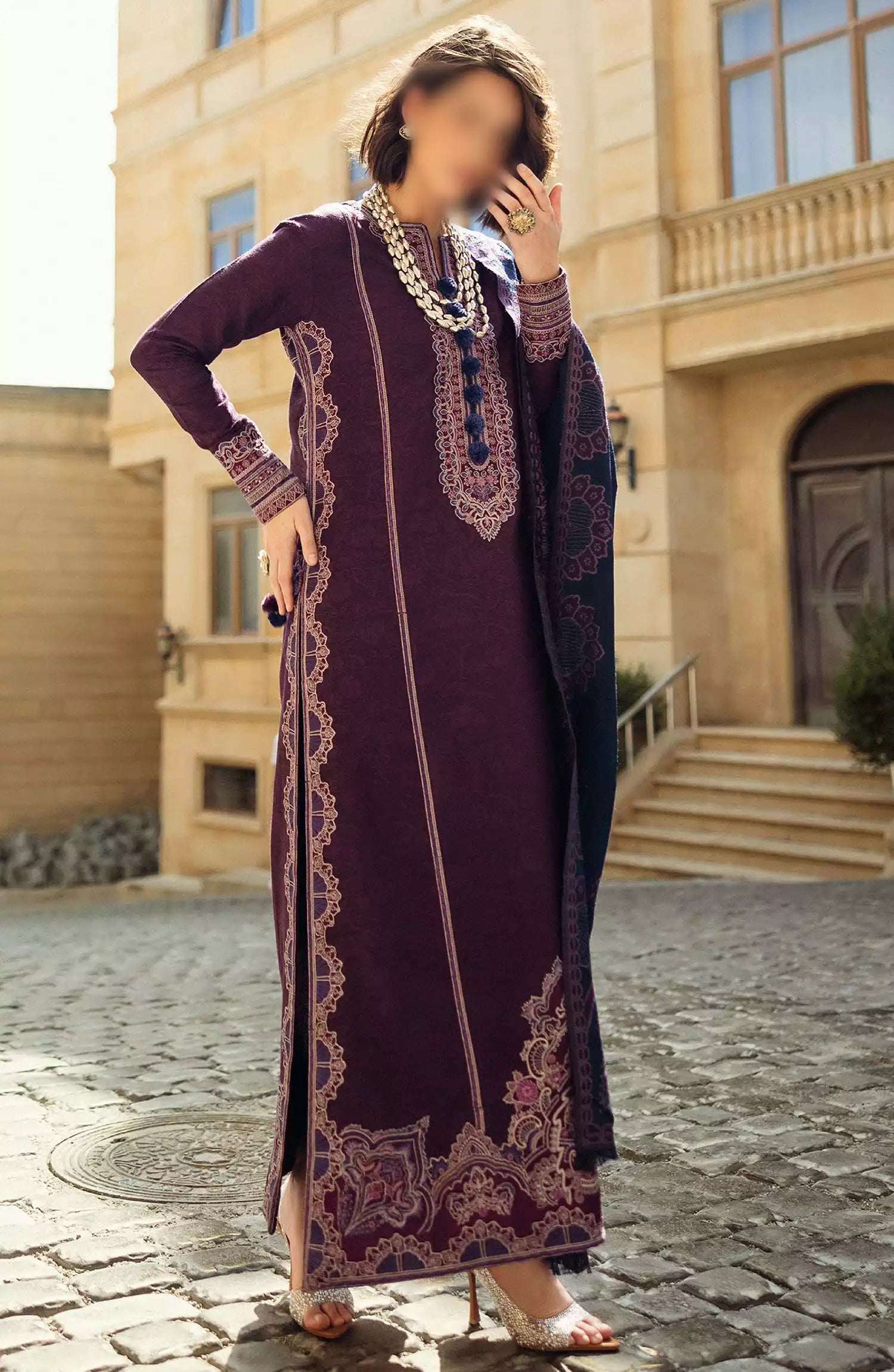 Mushq Broadway A Walk To Remember Luxury Winter Shawl Collection has been styled in the image for photography and illustrative purposes.