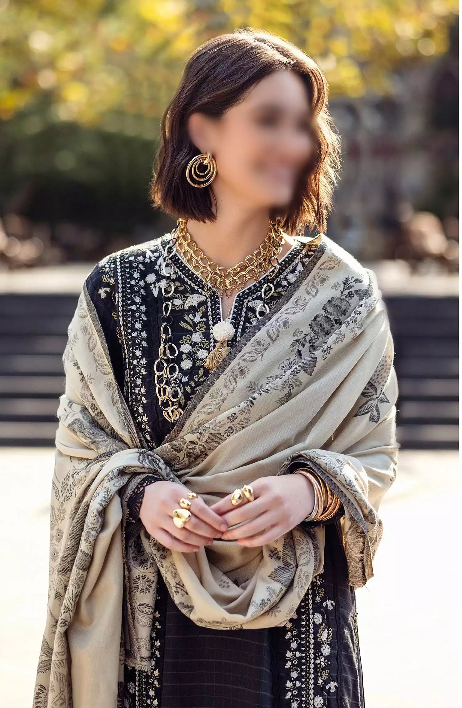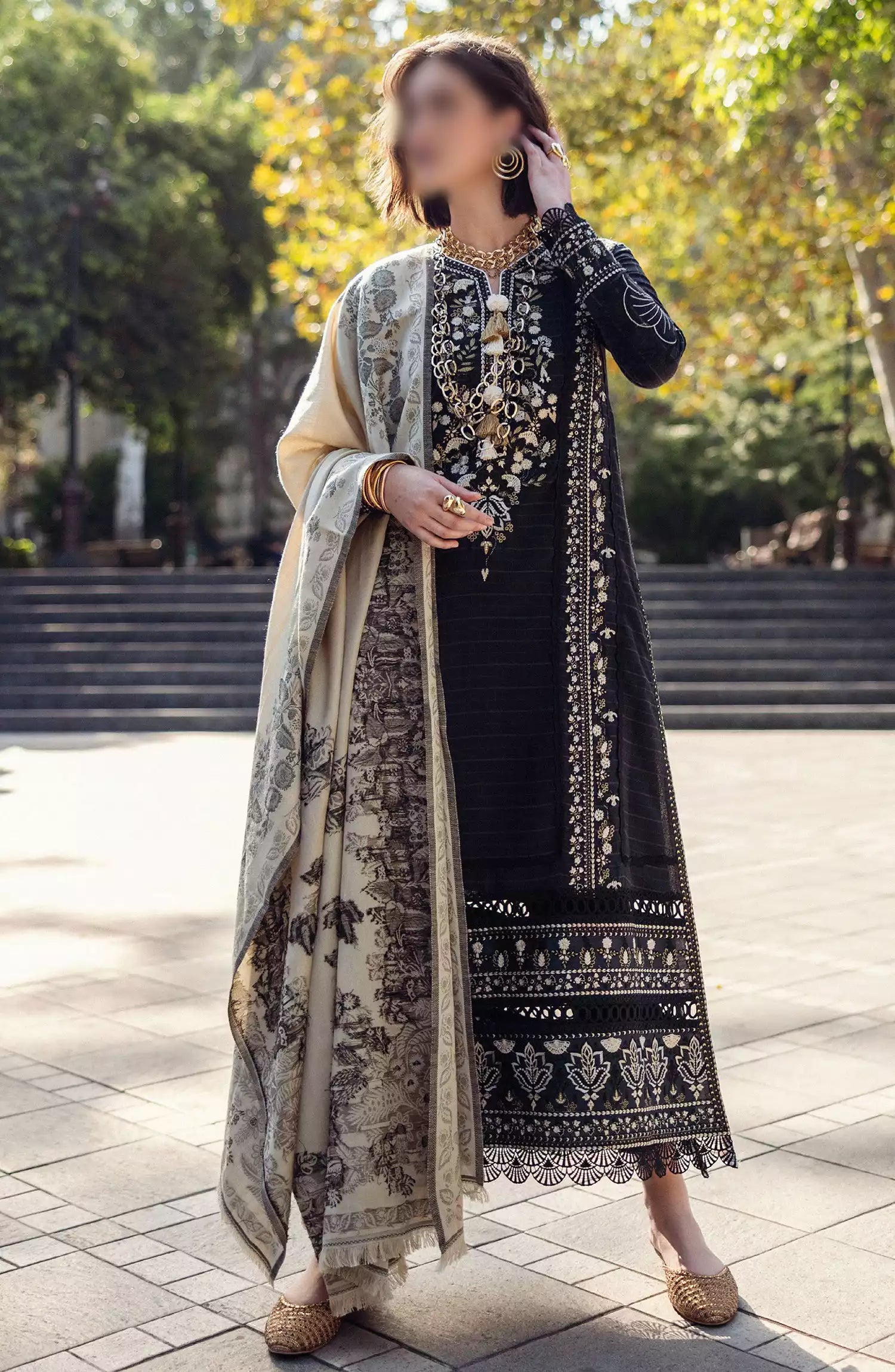Mushq Broadway A Walk To Remember Luxury Winter Shawl Collection has been styled in the image for photography and illustrative purposes.