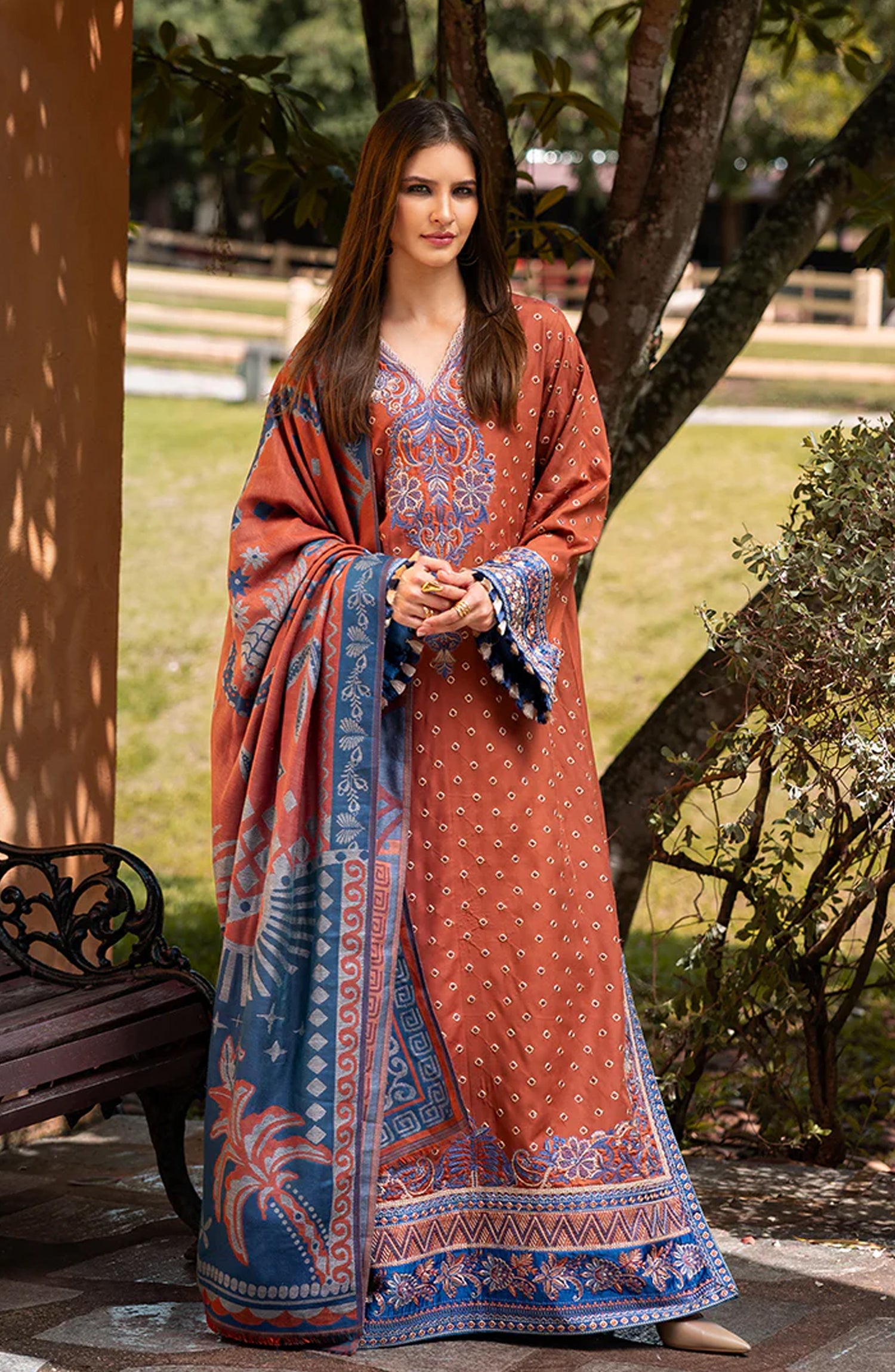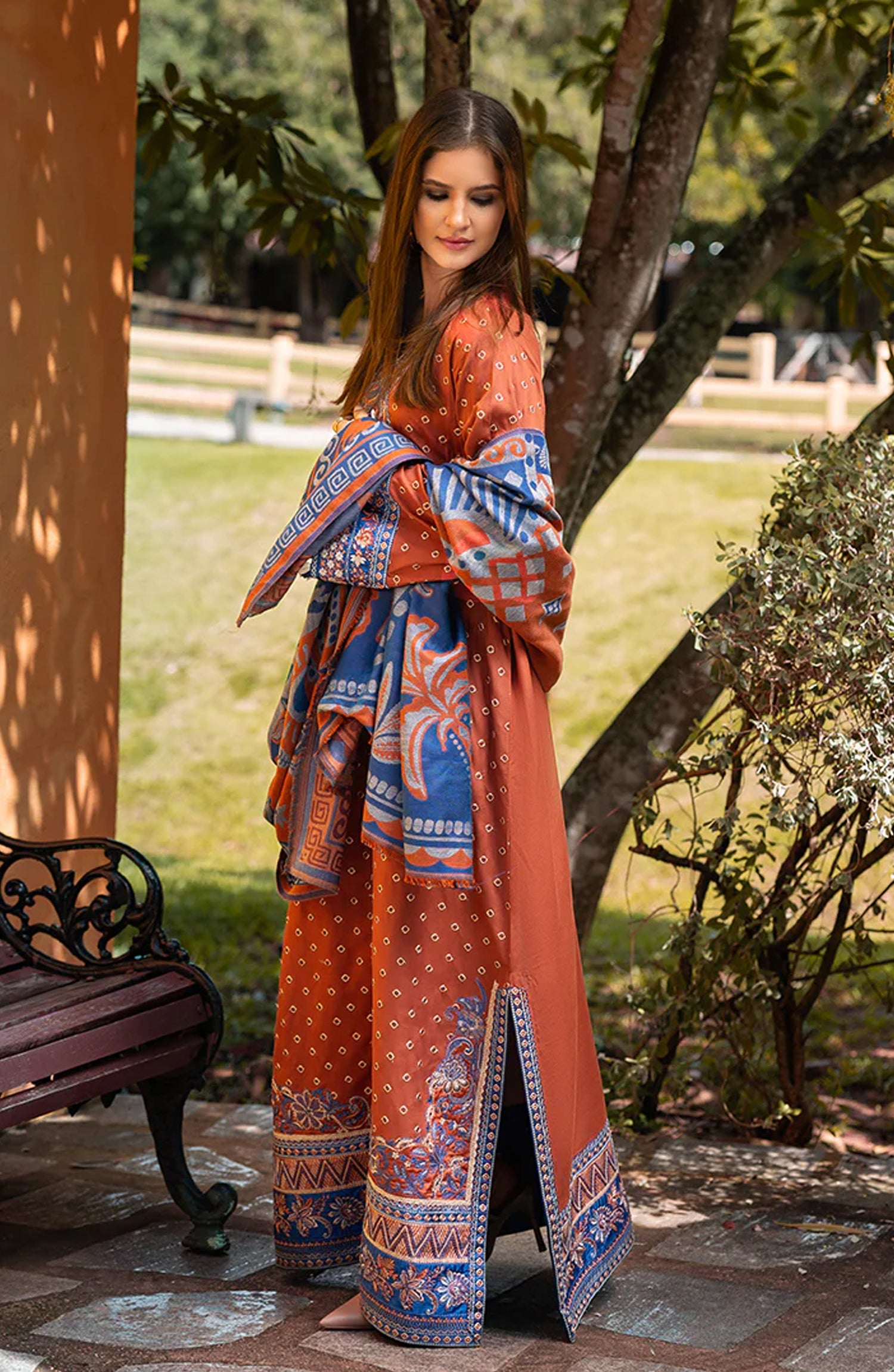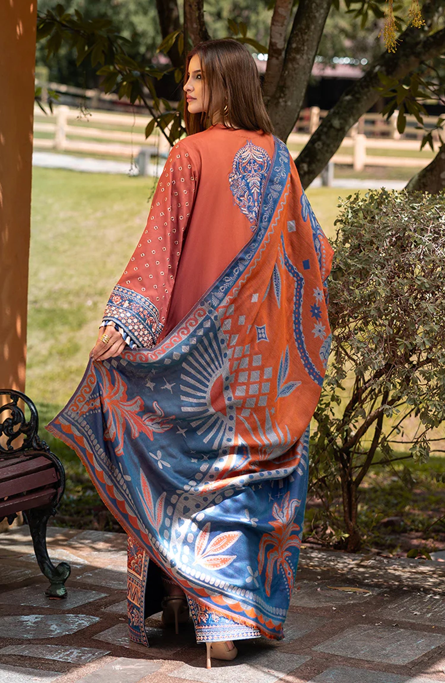 • Embroidered front & back daman border (silk)