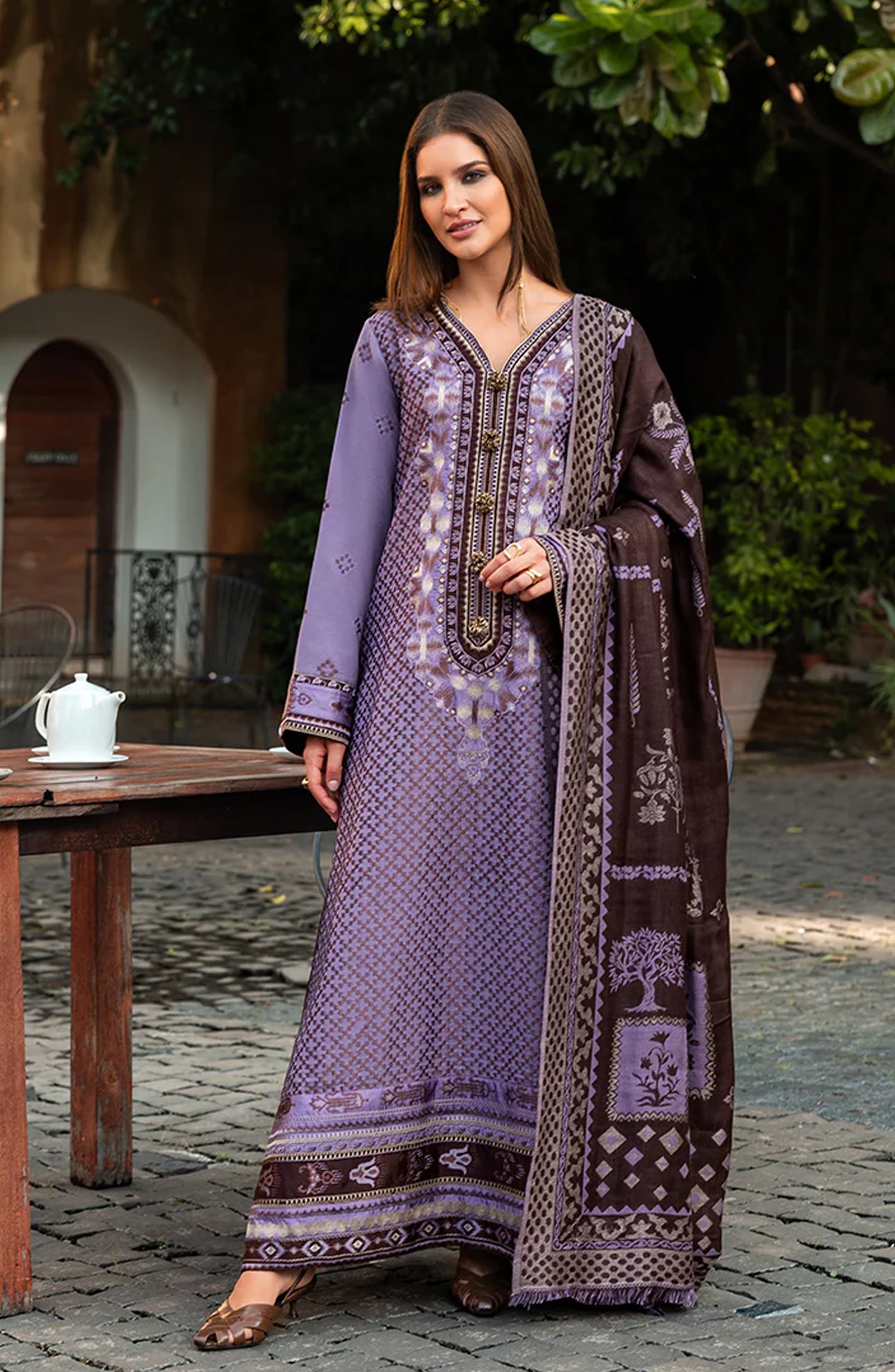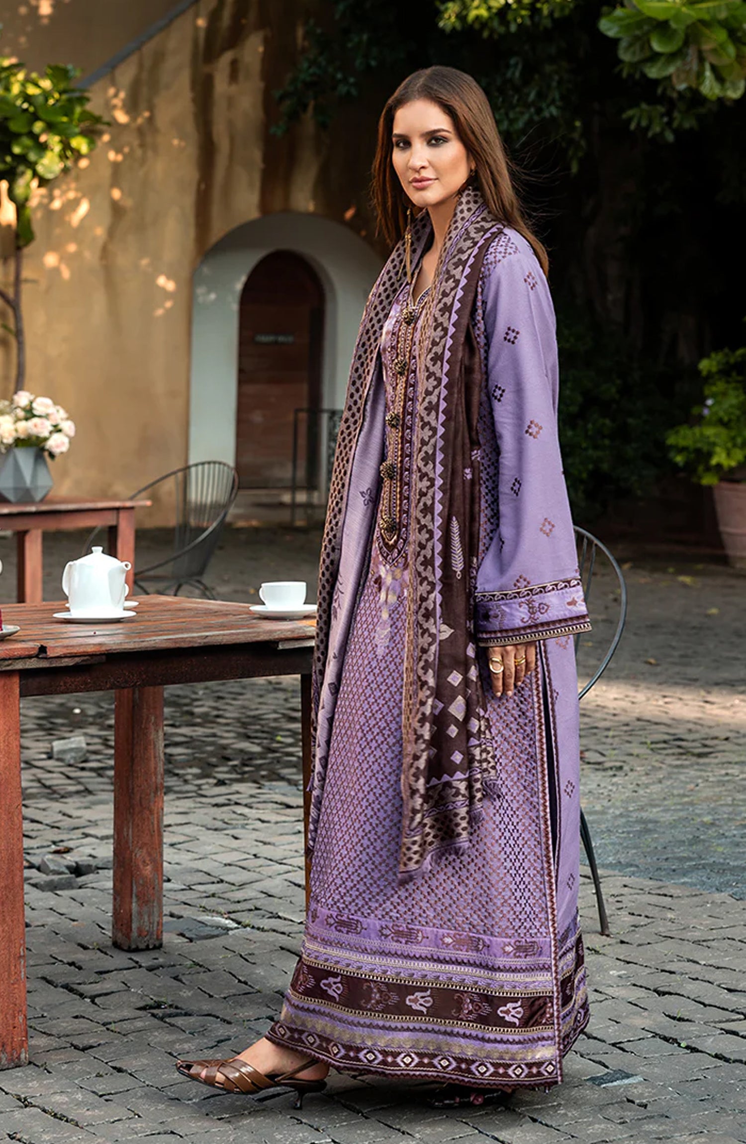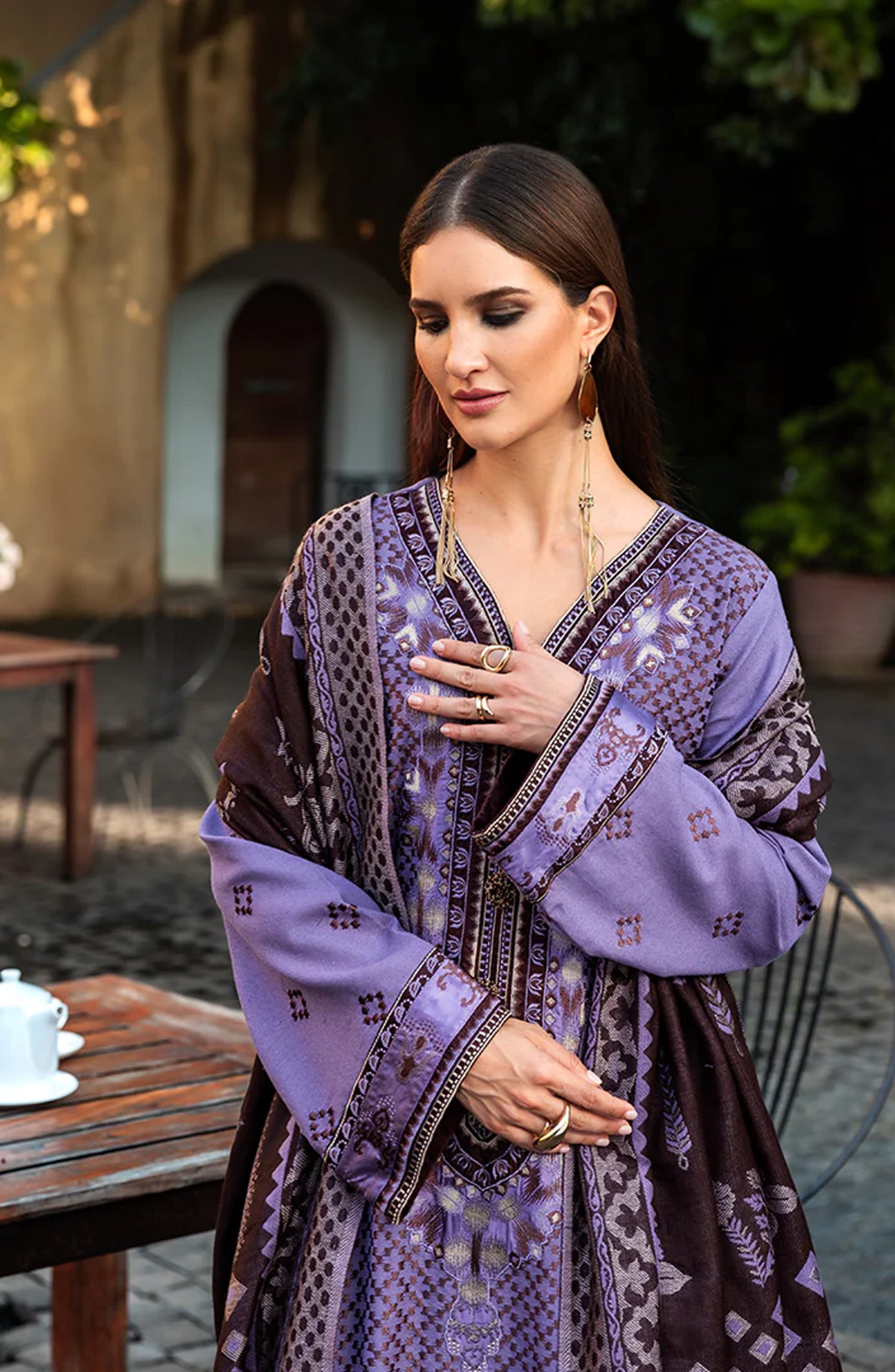 • Embroidered sleeves border (silk)