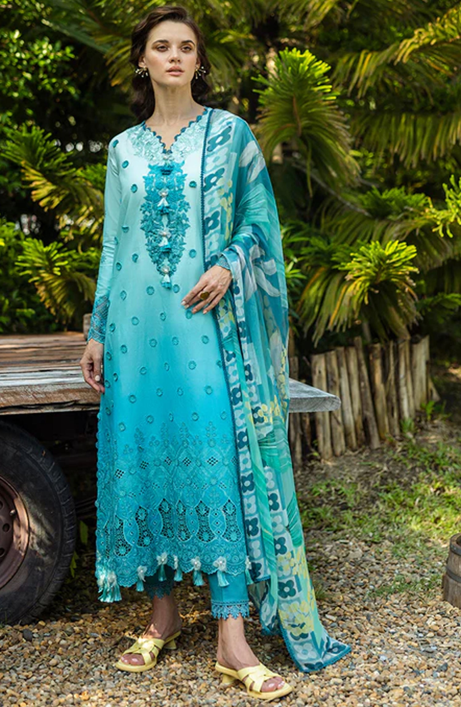 Mushq Solace Ombre Chikankari Lawn Summer Collection 2025 has been styled in the image for photography and illustrative purposes.