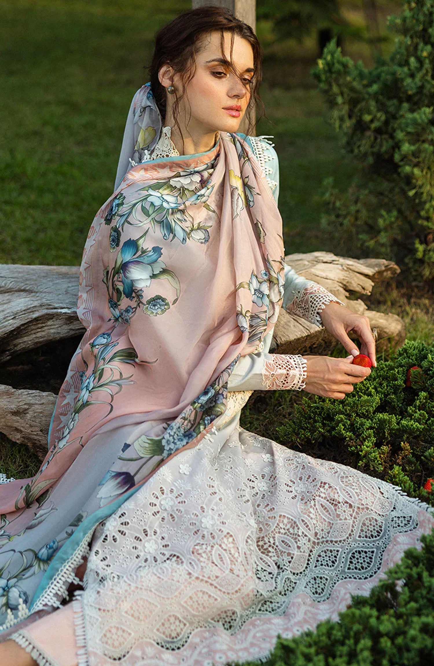 Mushq Solace Ombre Chikankari Lawn Summer Collection 2025 has been styled in the image for photography and illustrative purposes.