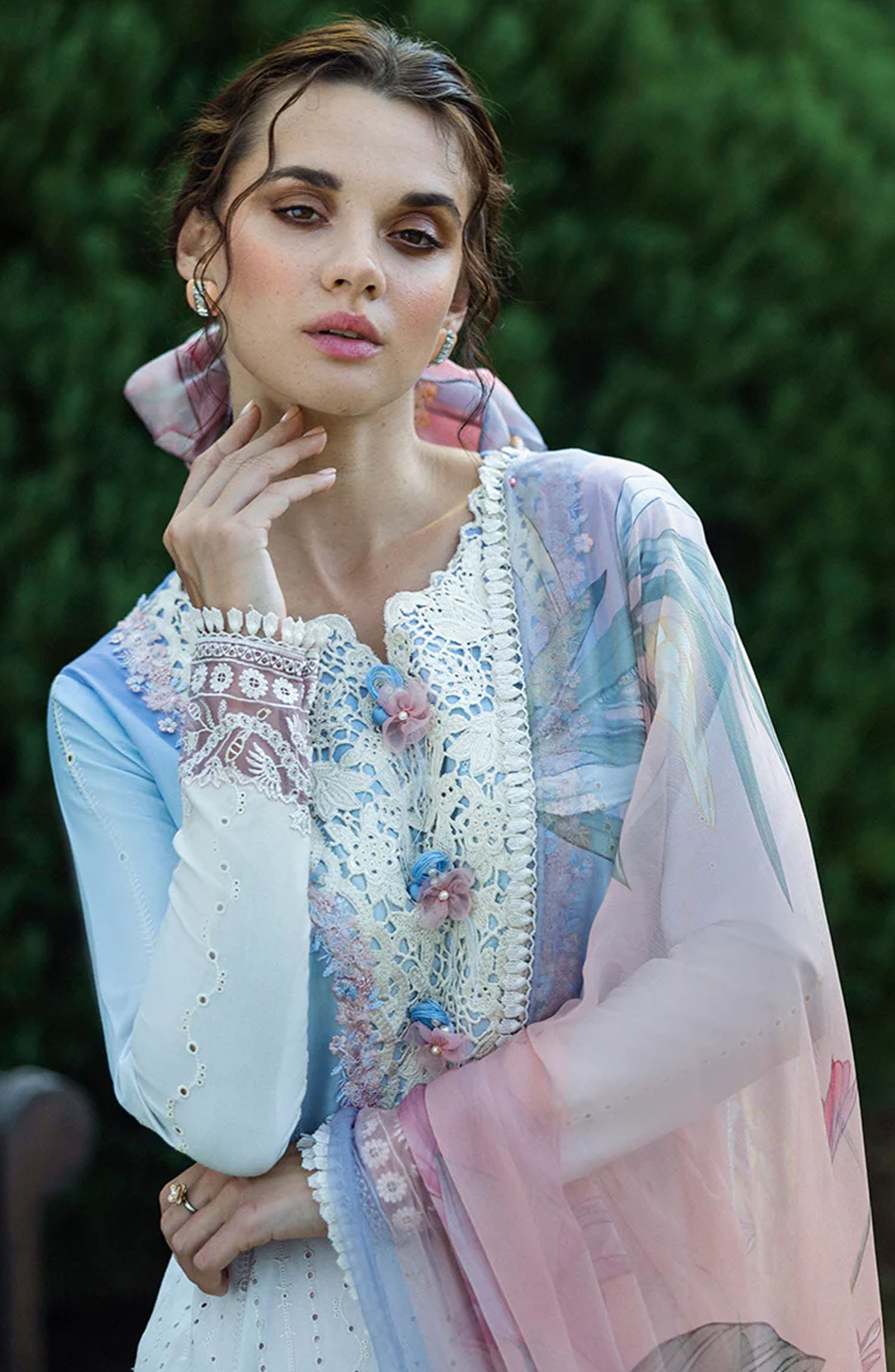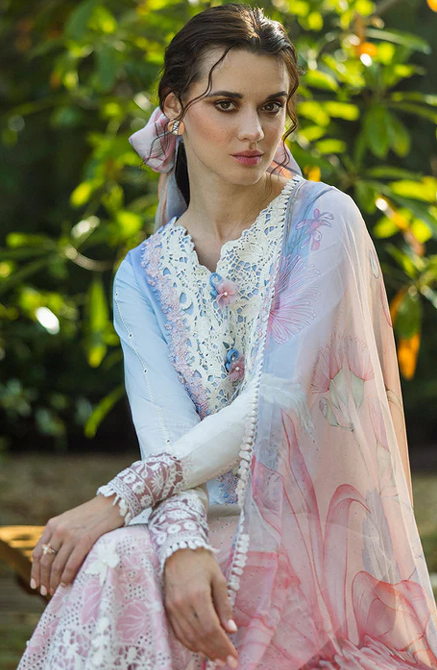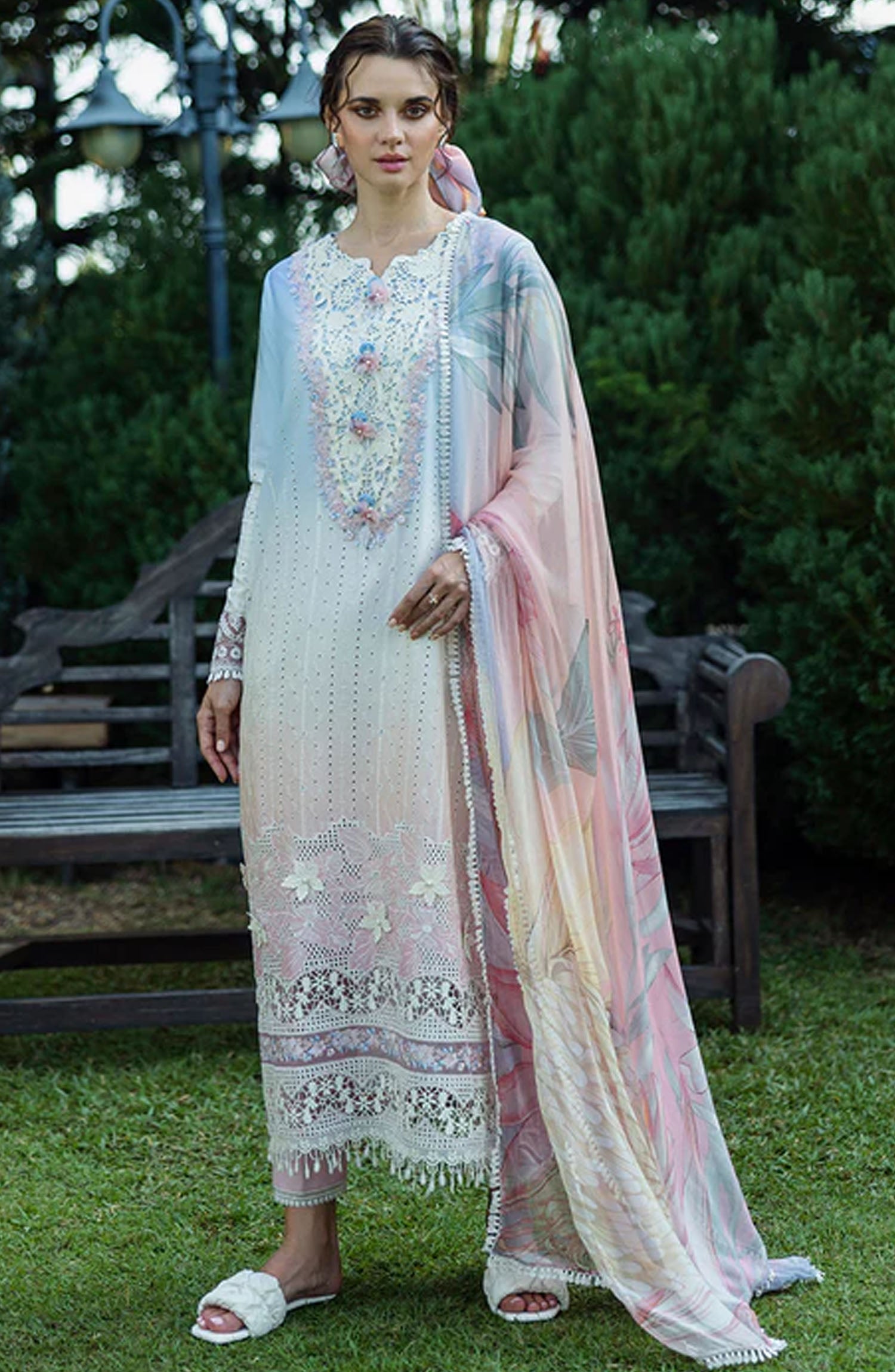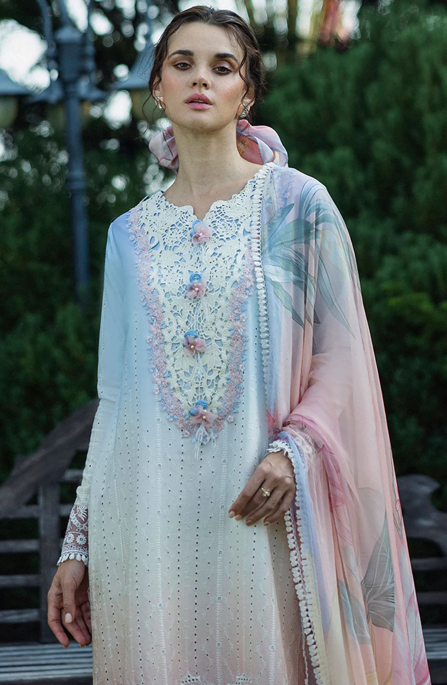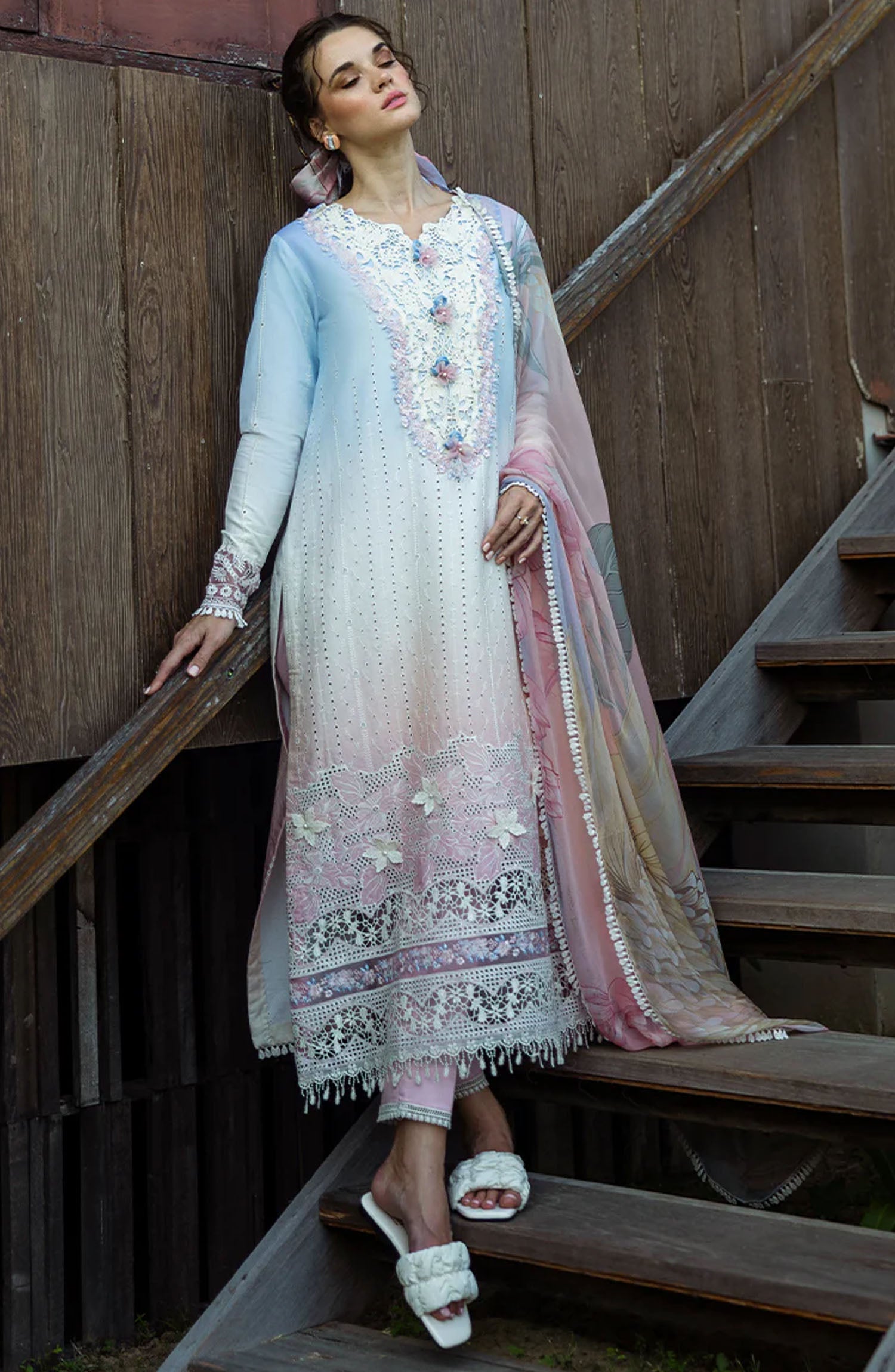 Mushq Solace Ombre Chikankari Lawn Summer Collection 2025 has been styled in the image for photography and illustrative purposes.