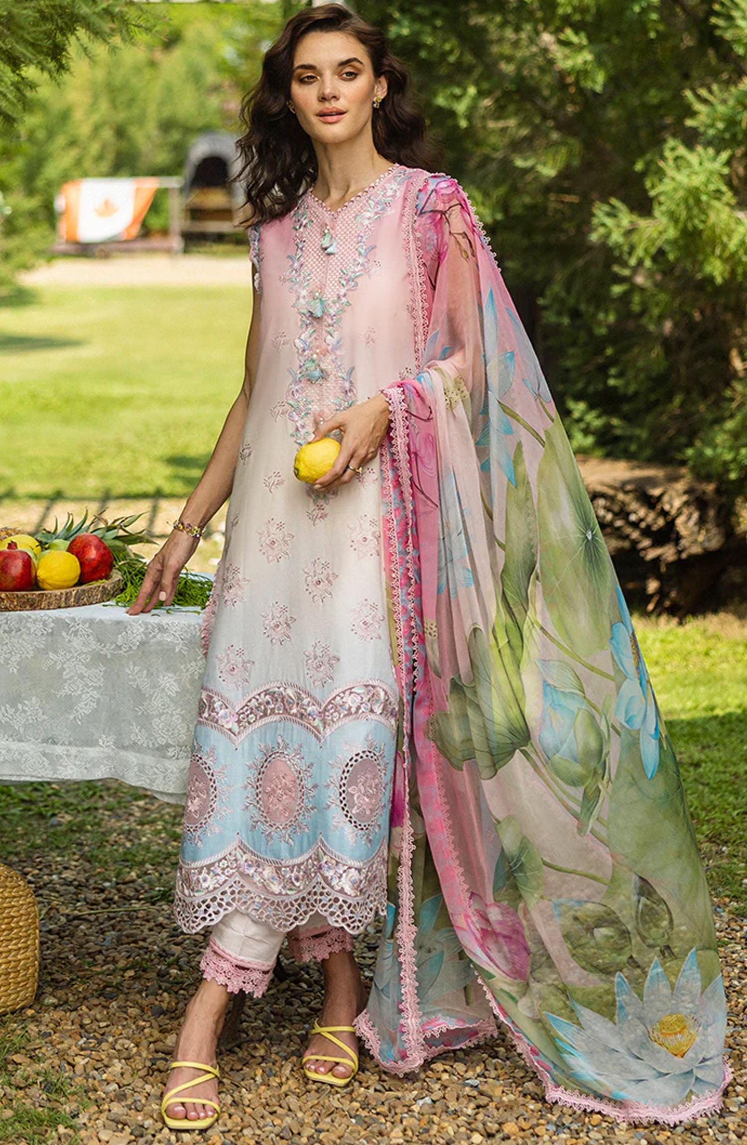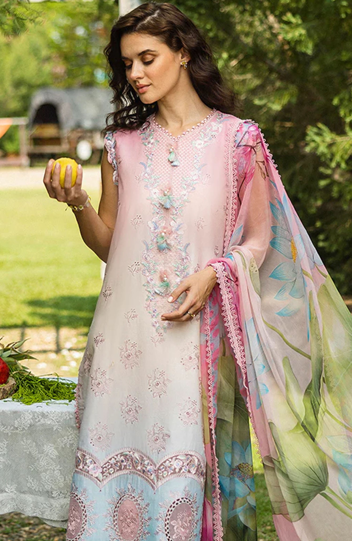 Mushq Solace Ombre Chikankari Lawn Summer Collection 2025 has been styled in the image for photography and illustrative purposes.