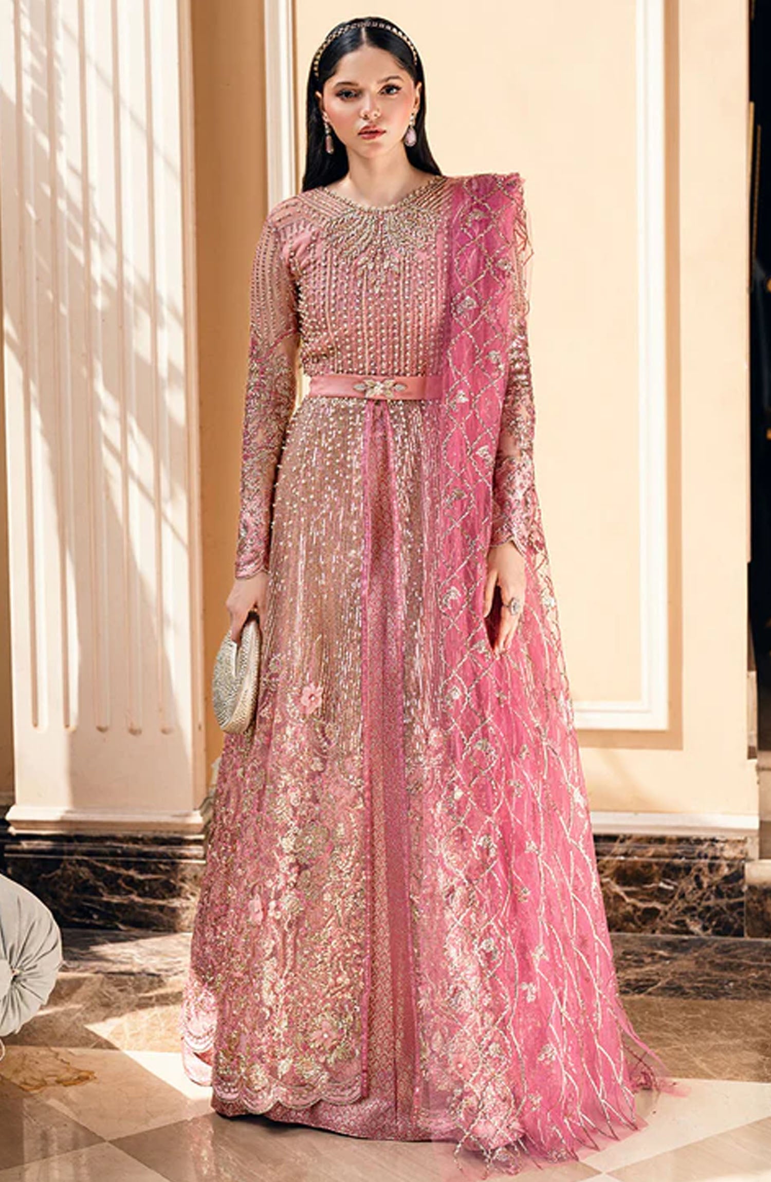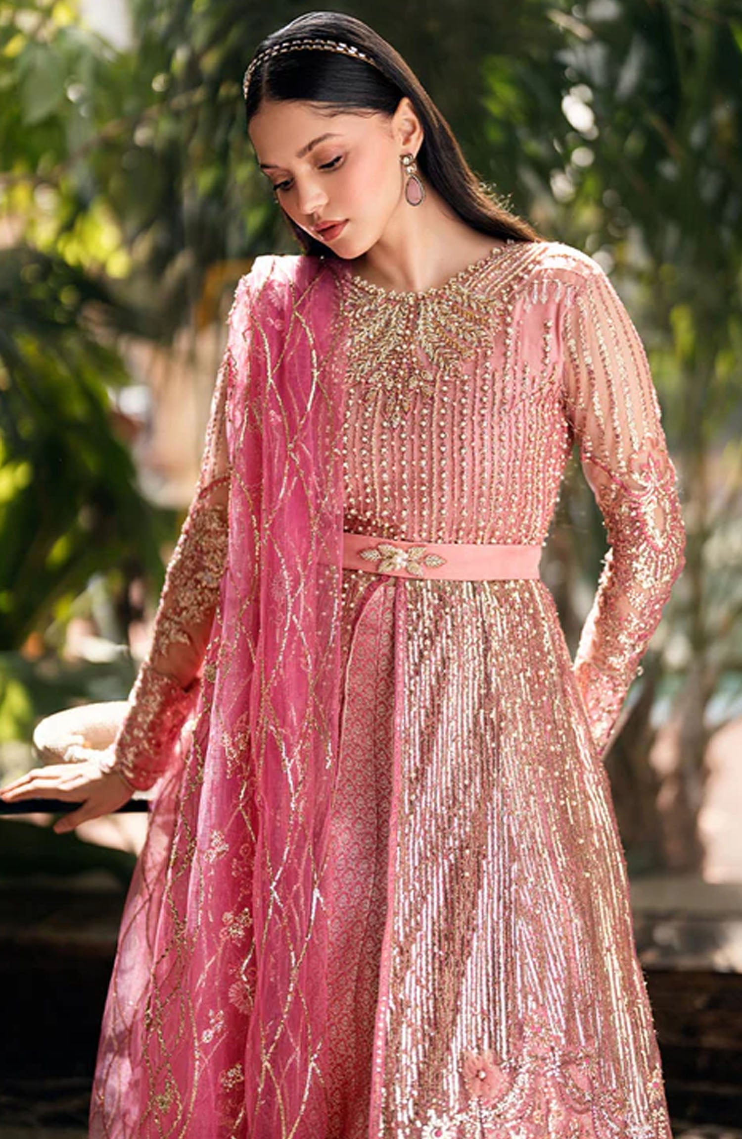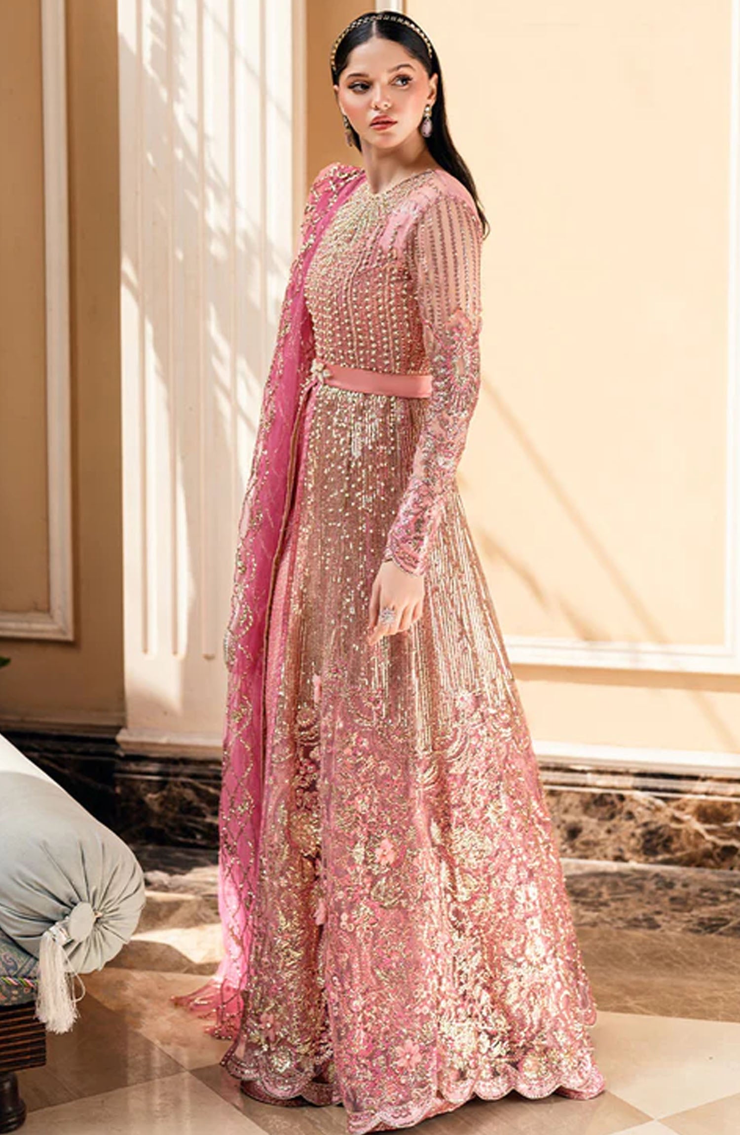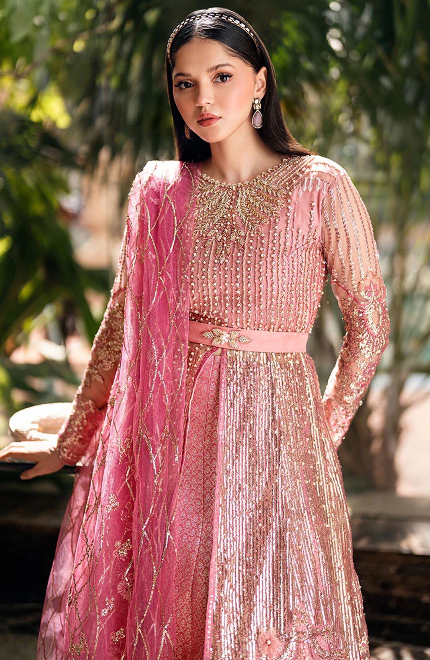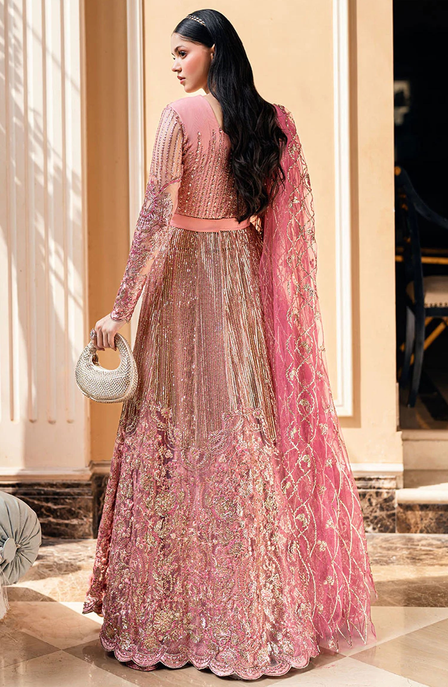 Embroidered Sequinned Front And Amp Back Daman Lace Silk