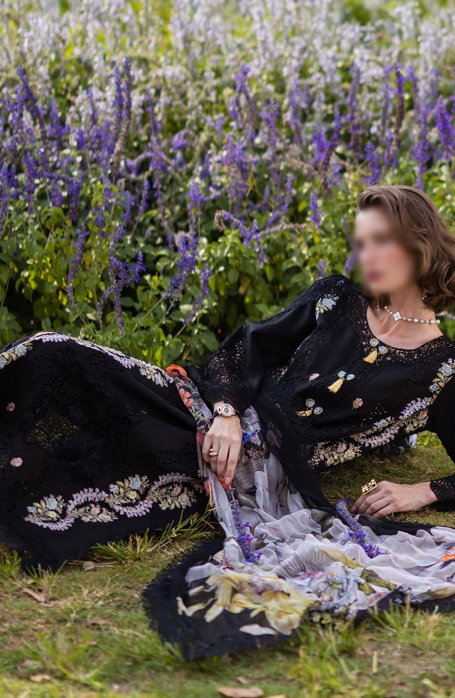 Mahpara by Sadabahar Embroidered Net Stitched 3 Piece Suit - Design-01 - SBD25PRLM - Black - Luxury Festive Collection