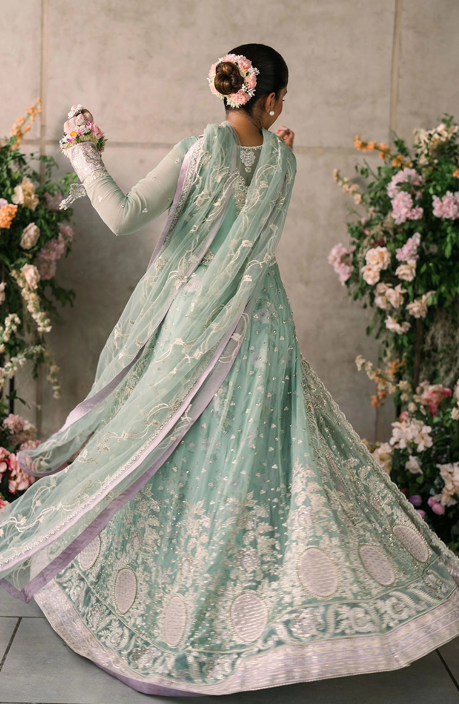 embroidered and sequinnednet dupatta palu lace