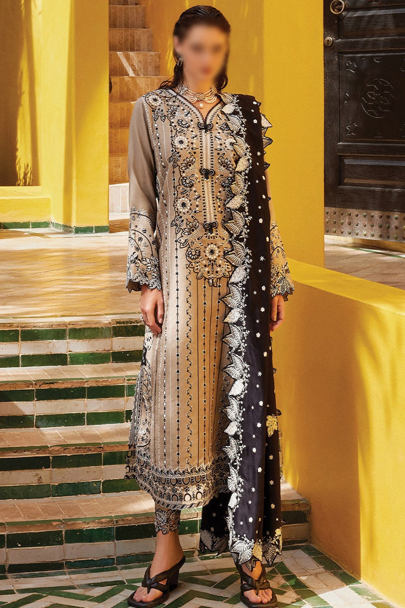 Mushq Moroccon Dream Unstitched Sateen Shawl Collection has been styled in the image for photography and illustrative purposes.