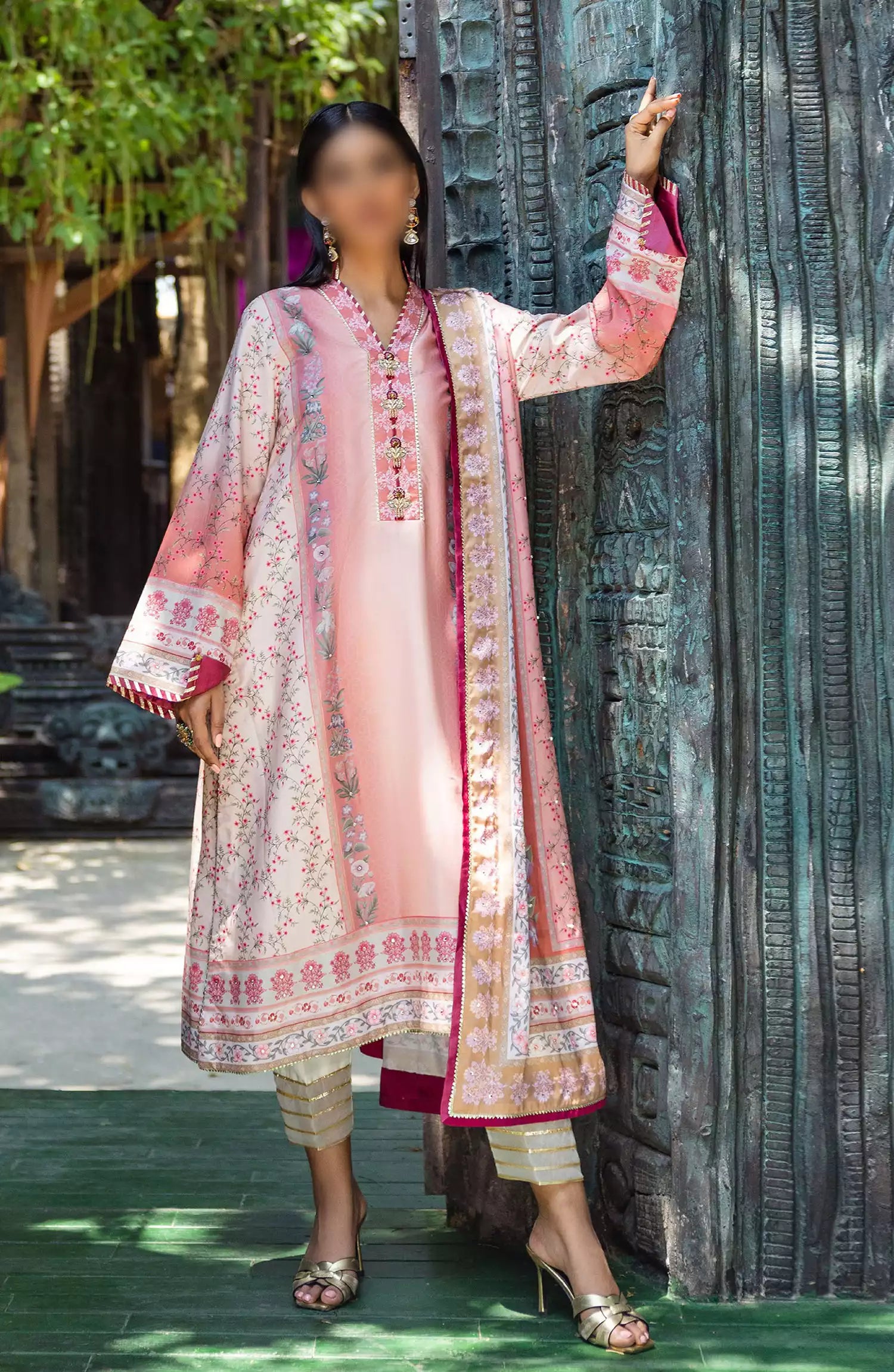 Mushq Nirvana Unstitched Silk Edit 2024 has been styled in the image for photography and illustrative purposes.