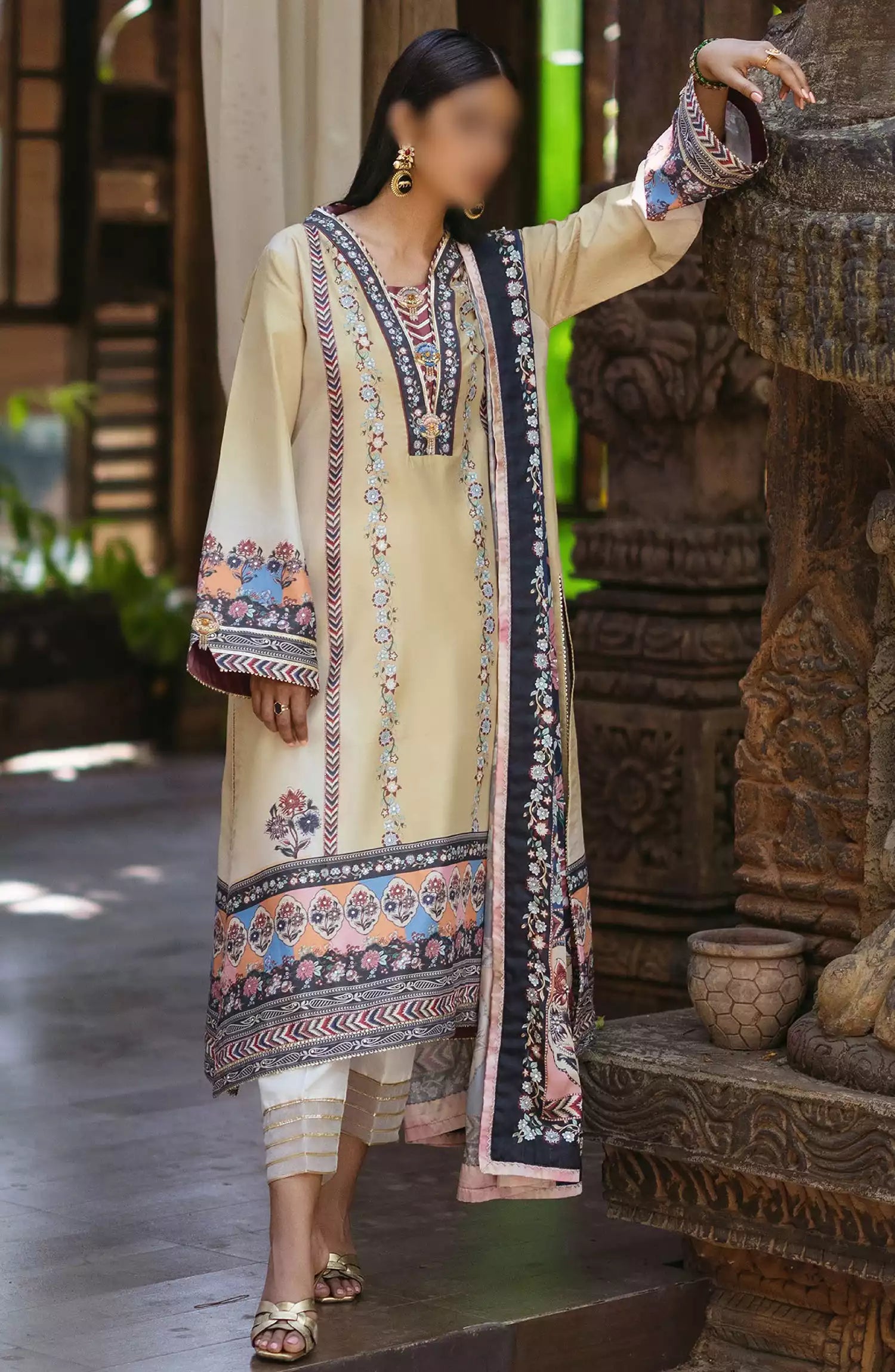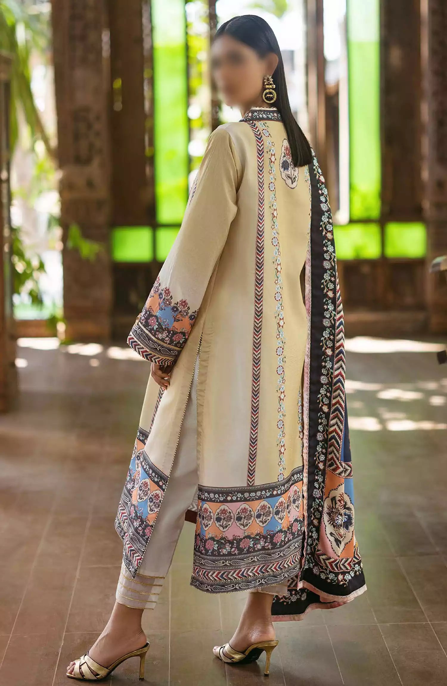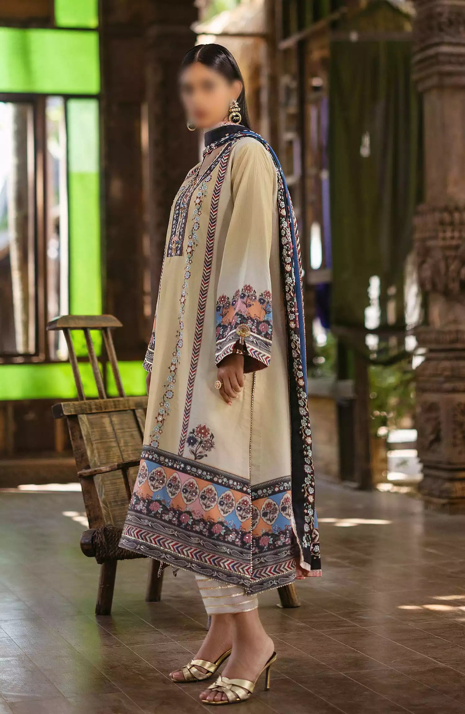 Mushq Nirvana Unstitched Silk Edit 2024 has been styled in the image for photography and illustrative purposes.