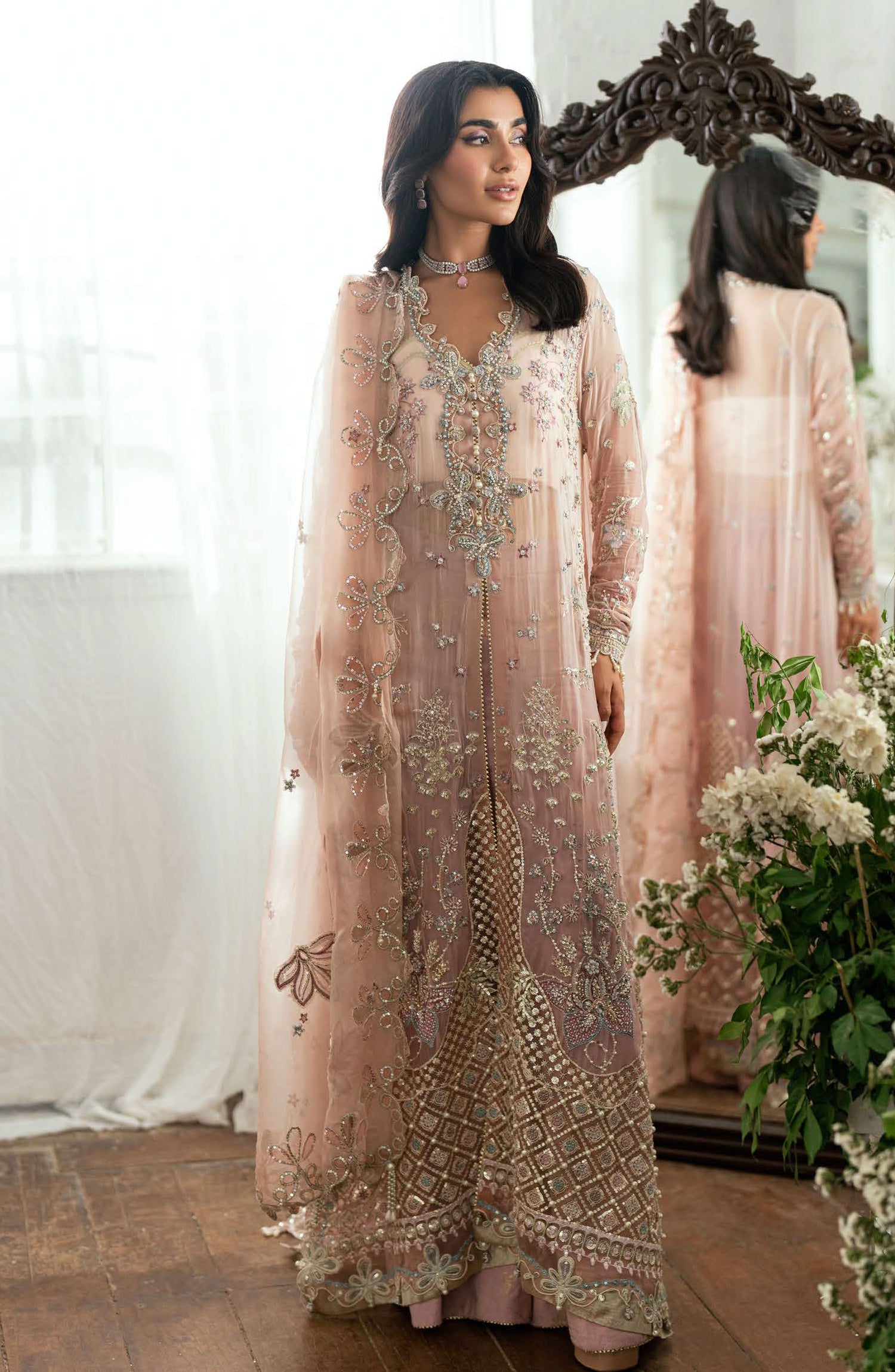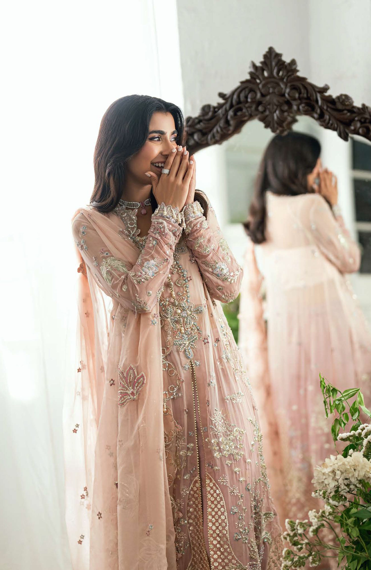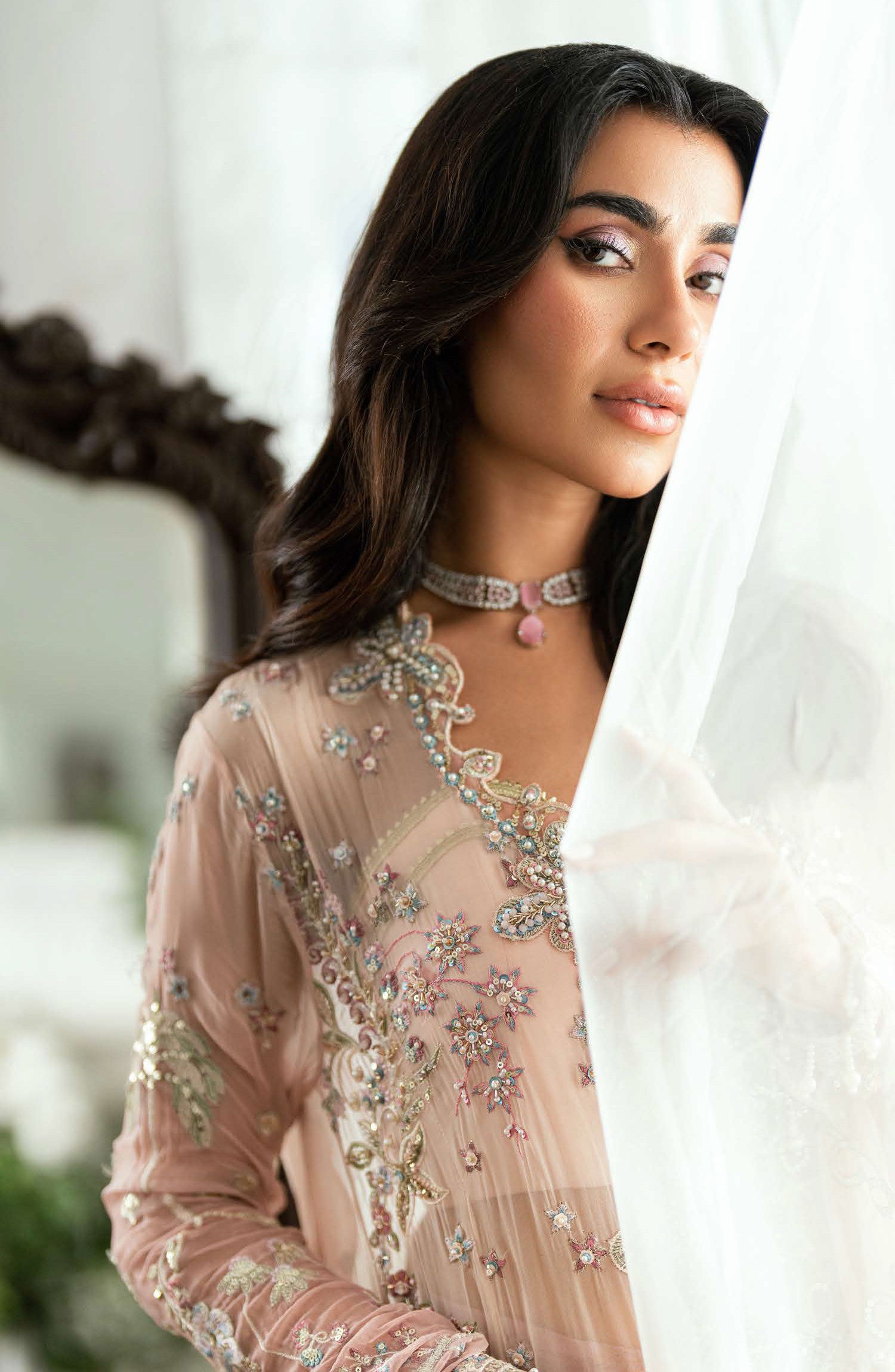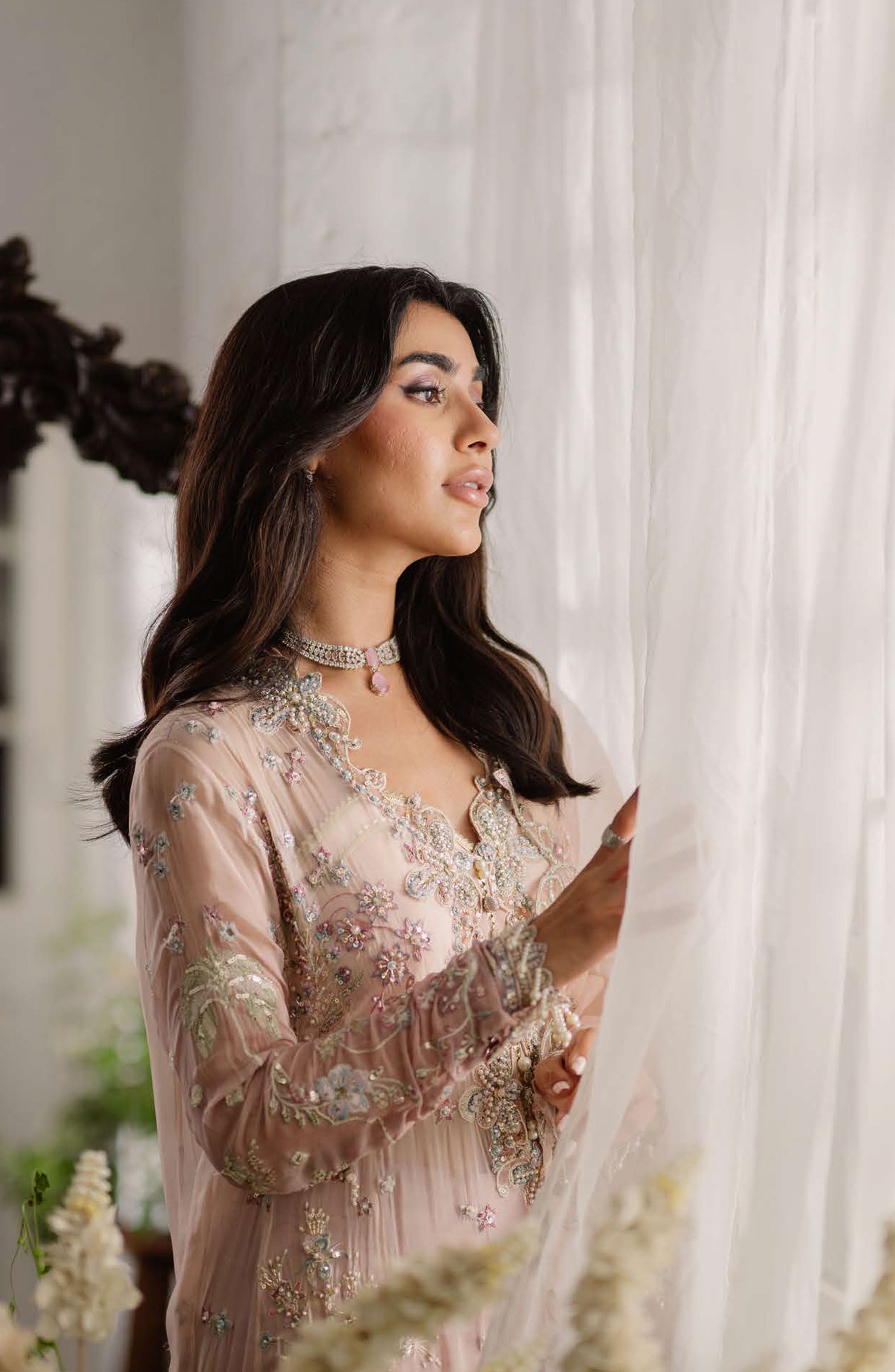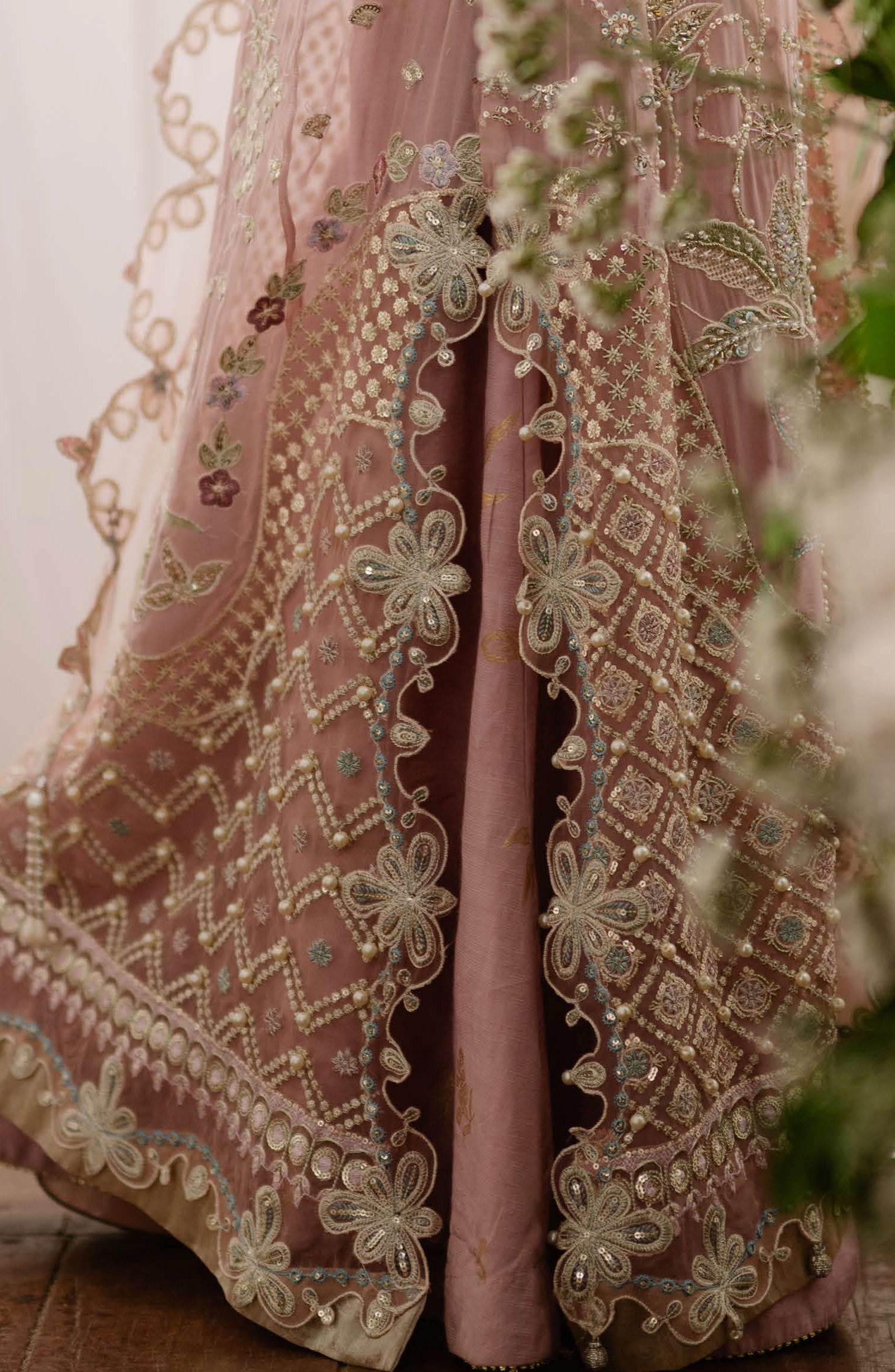 • Embroidered, sequinned pearl embellished front daman border (organza)