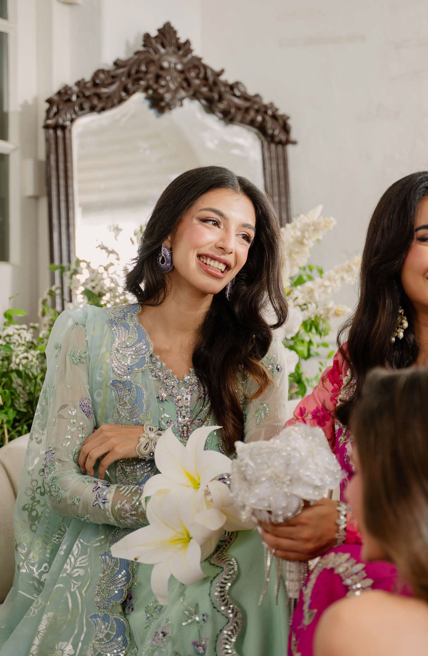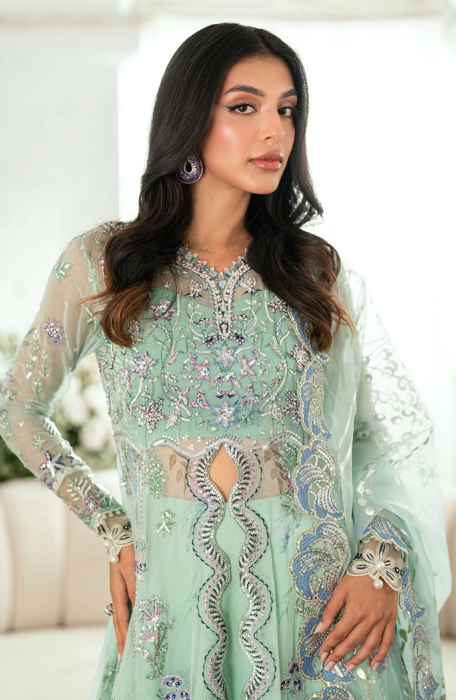 • Embroidered, sequinned dupatta border (organza)