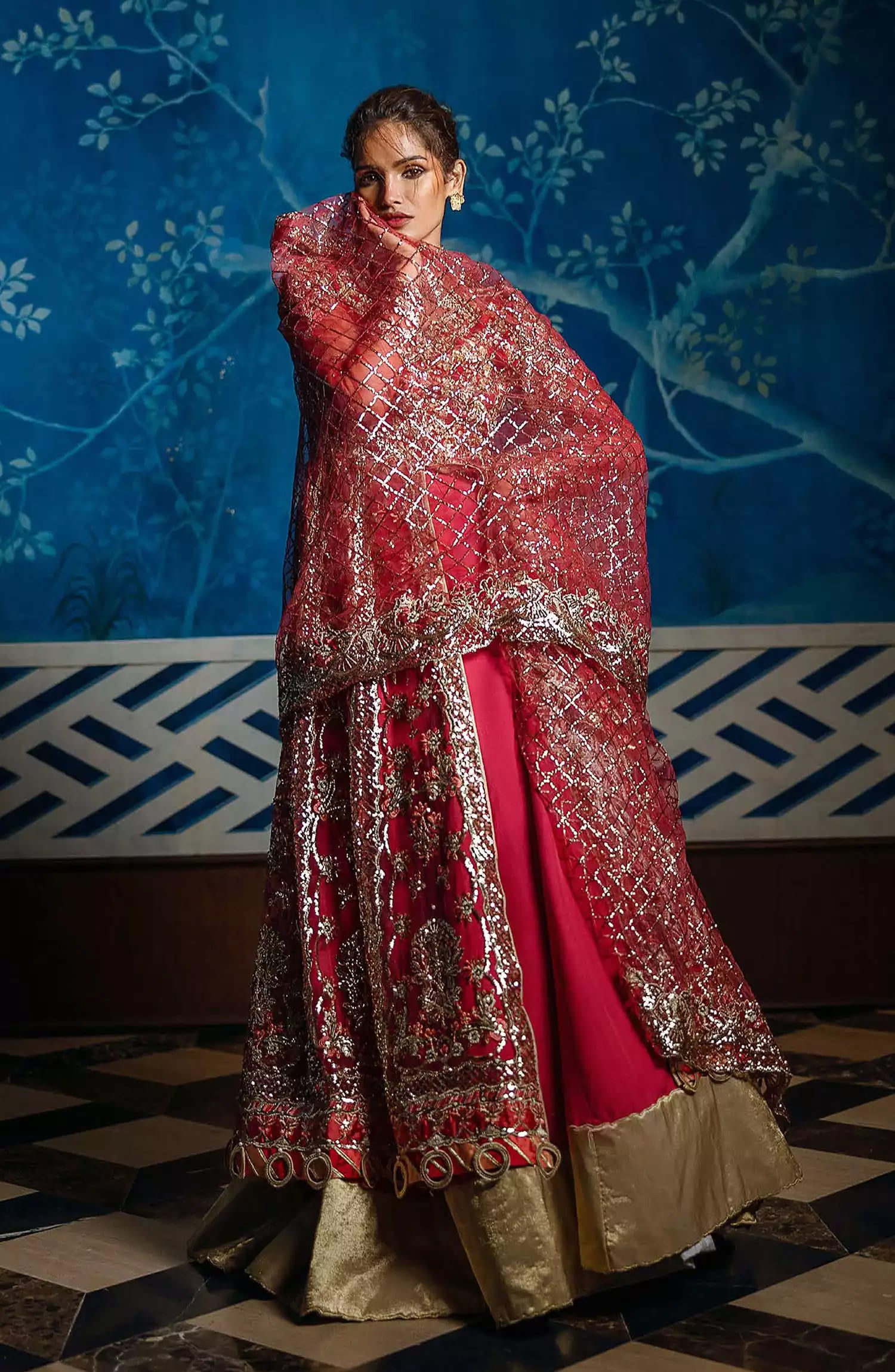 Mushq Stardust Wedding Unstitched 2024 has been styled in the image for photography and illustrative purposes.