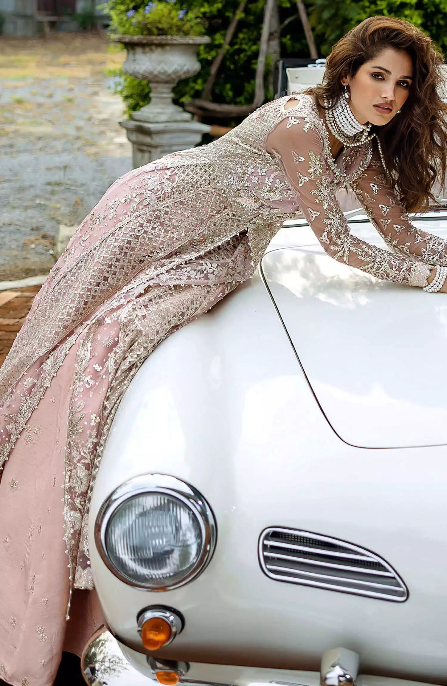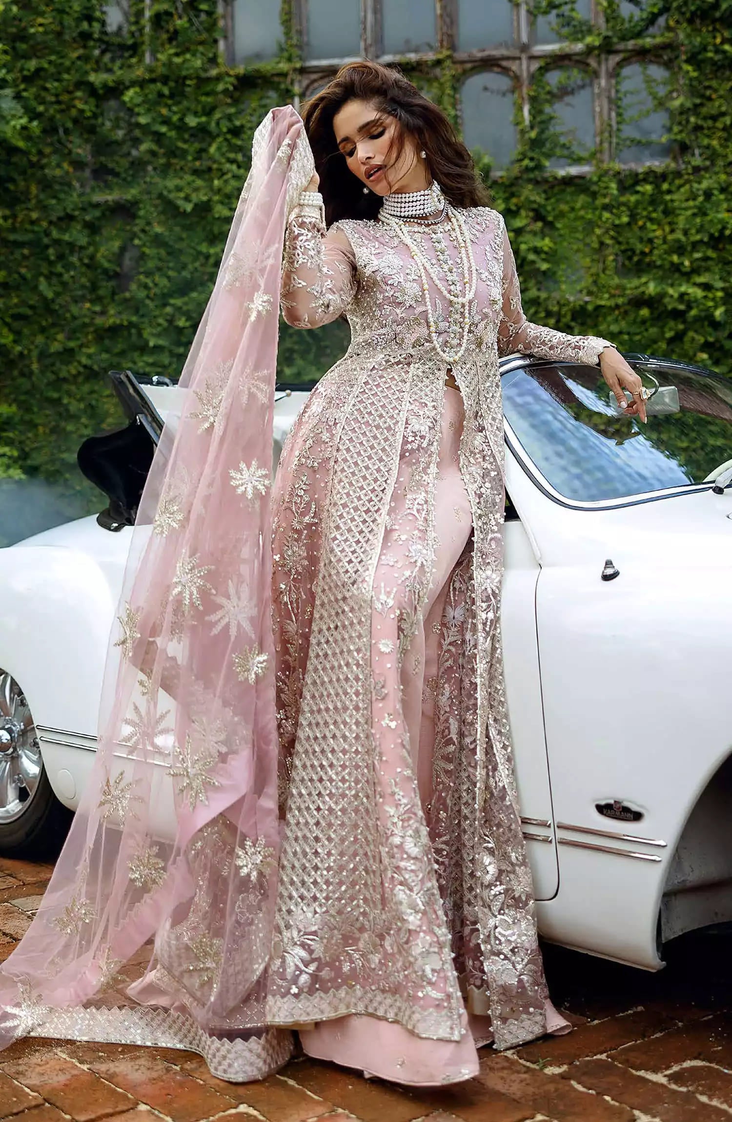 Mushq Stardust Wedding Unstitched 2024 has been styled in the image for photography and illustrative purposes.
