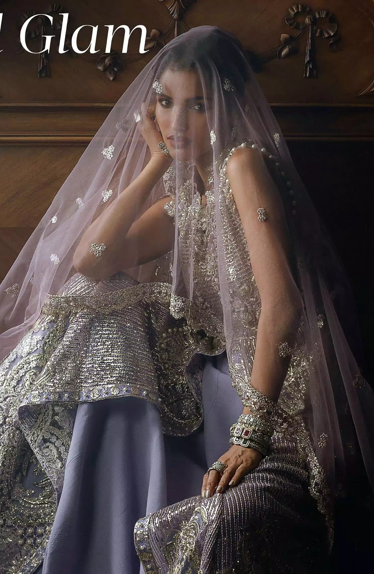 Mushq Stardust Wedding Unstitched 2024 has been styled in the image for photography and illustrative purposes.