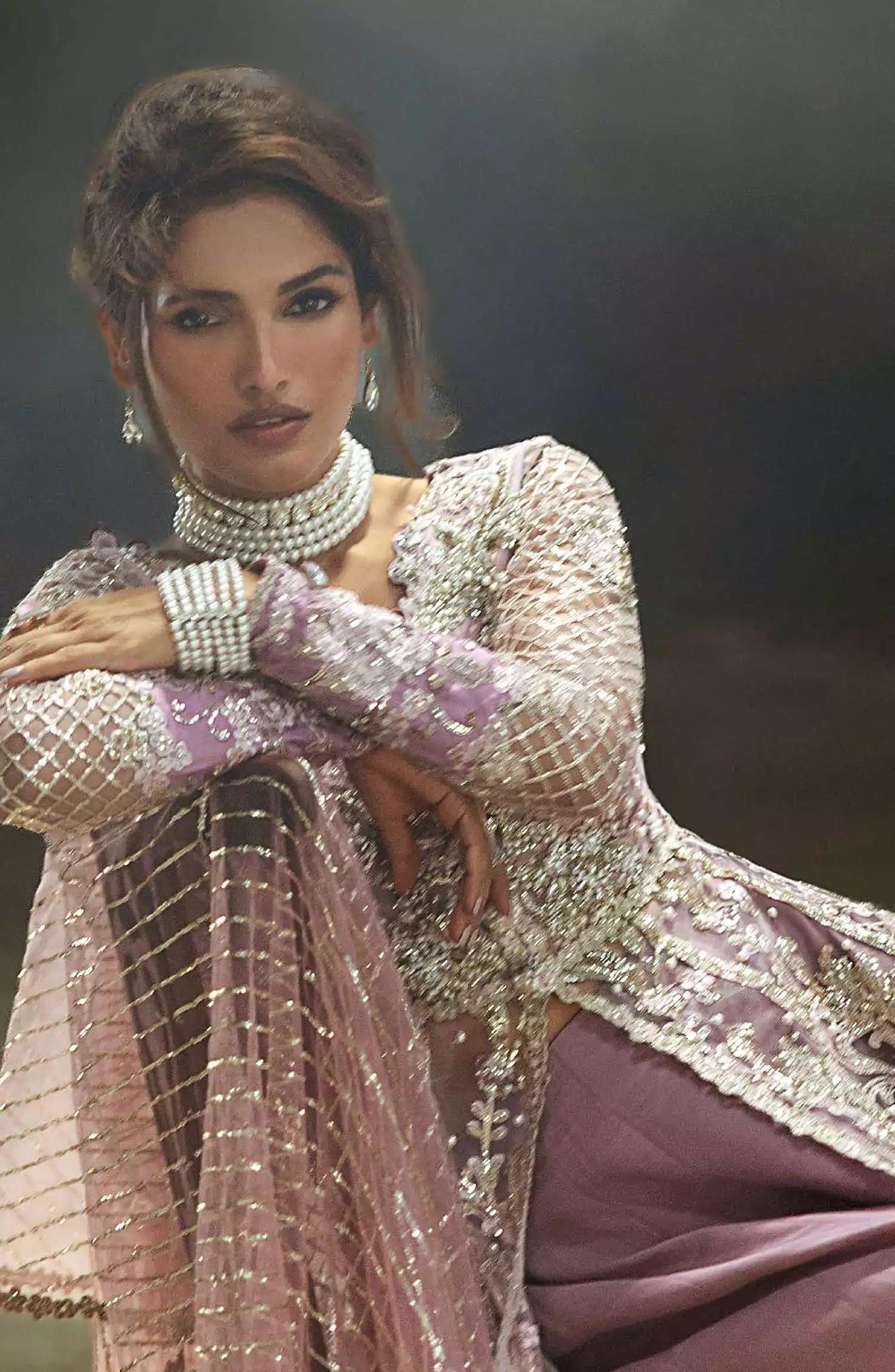 Mushq Stardust Wedding Unstitched 2024 has been styled in the image for photography and illustrative purposes.