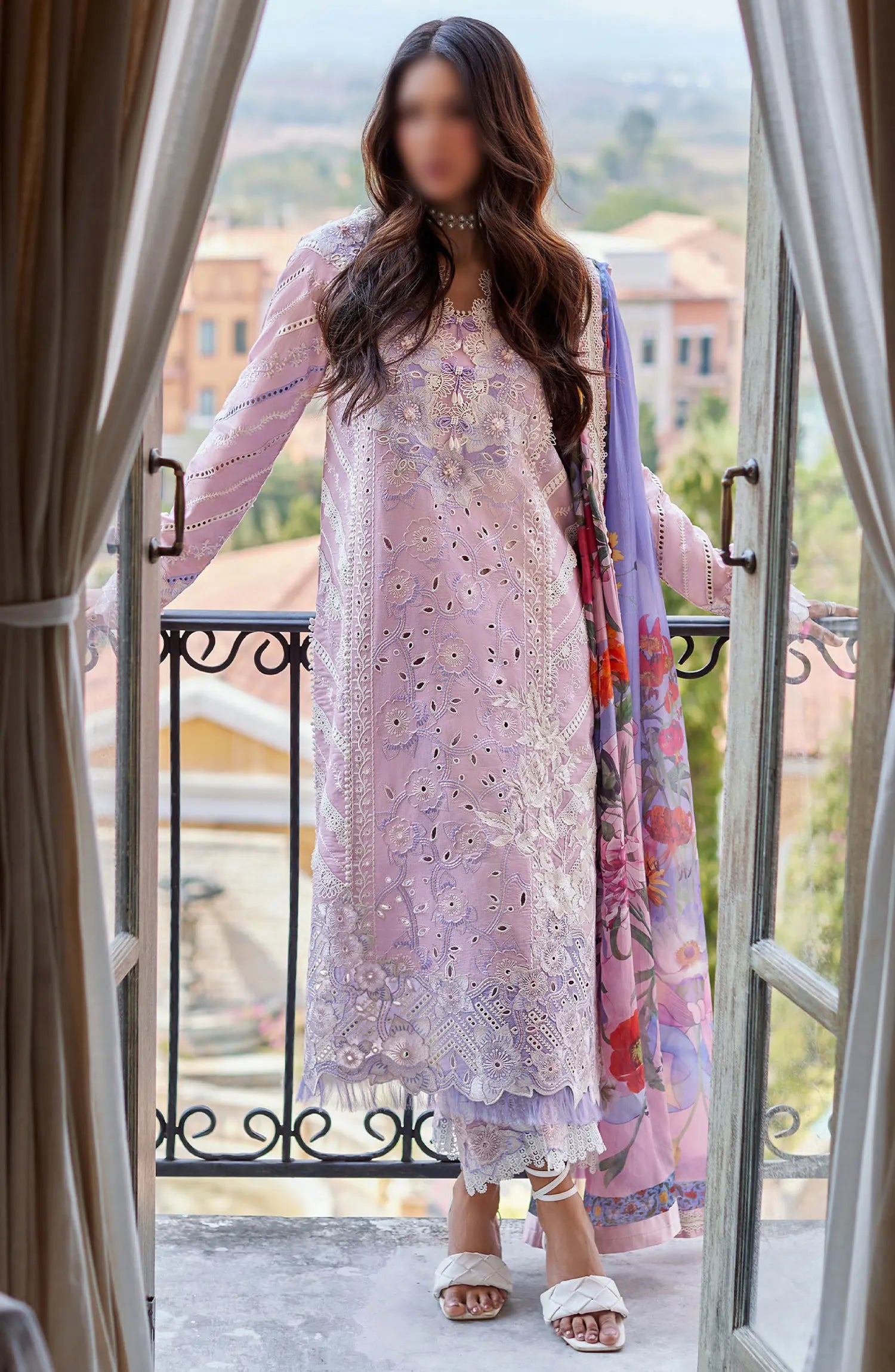 Mushq Te Amo Luxury Lawn Collection 2024 has been styled in the image for photography and illustrative purposes.