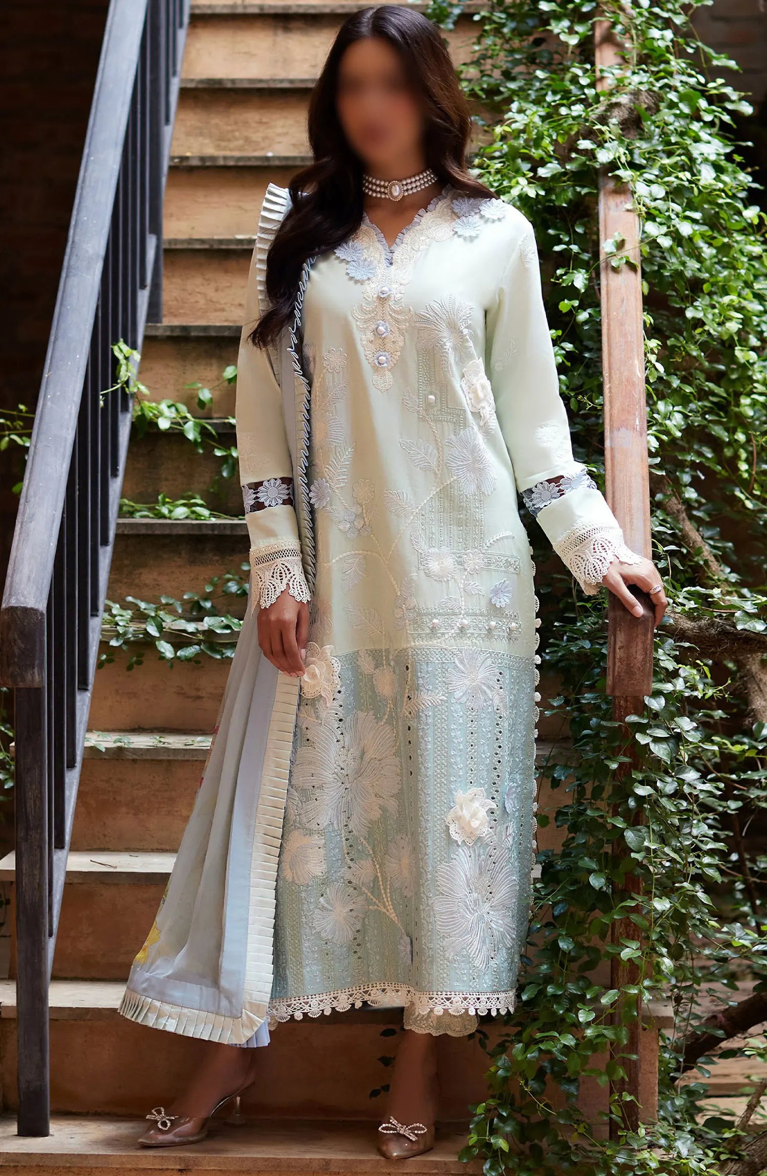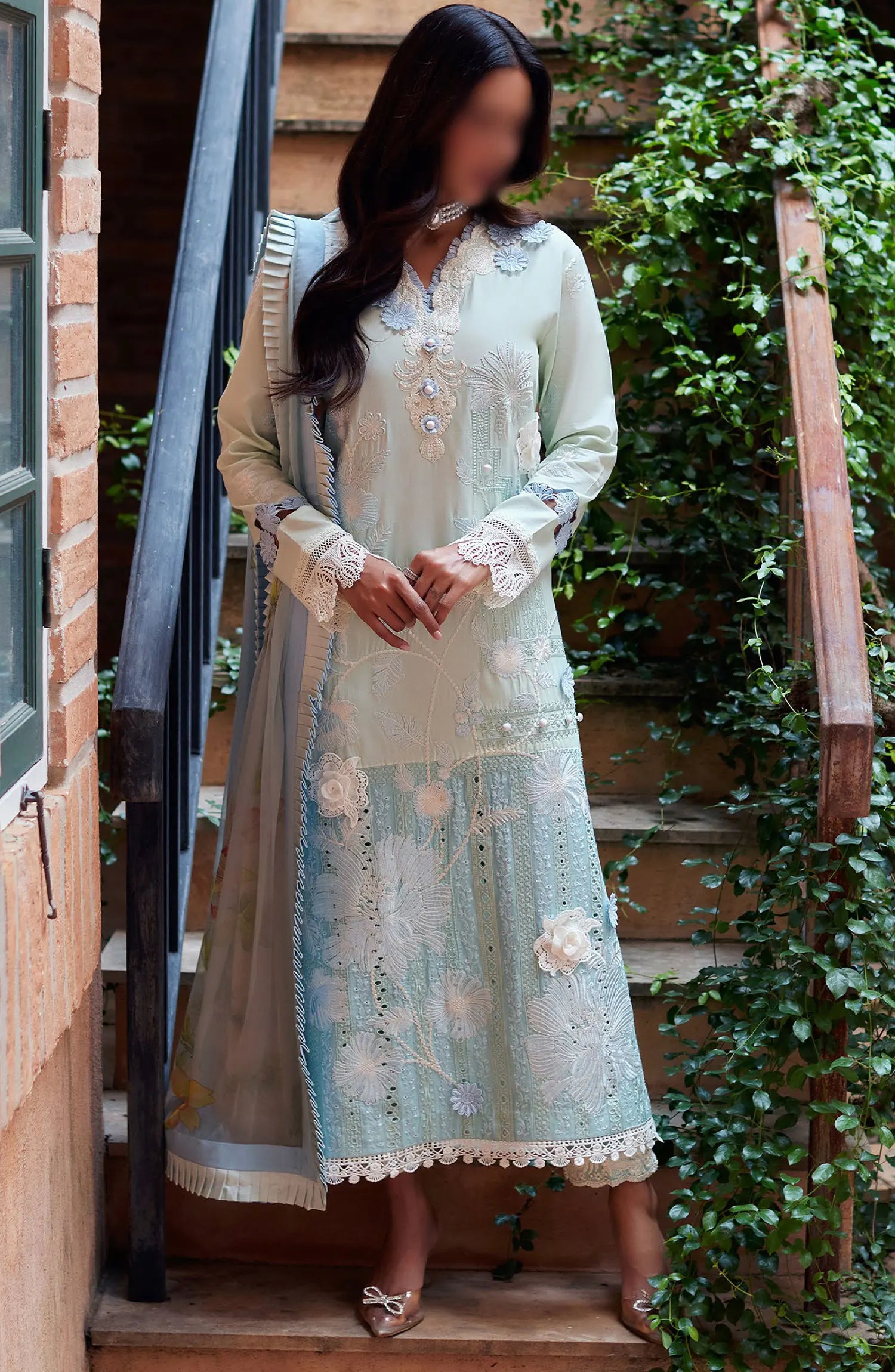 Mushq Te Amo Luxury Lawn Collection 2024 has been styled in the image for photography and illustrative purposes.