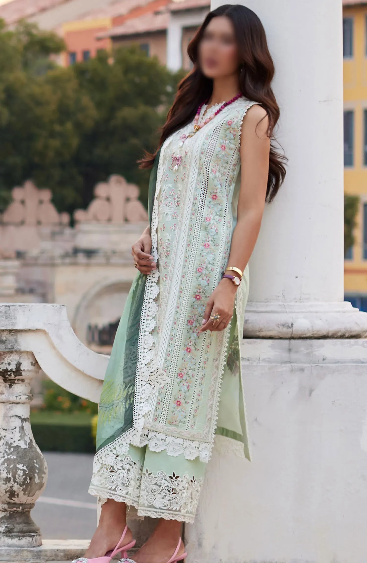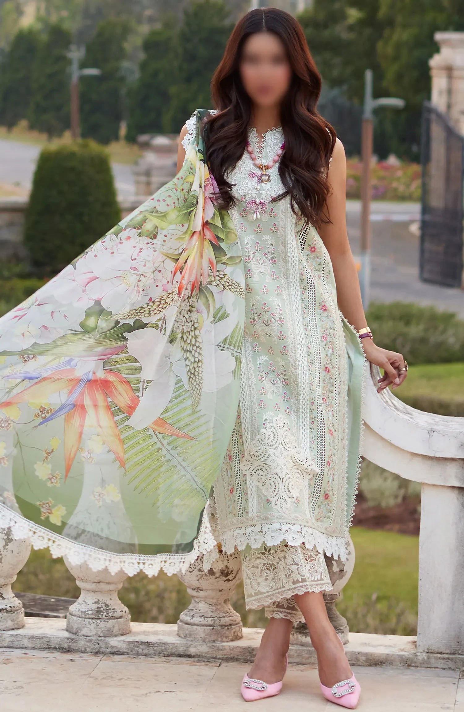 Mushq Te Amo Luxury Lawn Collection 2024 has been styled in the image for photography and illustrative purposes.