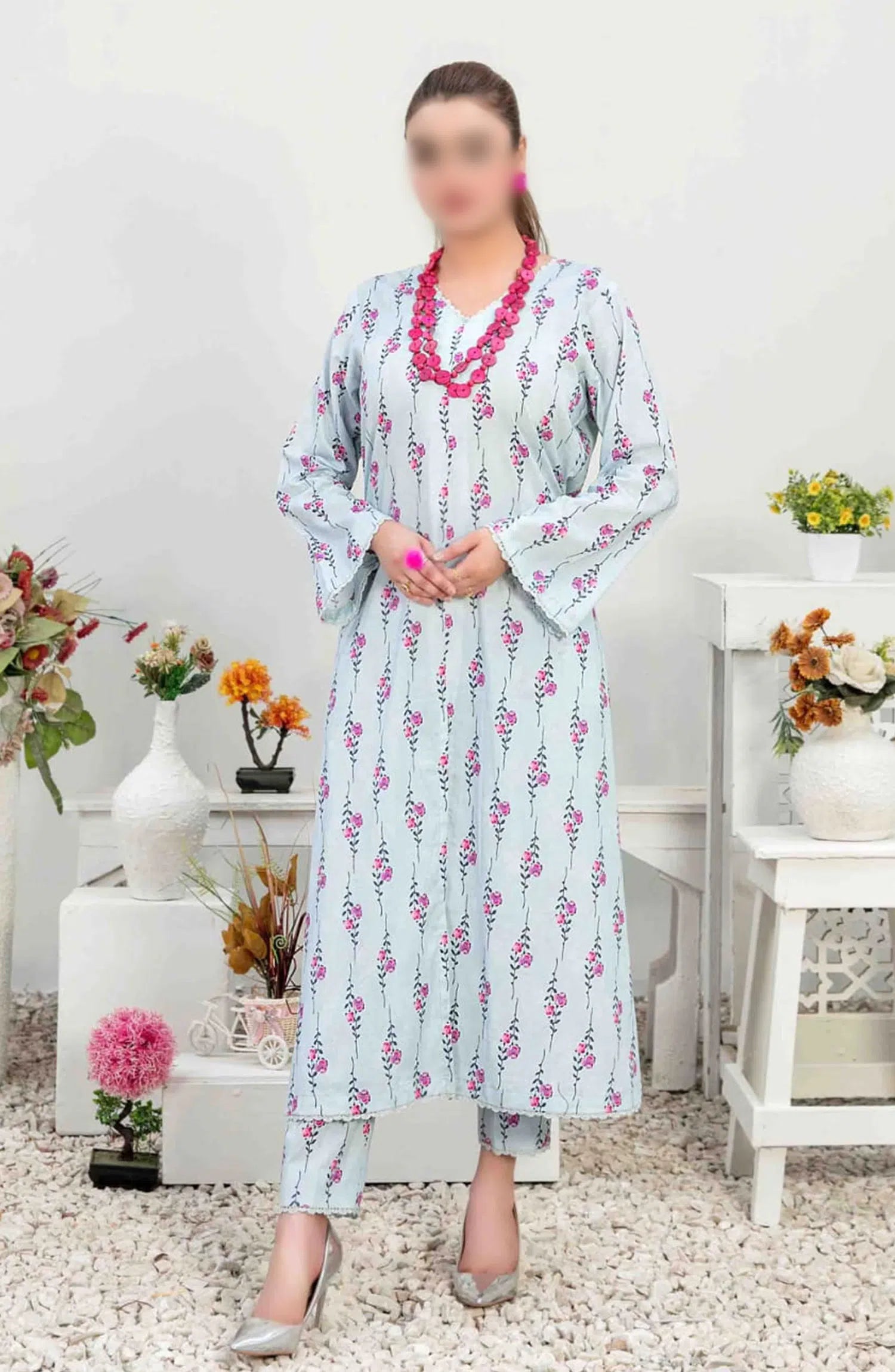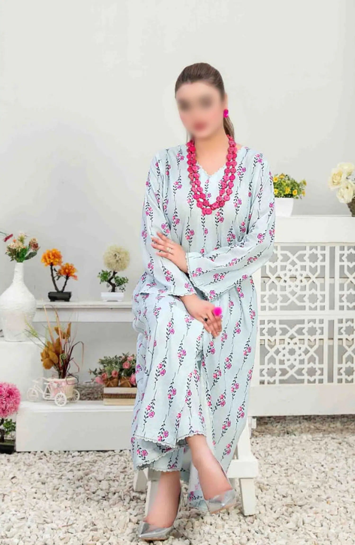 NADA Stitched Digital Printed Lawn 2-piece Collection 2024 has been styled in the image for photography and illustrative purposes.