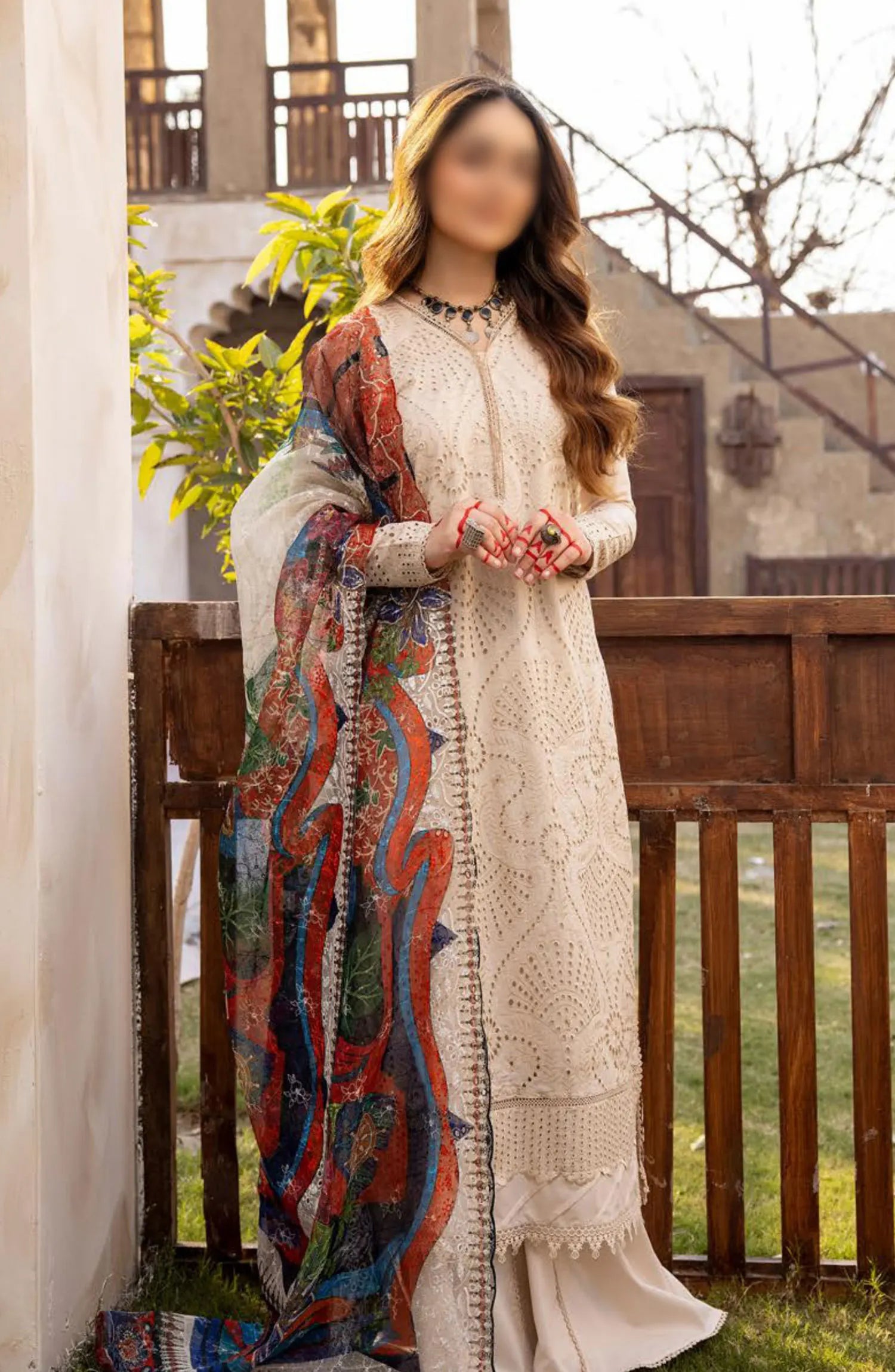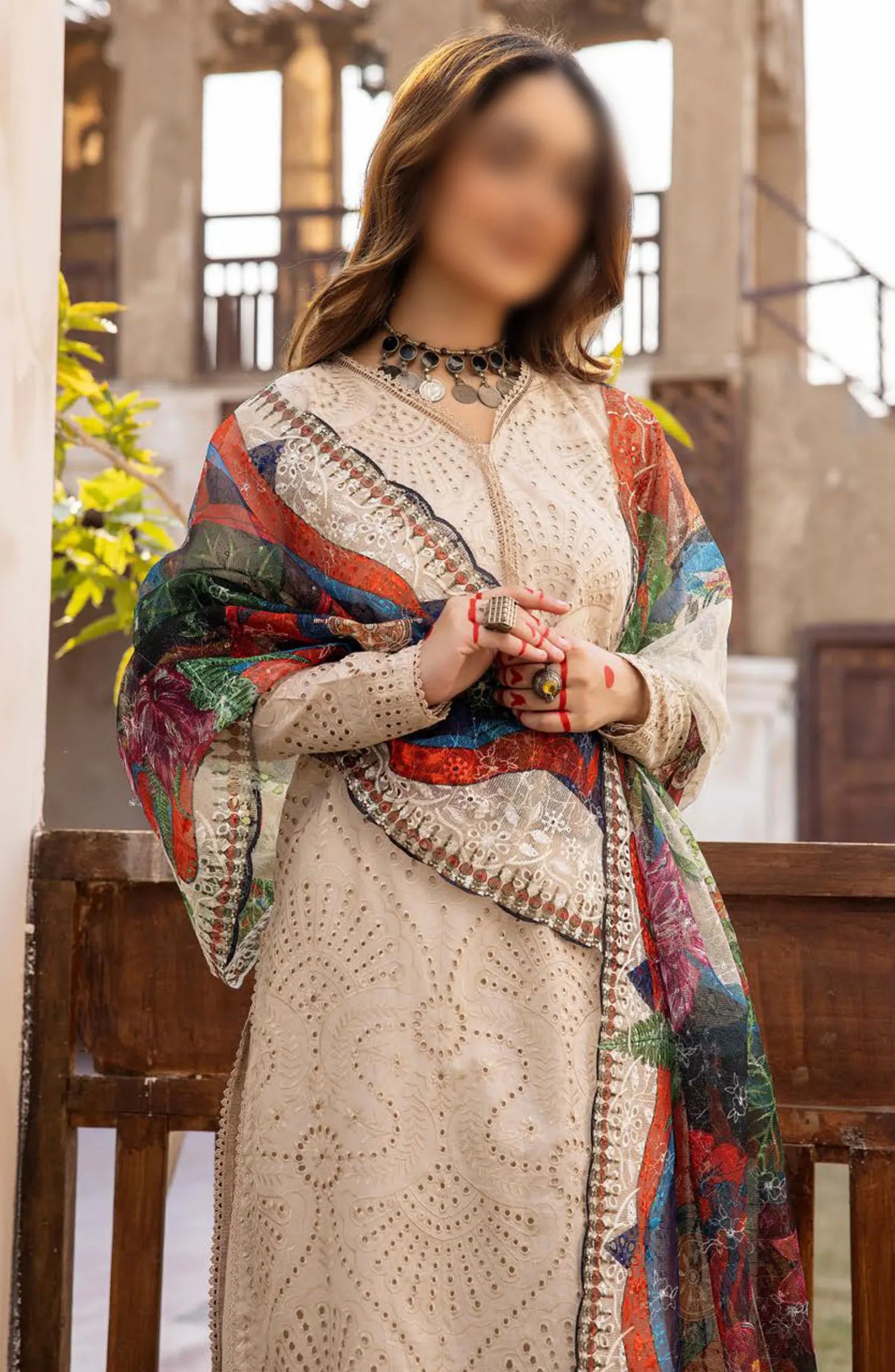 Shanzey Printed Cambric Stitched 3 Piece Suit - SHK-4901 - SHZ25CAM - Off White - Girls Winter Collection
