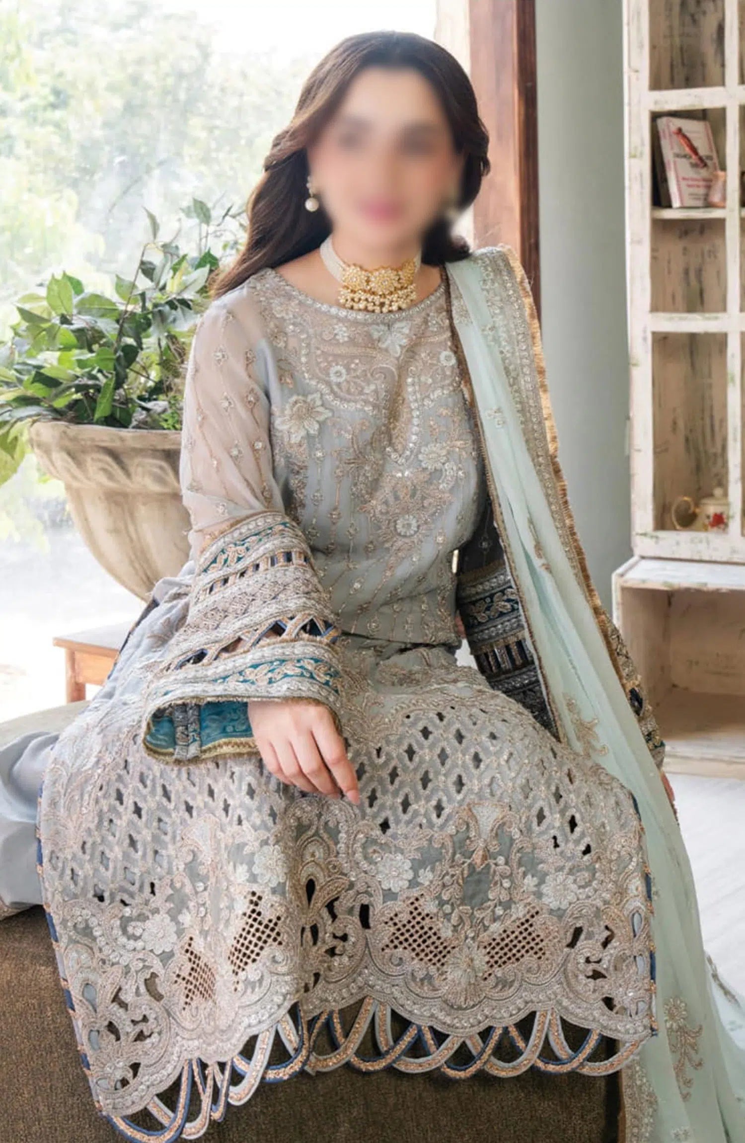 Naina Chiffon Collection By Imrozia has been styled in the image for photography and illustrative purposes.