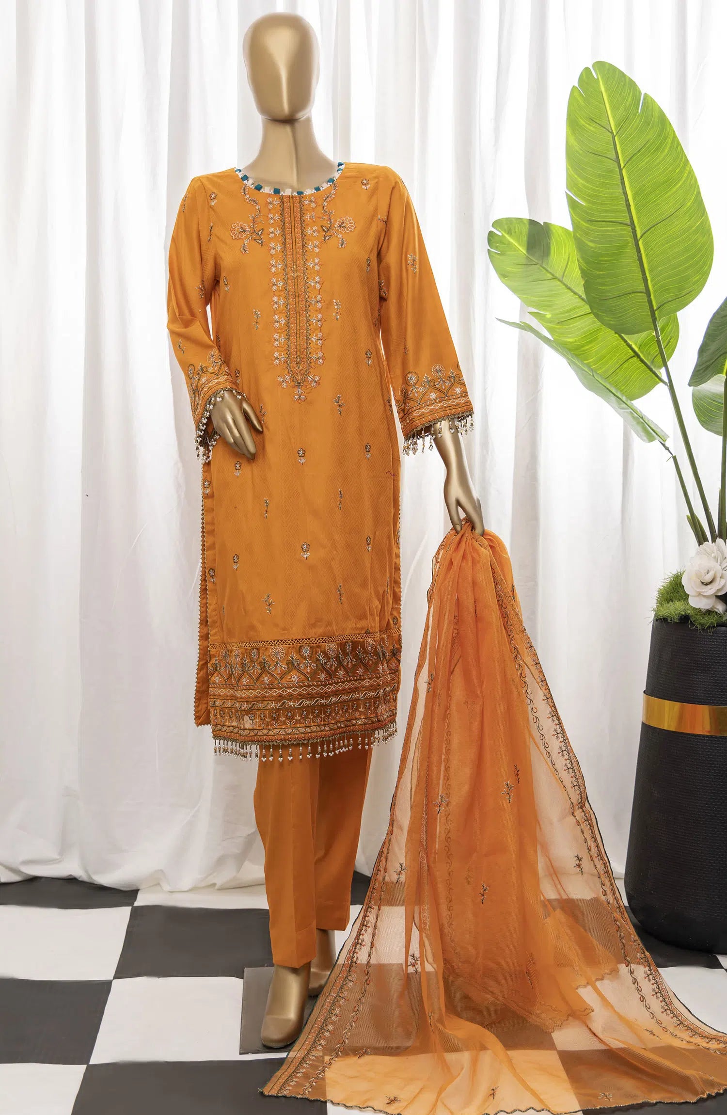 Exclusive Embroidered Unstitch lawn suit with fancy Dupatta