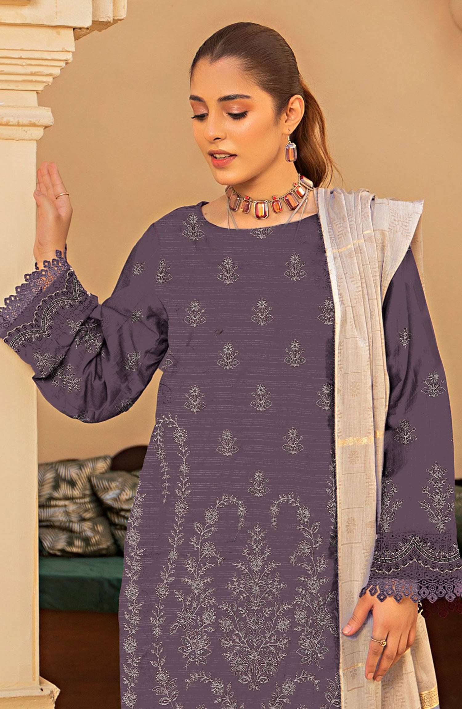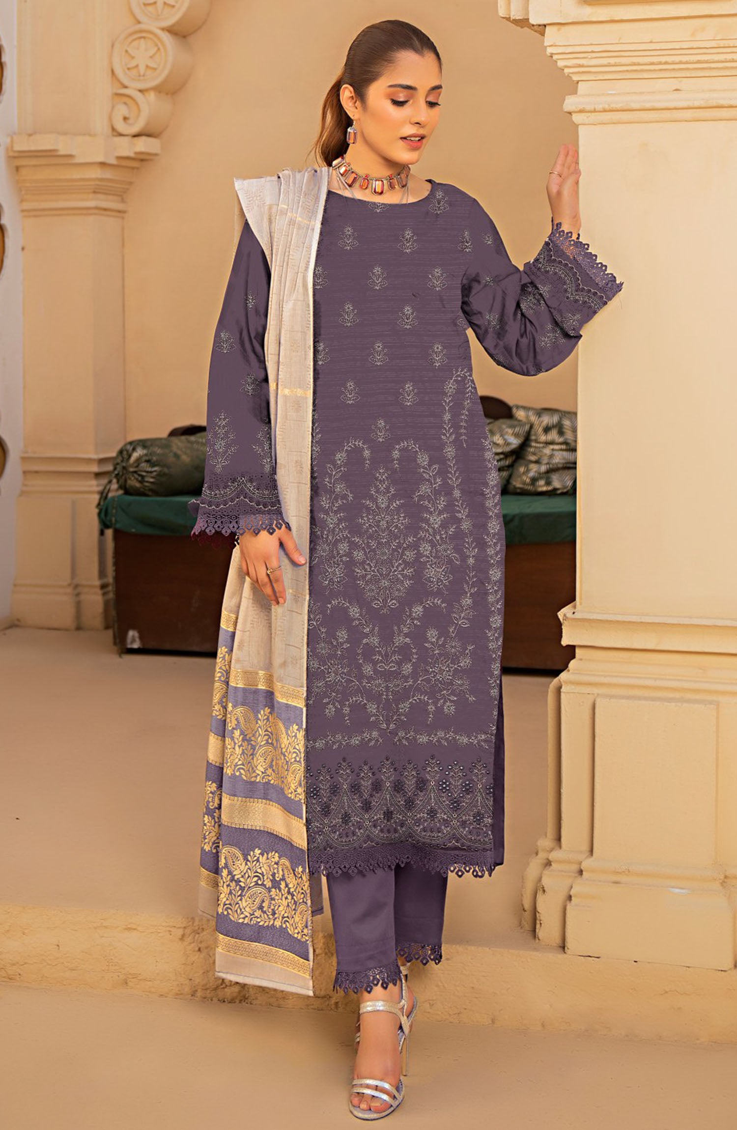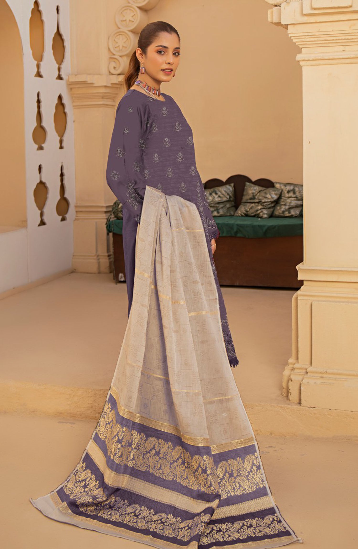 Home Naqsh Embroidered Lawn Unstitched 3 Piece Suit - D-03 - ALK25NQ - Purple - Summer Collection