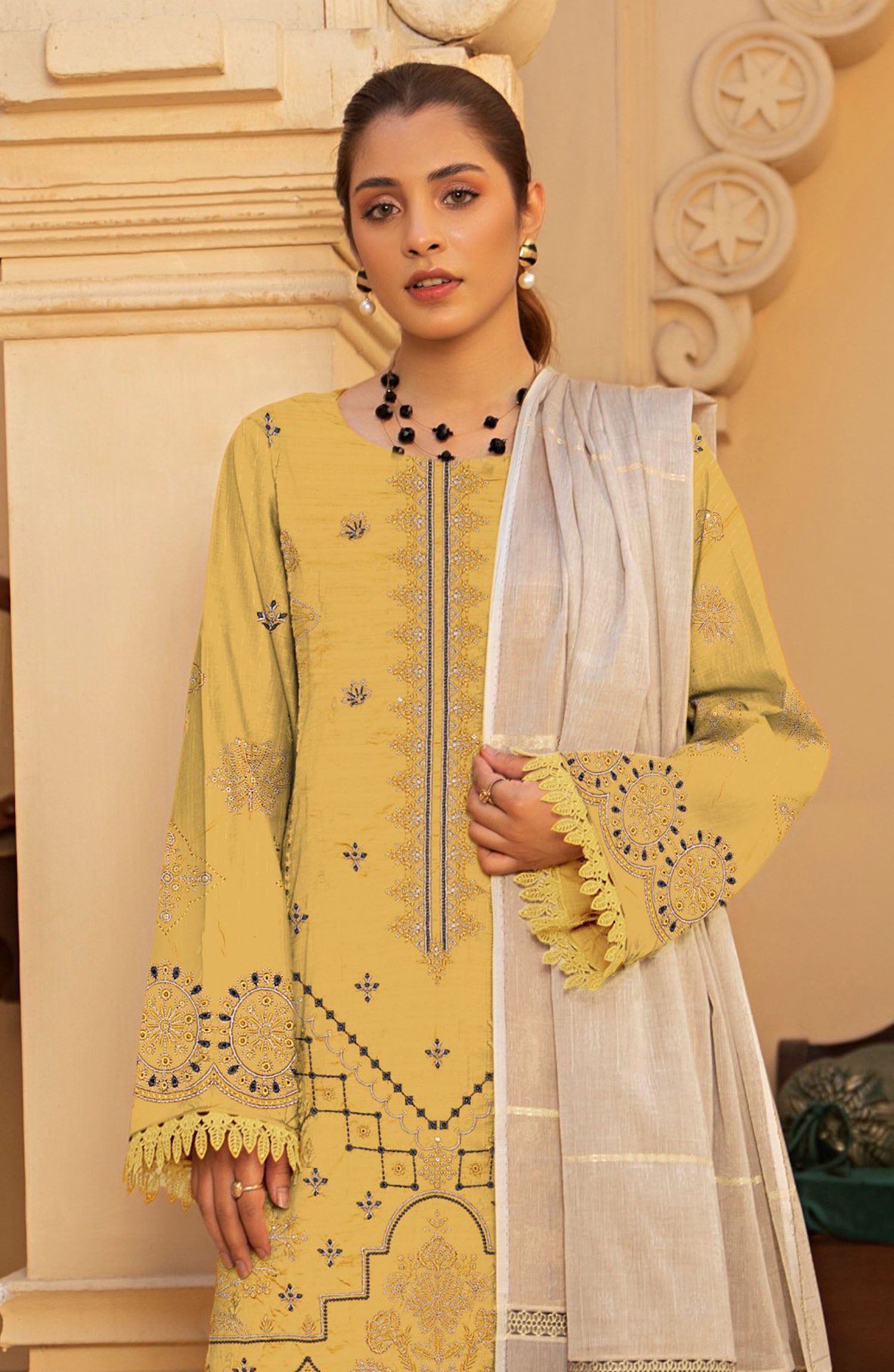 Home Naqsh Embroidered Lawn Unstitched 3 Piece Suit - D-04 - ALK25NQ - Yellow - Summer Collection