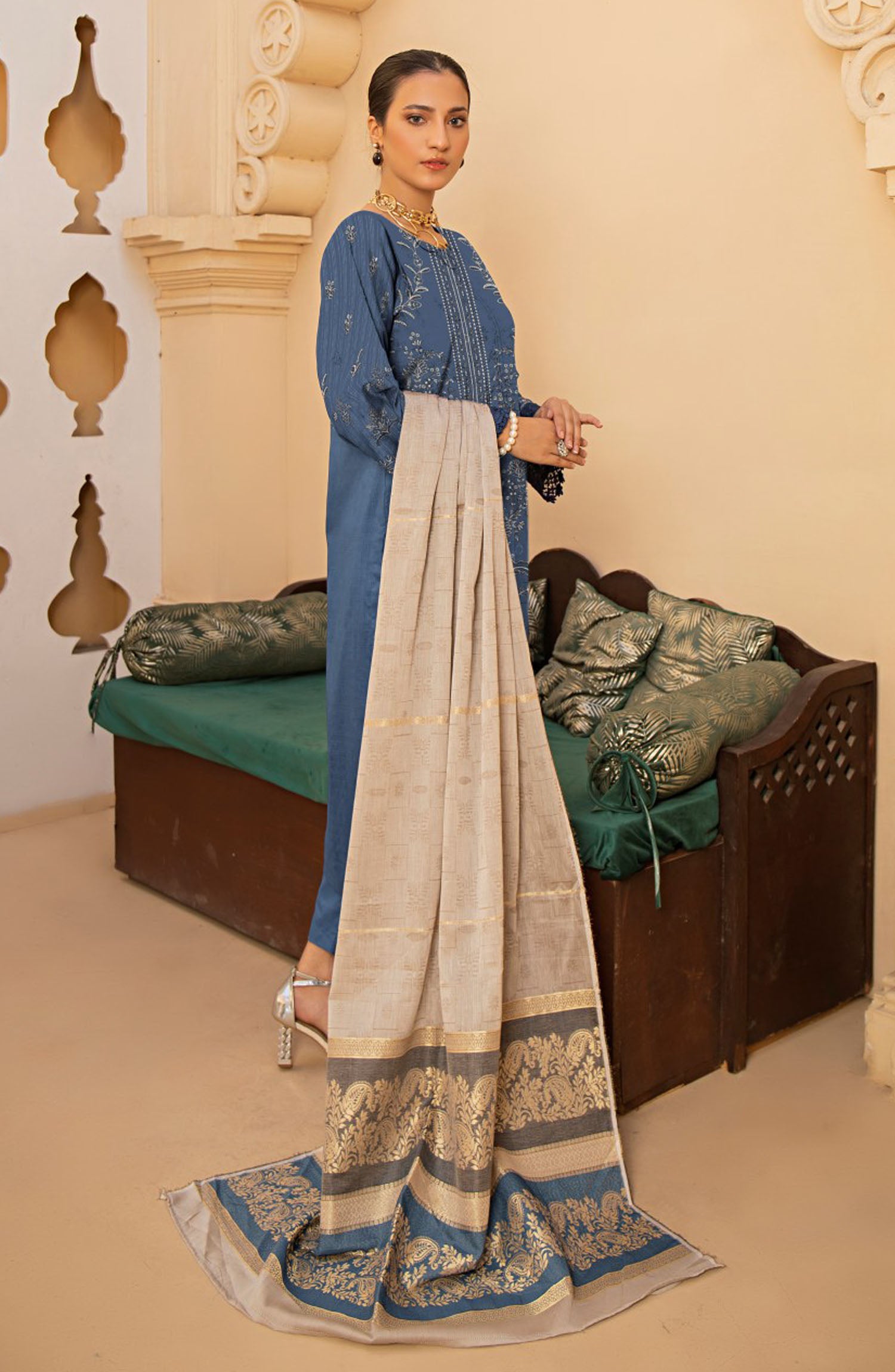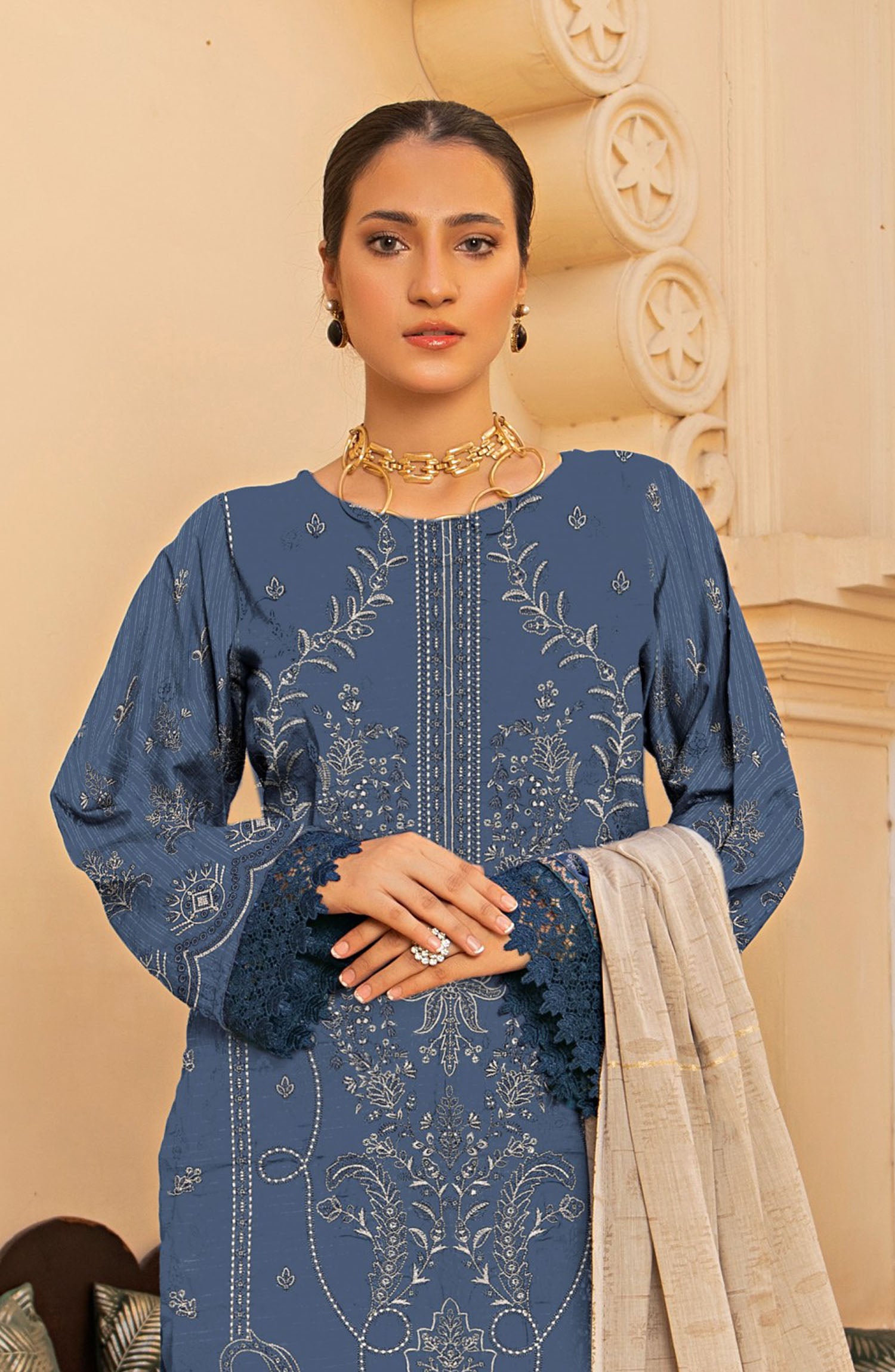 The standard style comes as a long-sleeved kameez with dupatta and trouser/shawlar.