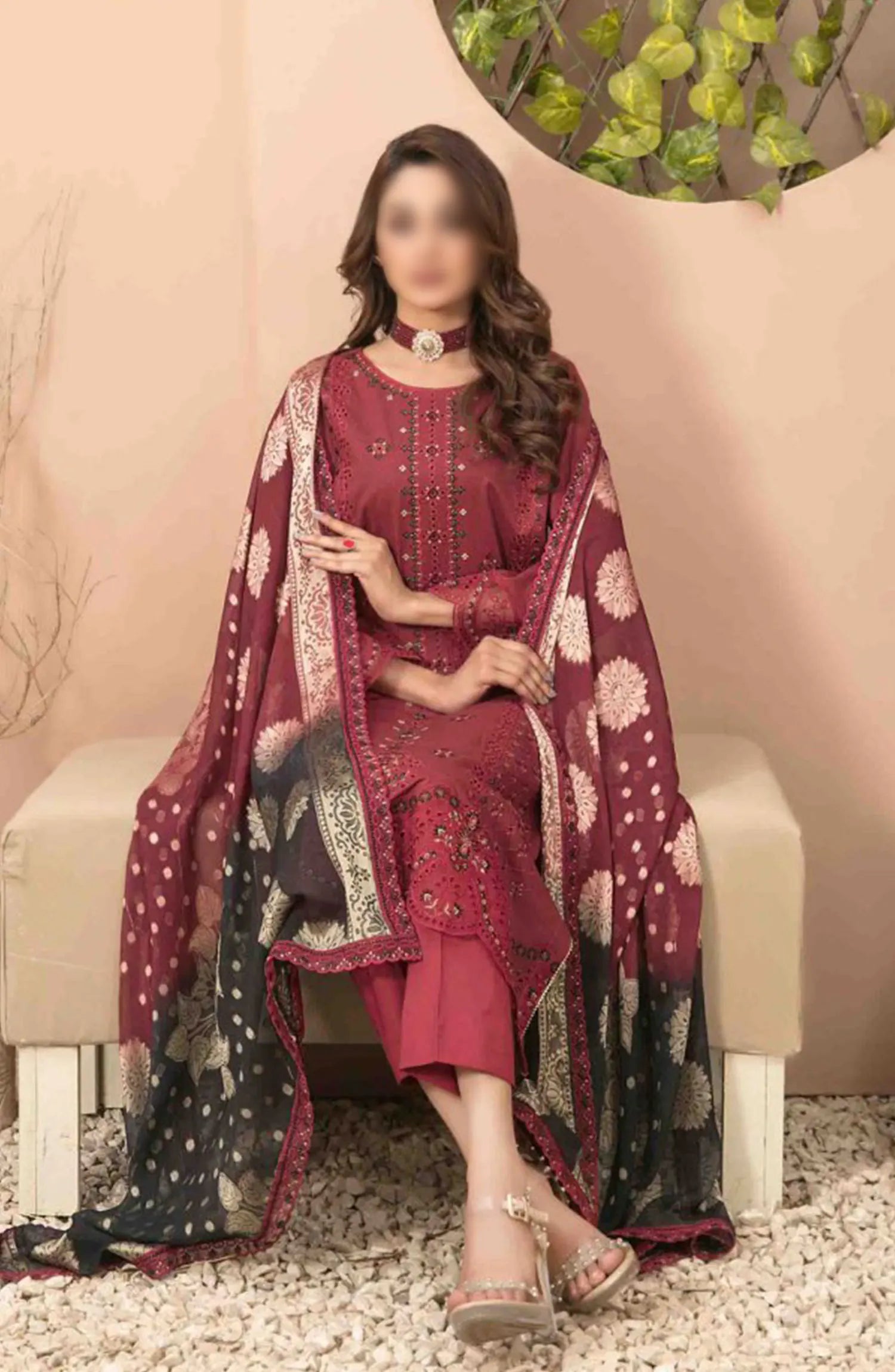 Vihana by Johra Premium Embroidered Dhanak Unstitched 3 Piece Suit - JW-582 - JH25VIHN - Red - Winter Collection