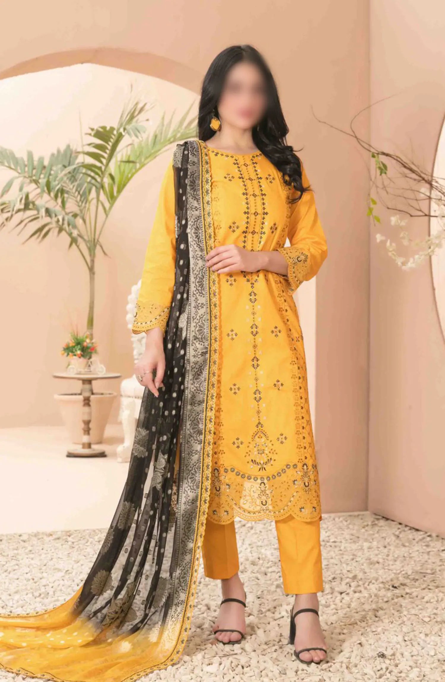 Narina - Embroidered Digital Printed Lawn Collection By Tawakkal Fabrics has been styled in the image for photography and illustrative purposes.