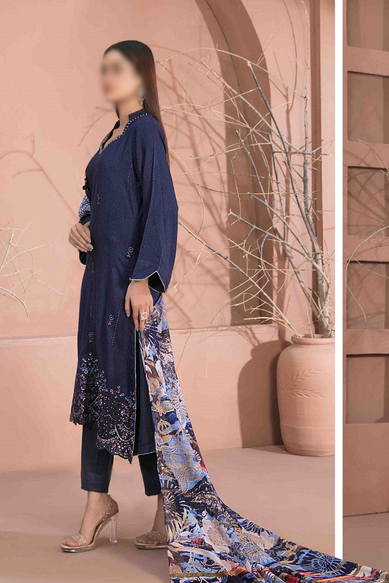 The standard style comes as a long-sleeved kameez with dupatta and trouser/shawlar.