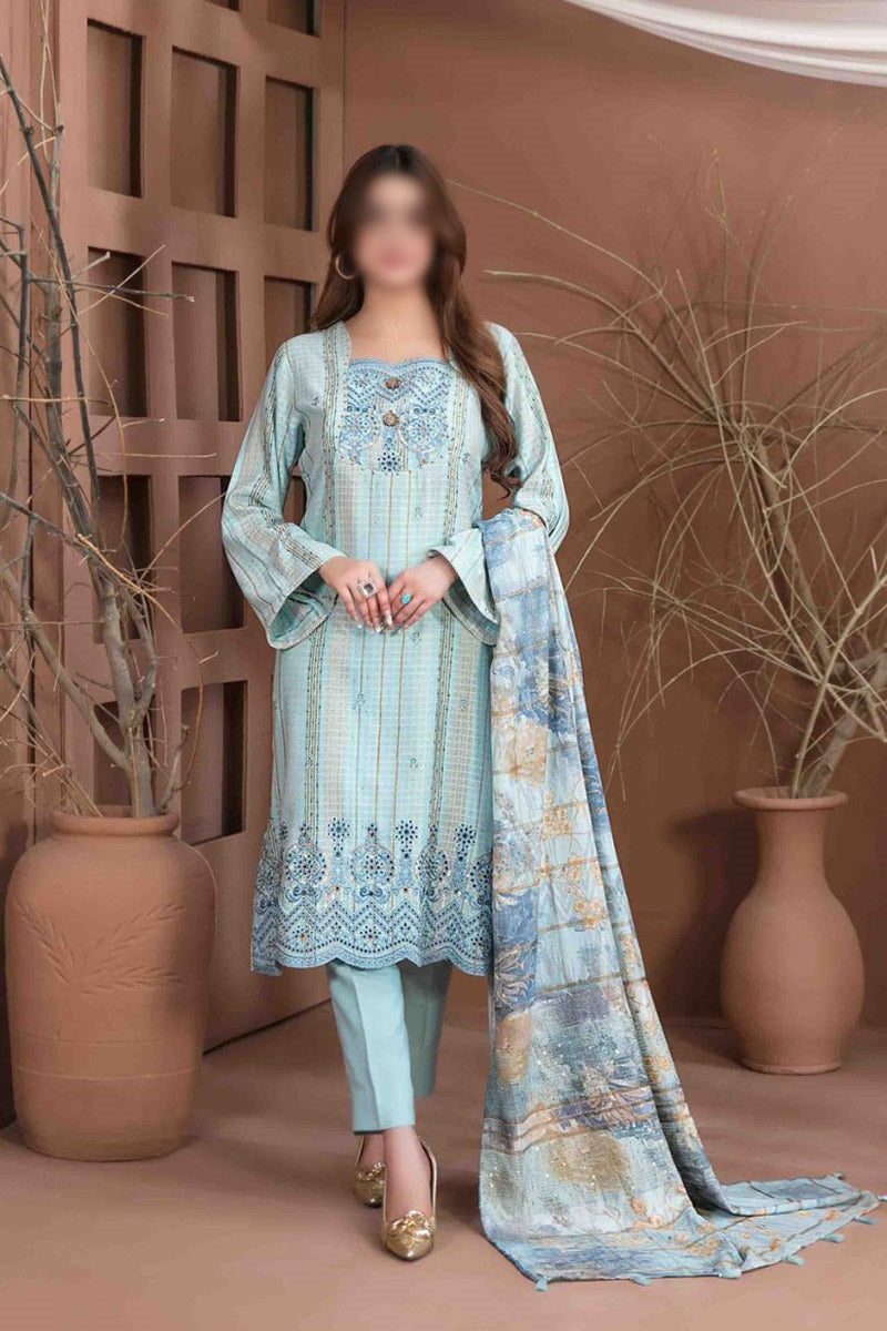 The standard style comes as a long-sleeved kameez with dupatta and trouser/shawlar.