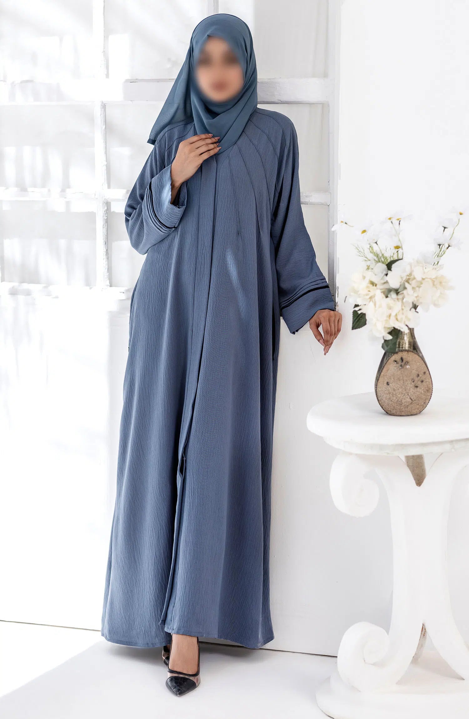 When looking for something Classy and Unique, our beautiful bodice pintex Abaya is gorgeous yet elegant with pleads on sleeves and lace work combined with butterfly style and paired with pure Korean Nidha Sheila