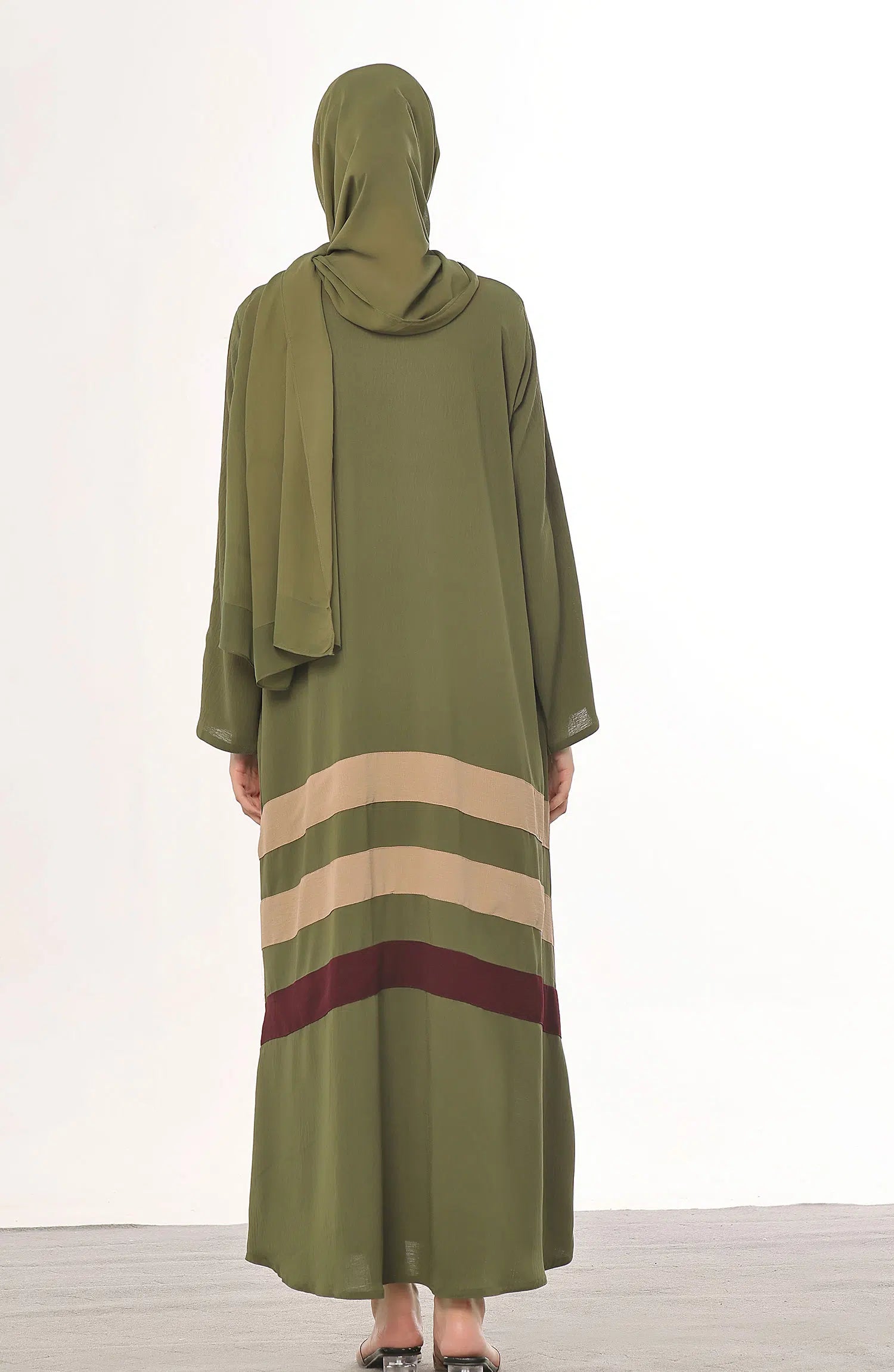 This is a must for your wardrobe collection with our new latest colors which is breathtaking and ultimately gorgeous which is our hot sellers these days maxi style abaya and multi color stripes on front and back come along with pure Matching Korean chiffon Sheila