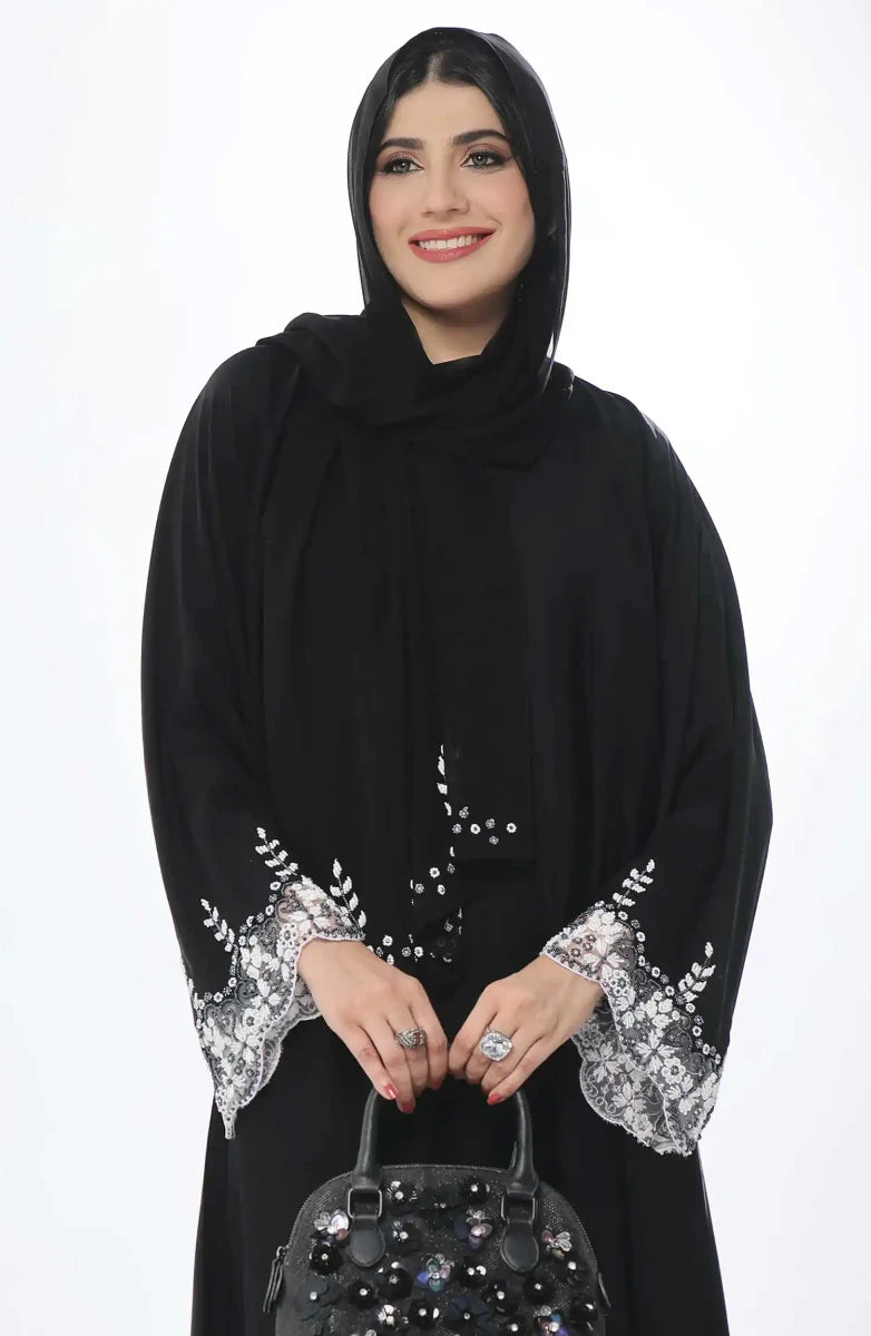 Our beautiful front open style is constructed on imported fabric which is soft and durable, fabric manipulation is done on bodice with stonework on sleeves making it flouncy and elegant, comes along with Korean chiffon Sheila