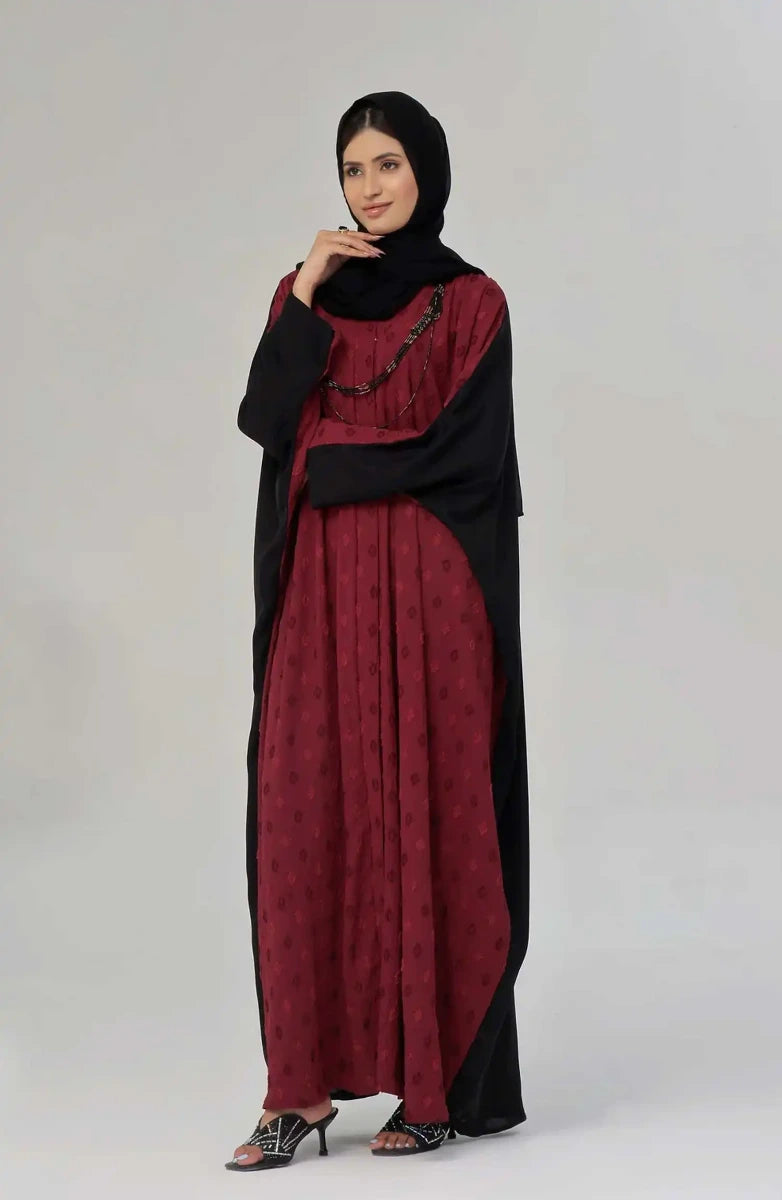 This is a must for your wardrobe collection with our new latest design CY fabric which is breathtaking and ultimately gorgeous which is our hot sellers these days front open style baggy abaya with double sided fabric which comes along with Pure Black chiffon Sheila