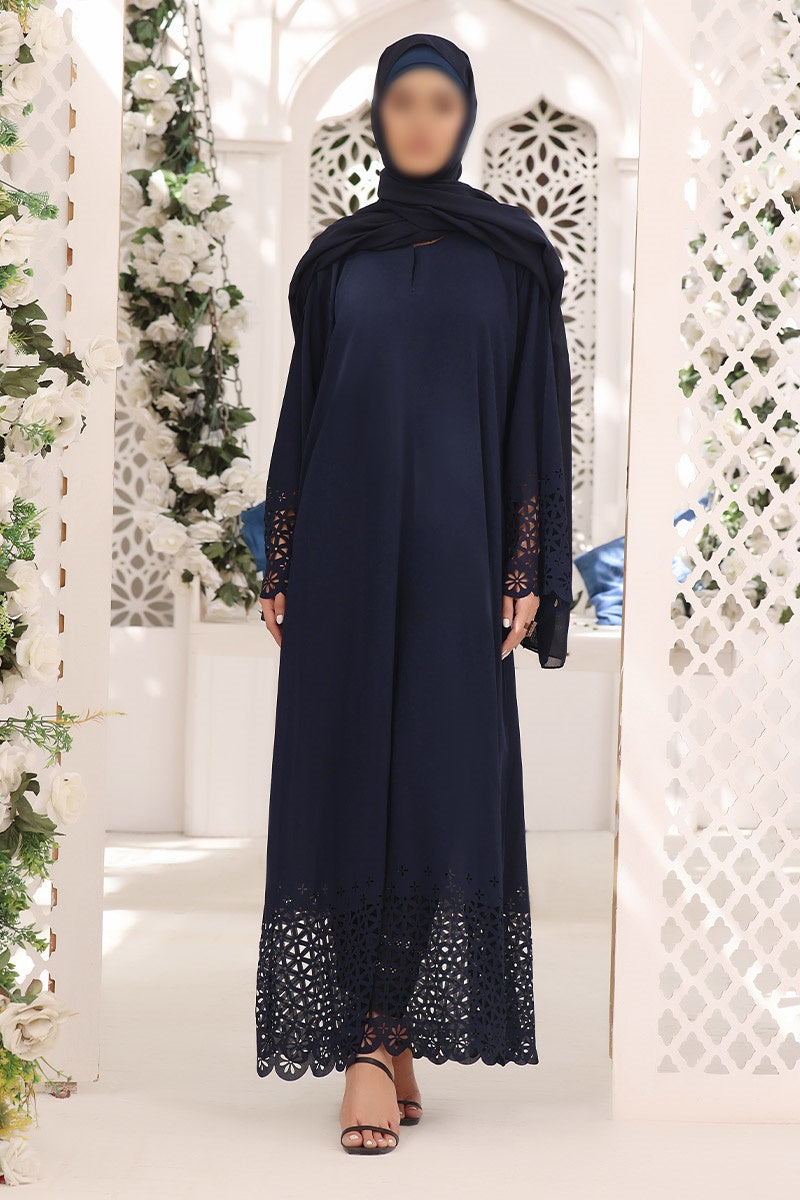 When looking for something Classy and Unique, our beautiful laser cut work Abaya is gorgeous yet elegant with cutwork on sleeves and paired with pure Korean Nidha Sheila